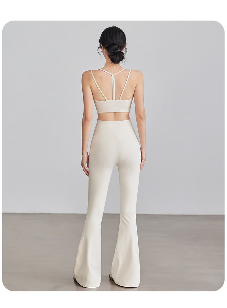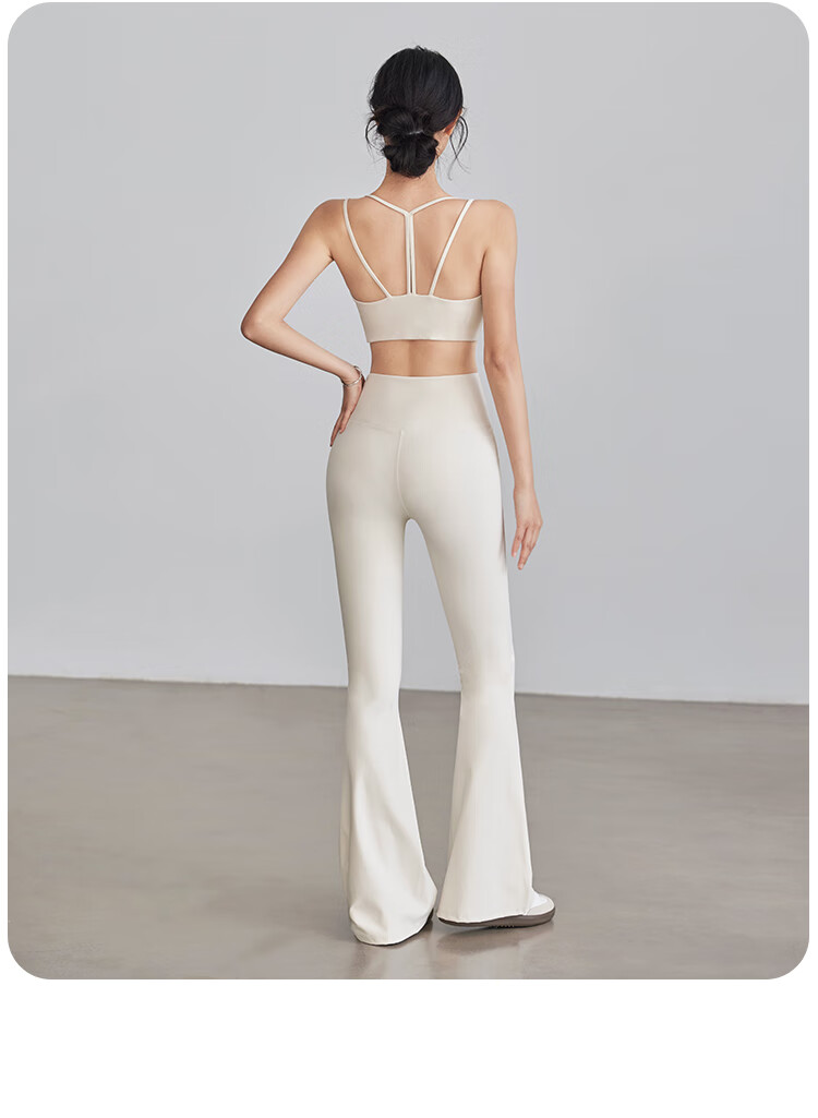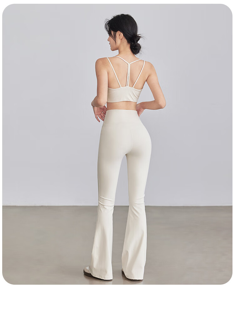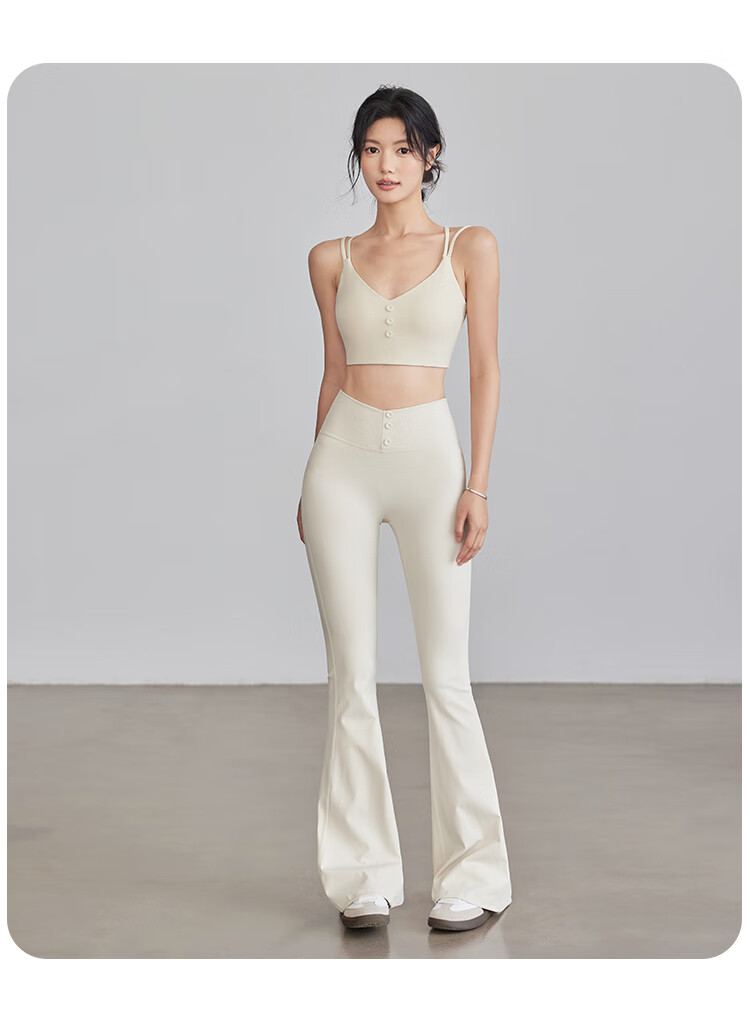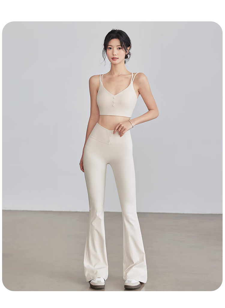 LULULMCCTN high-waist hip-raising micro-flared yoga pants summer new button Pilates professional training fitness clothes milk coffee top S