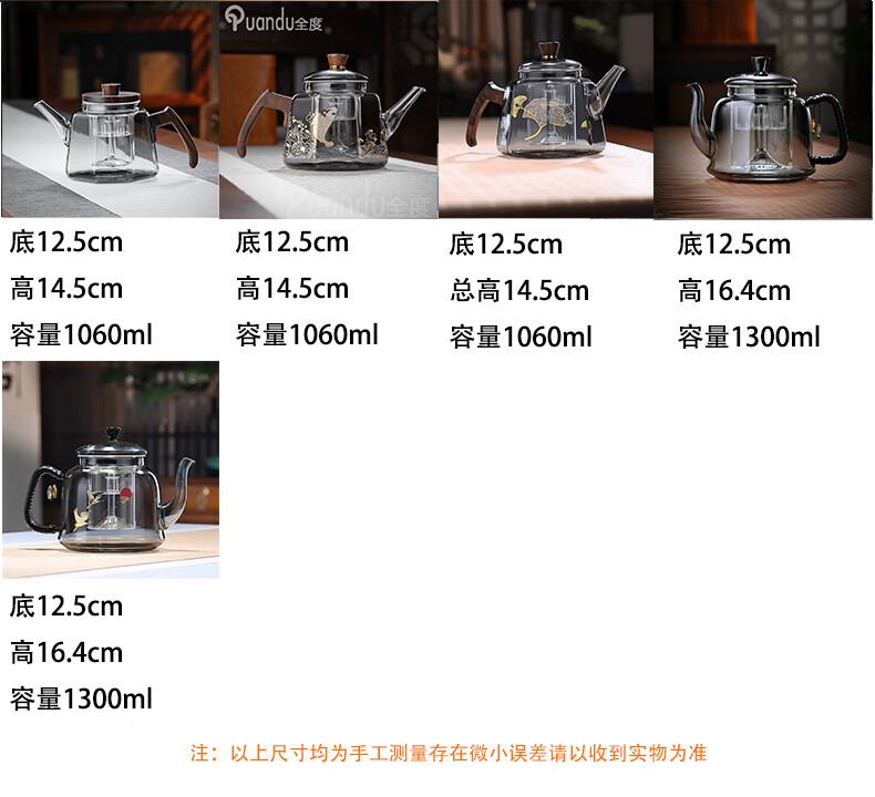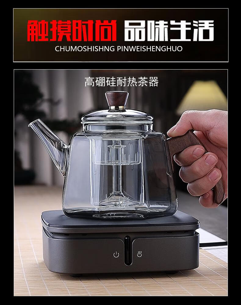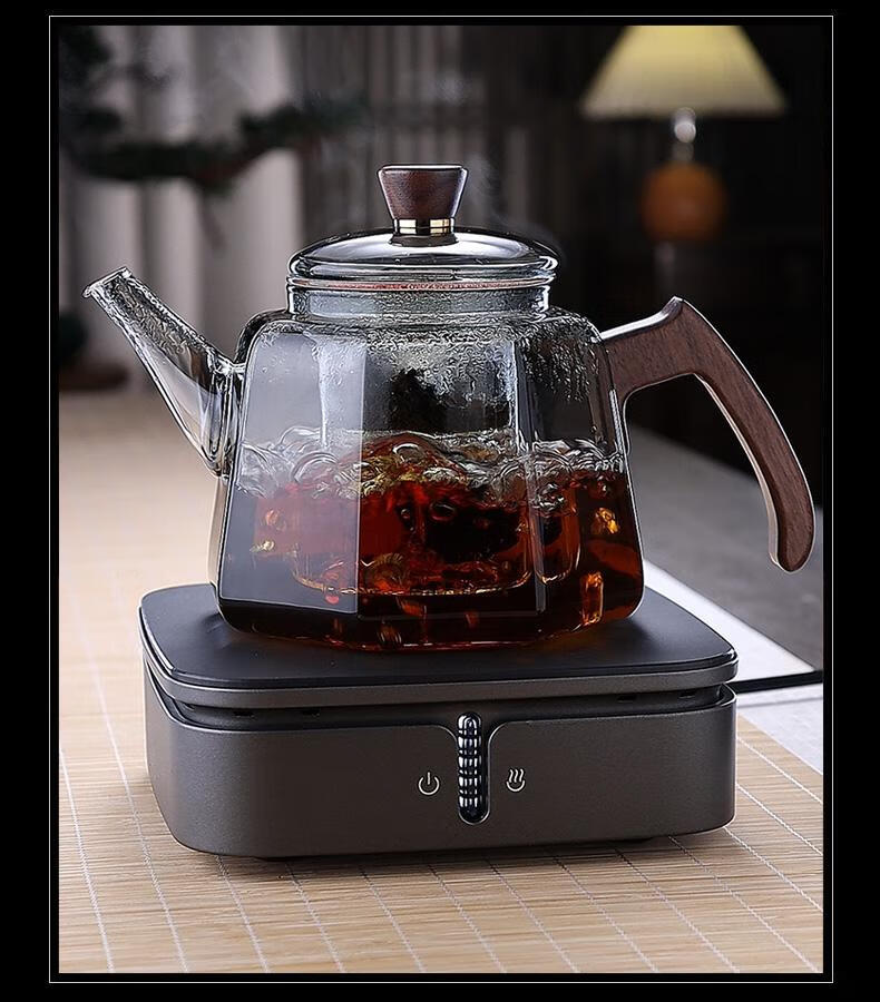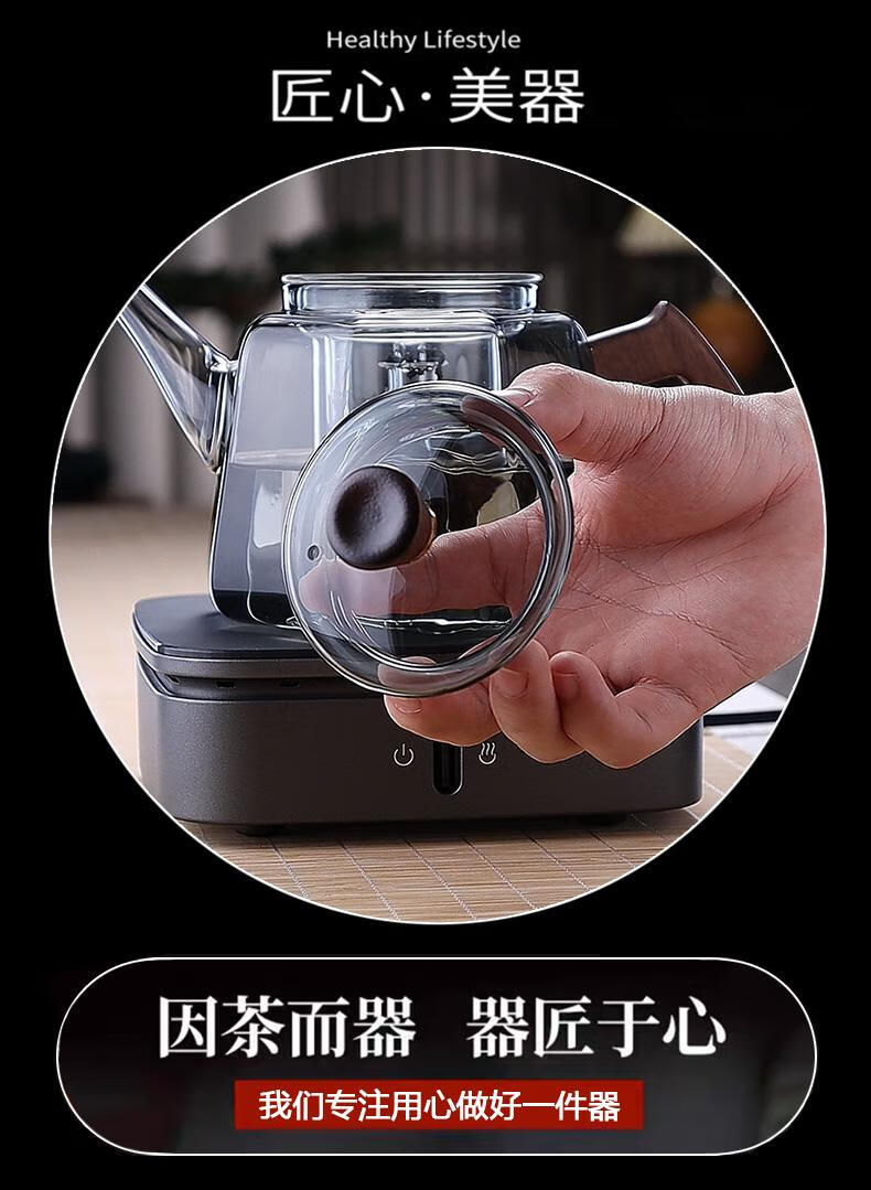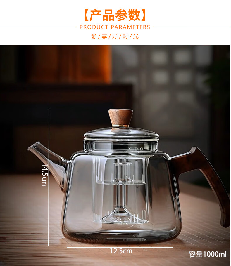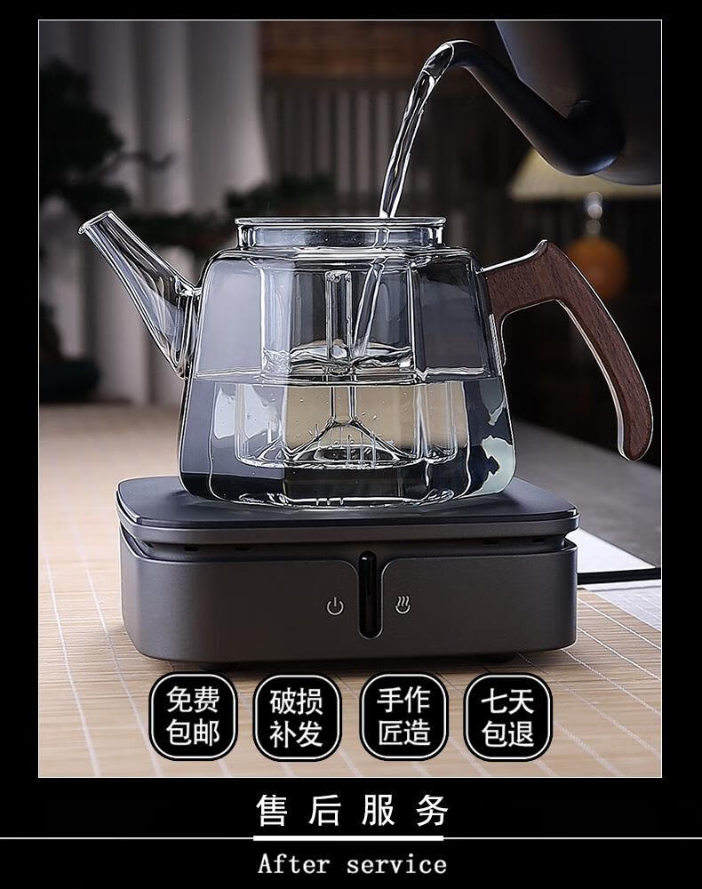 Fully high temperature resistant thickened glass steaming integrated teapot large capacity kettle side handle teapot household kettle Ash Babao steaming integrated teapot 1000ml