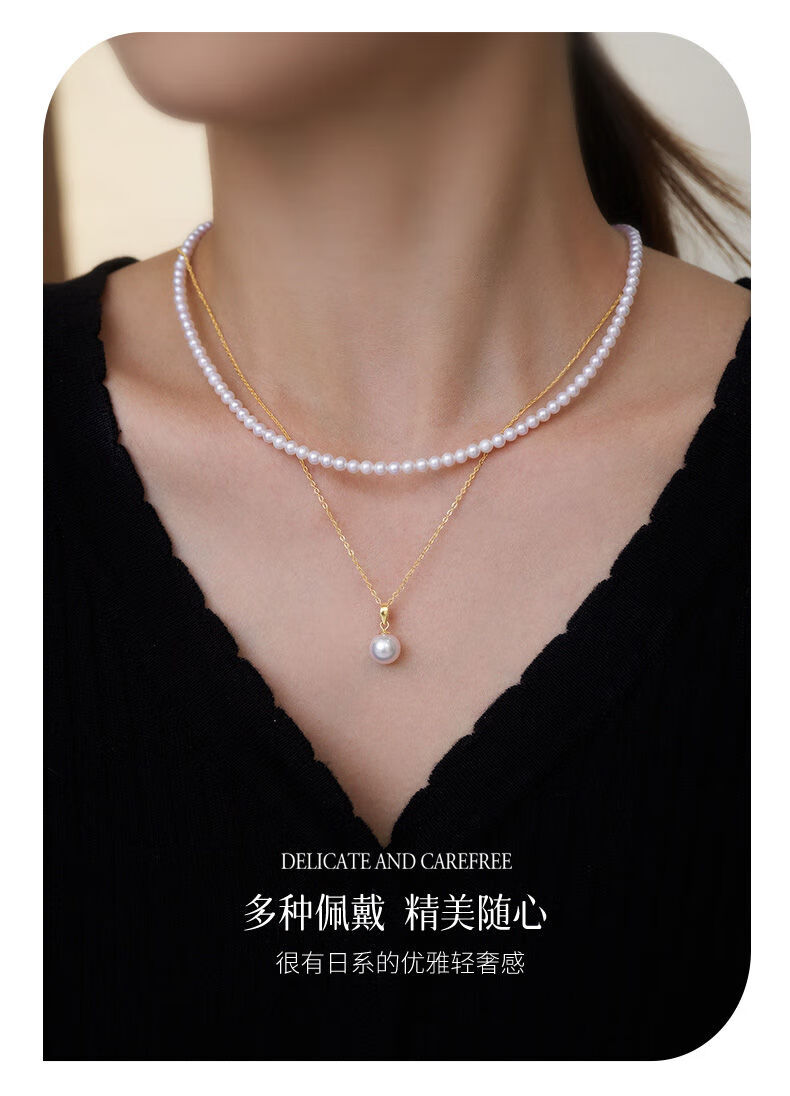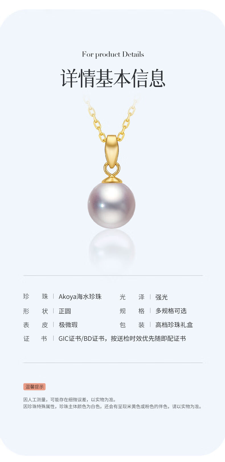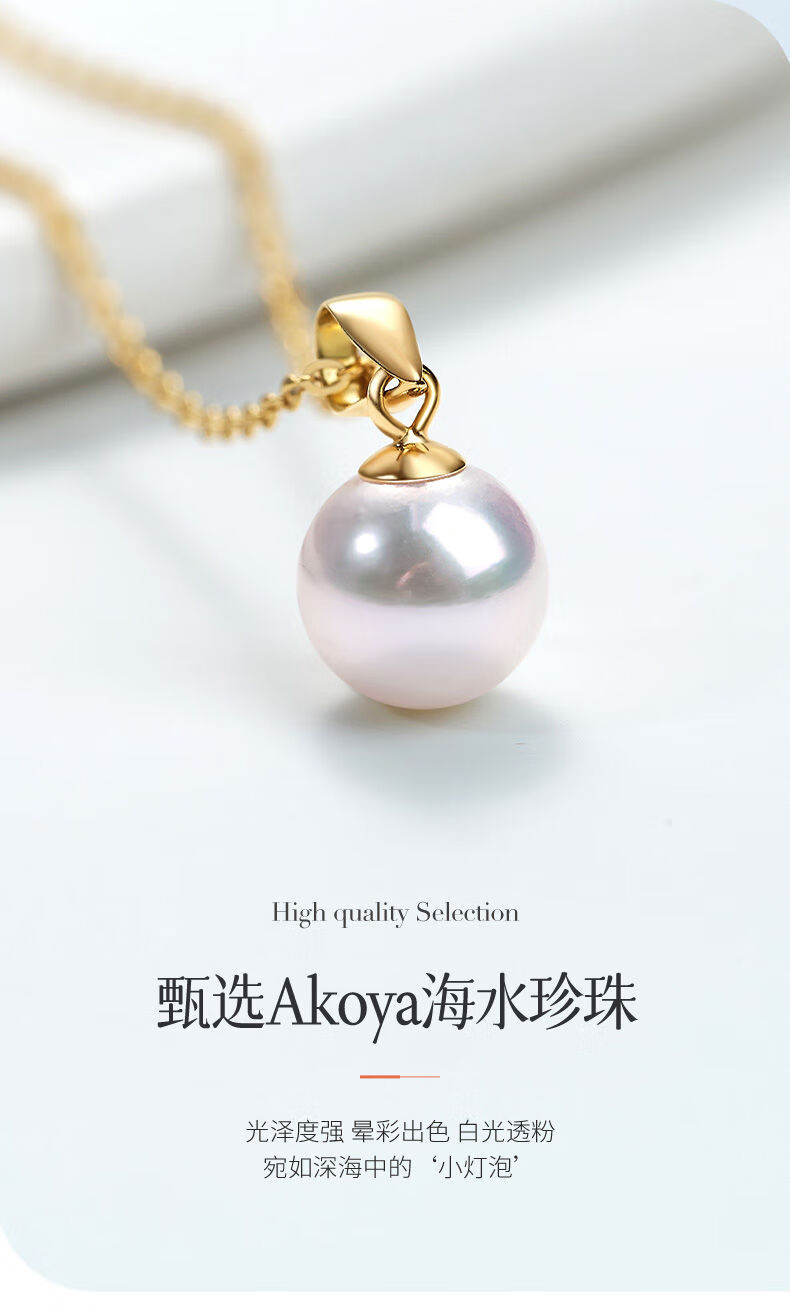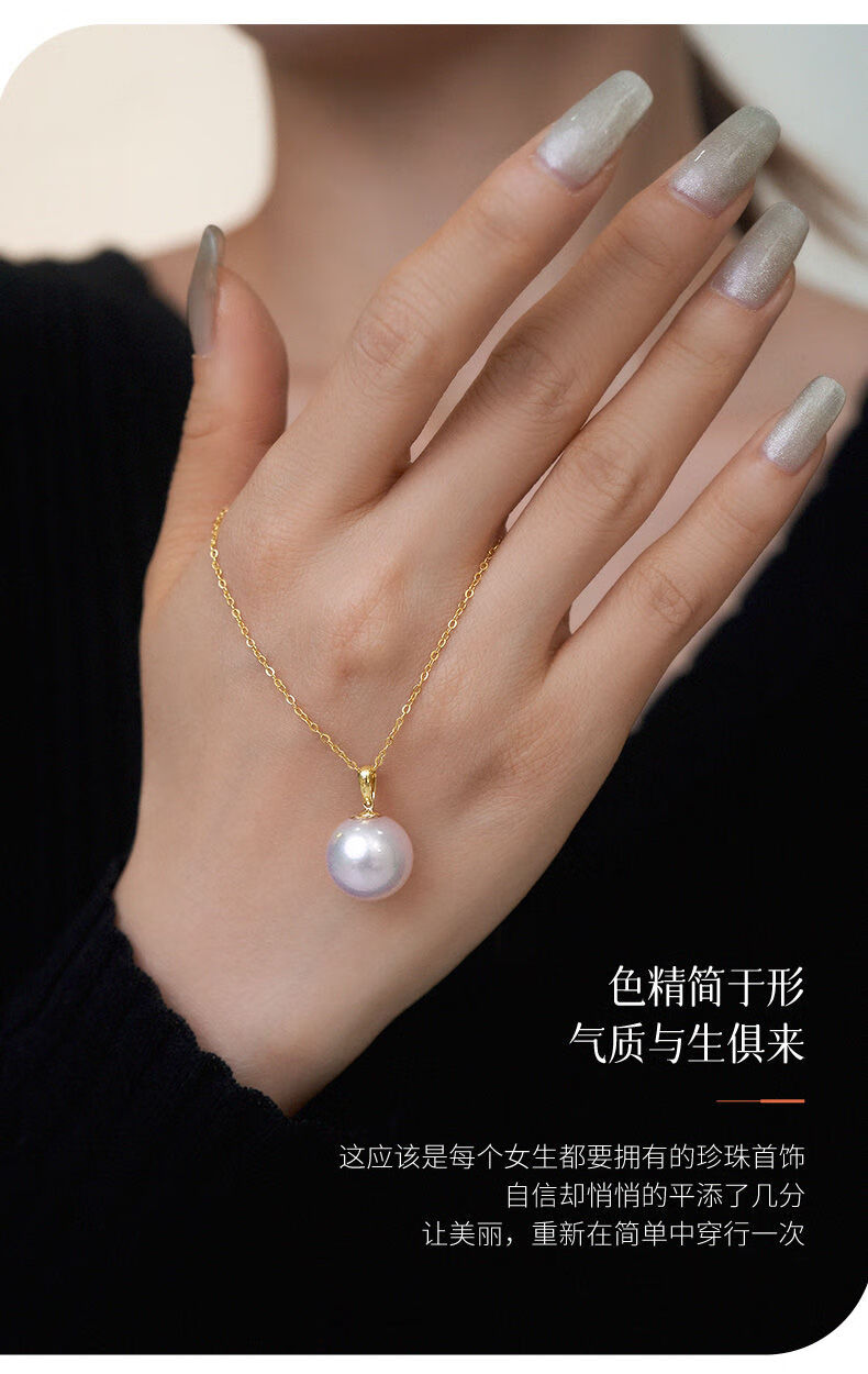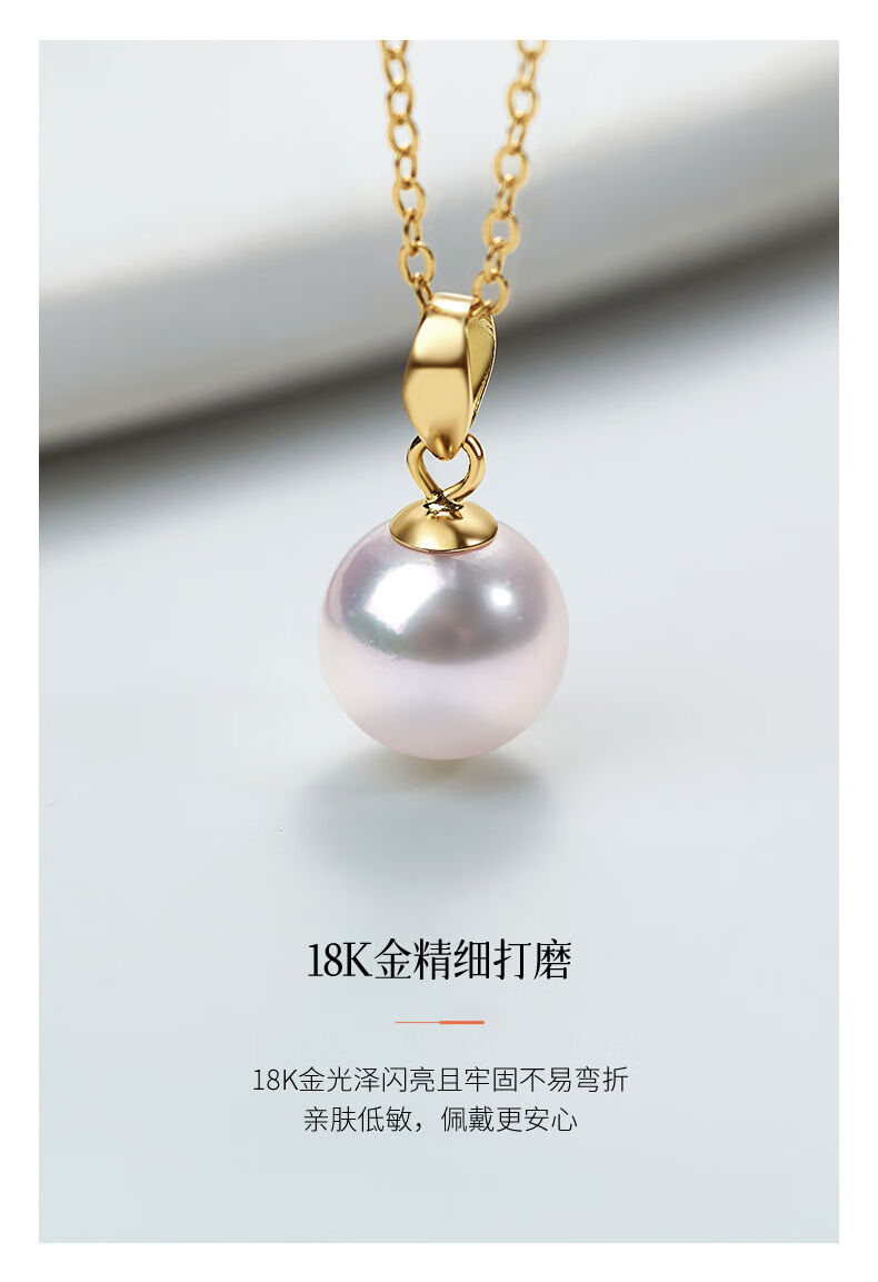 Hi diamond extremely simple pearl sea pearl pendant for women 18K gold akoya small light bulb pearl necklace clavicle chain birthday gift in stock - white 18K gold akoya white 7.5-8mm