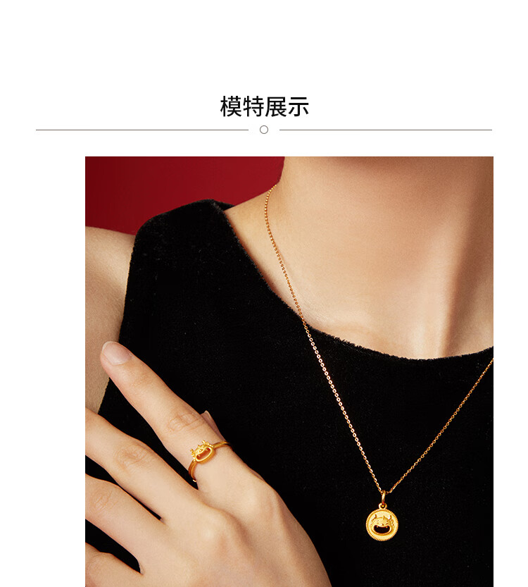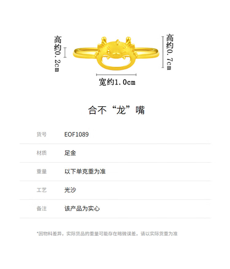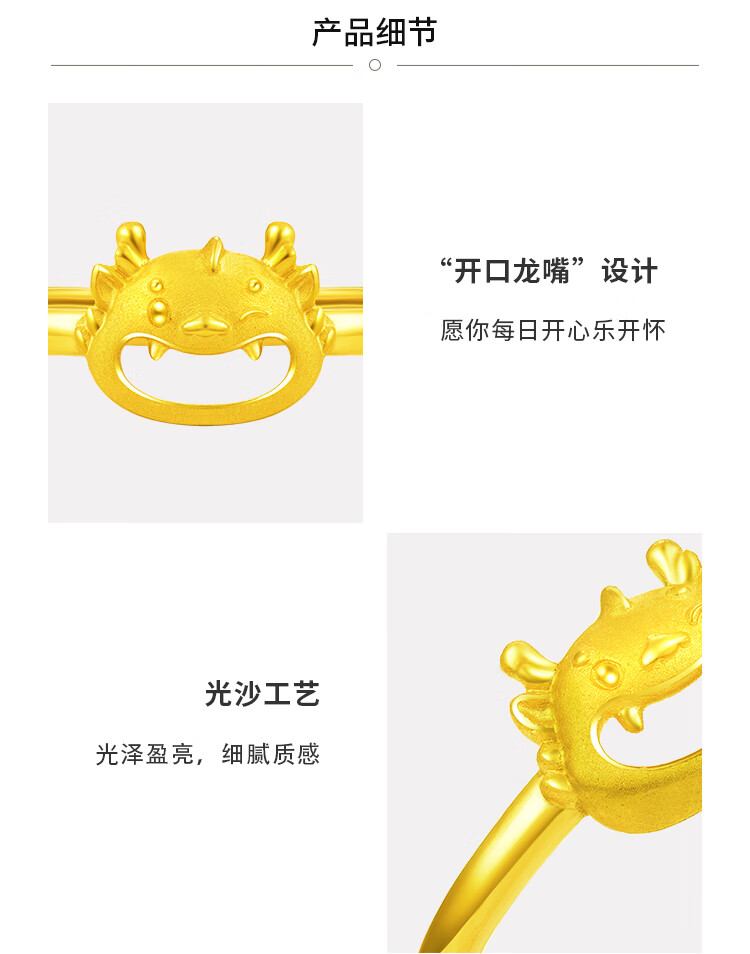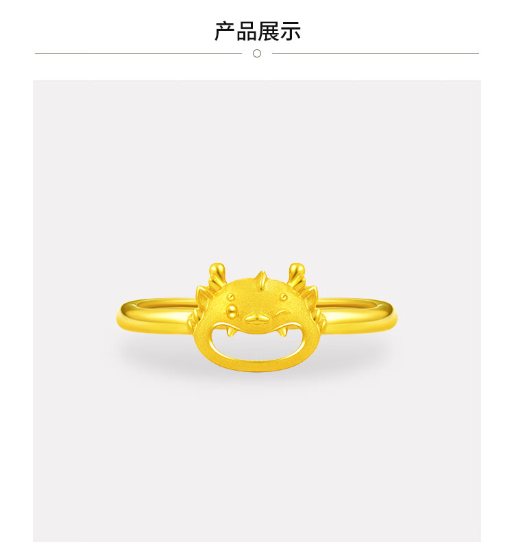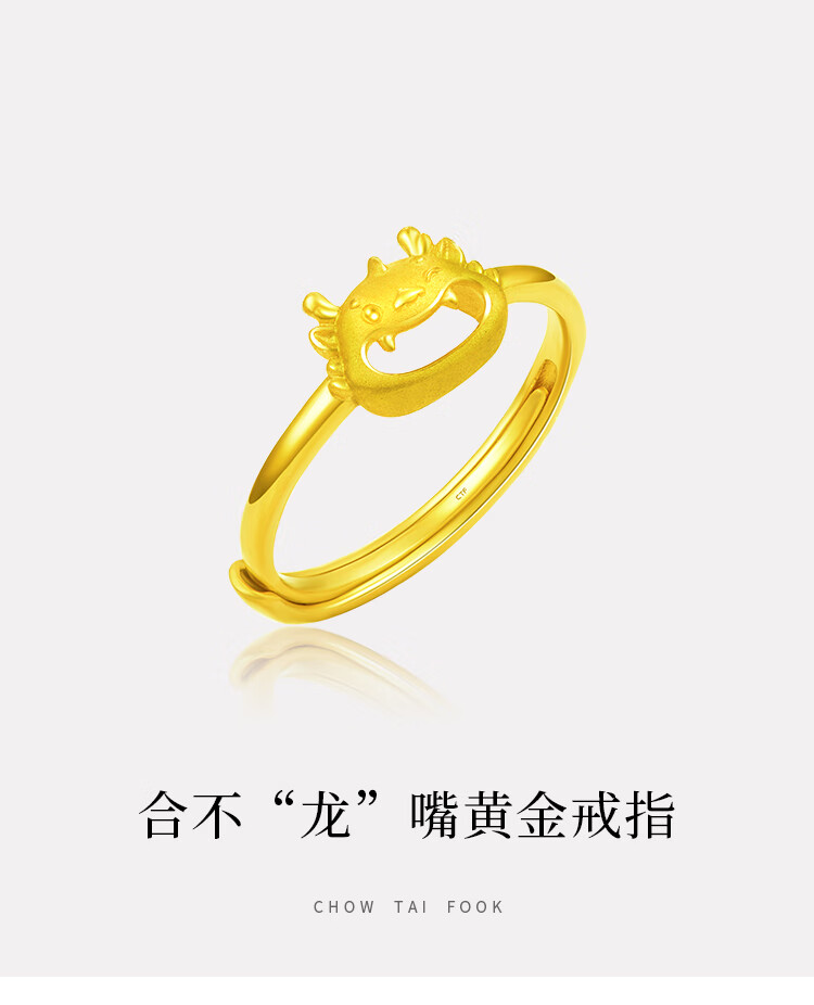 Chow Tai Fook Year of the Dragon Zodiac Series Dragon mouth pure gold gold ring (labor cost 120) EOF1089 gift pure gold about 2.95g