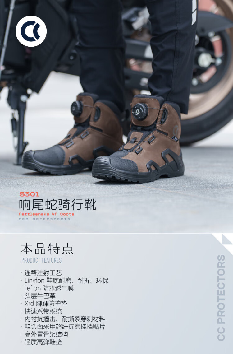 CC PROTECTORS Motorcycle Riding Shoes Anti-slip, Anti-Puncture, Comfortable Sidewinder/Cobra Sidewinder Black Four Seasons Water Repellent 43