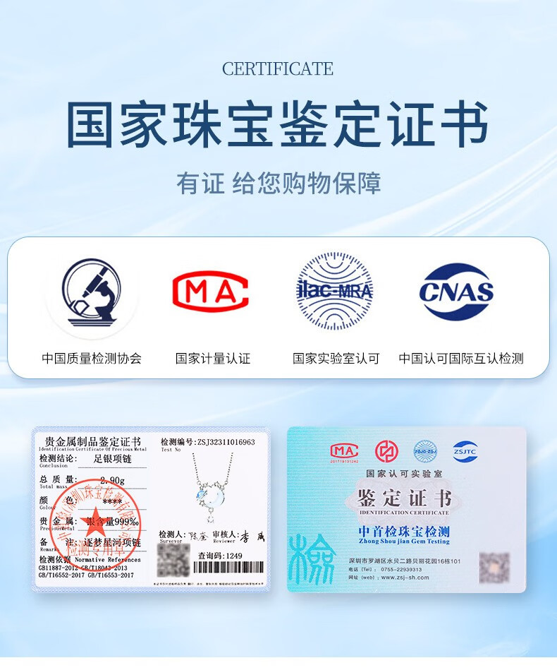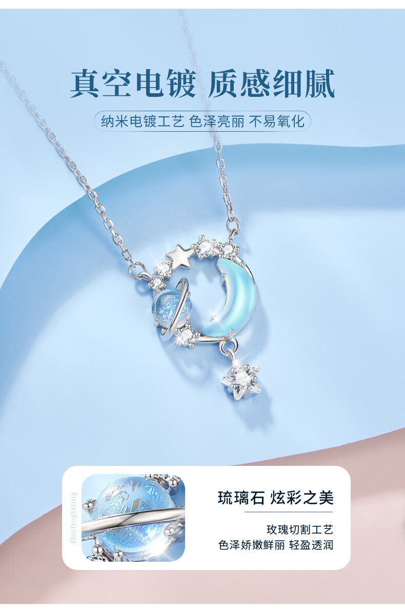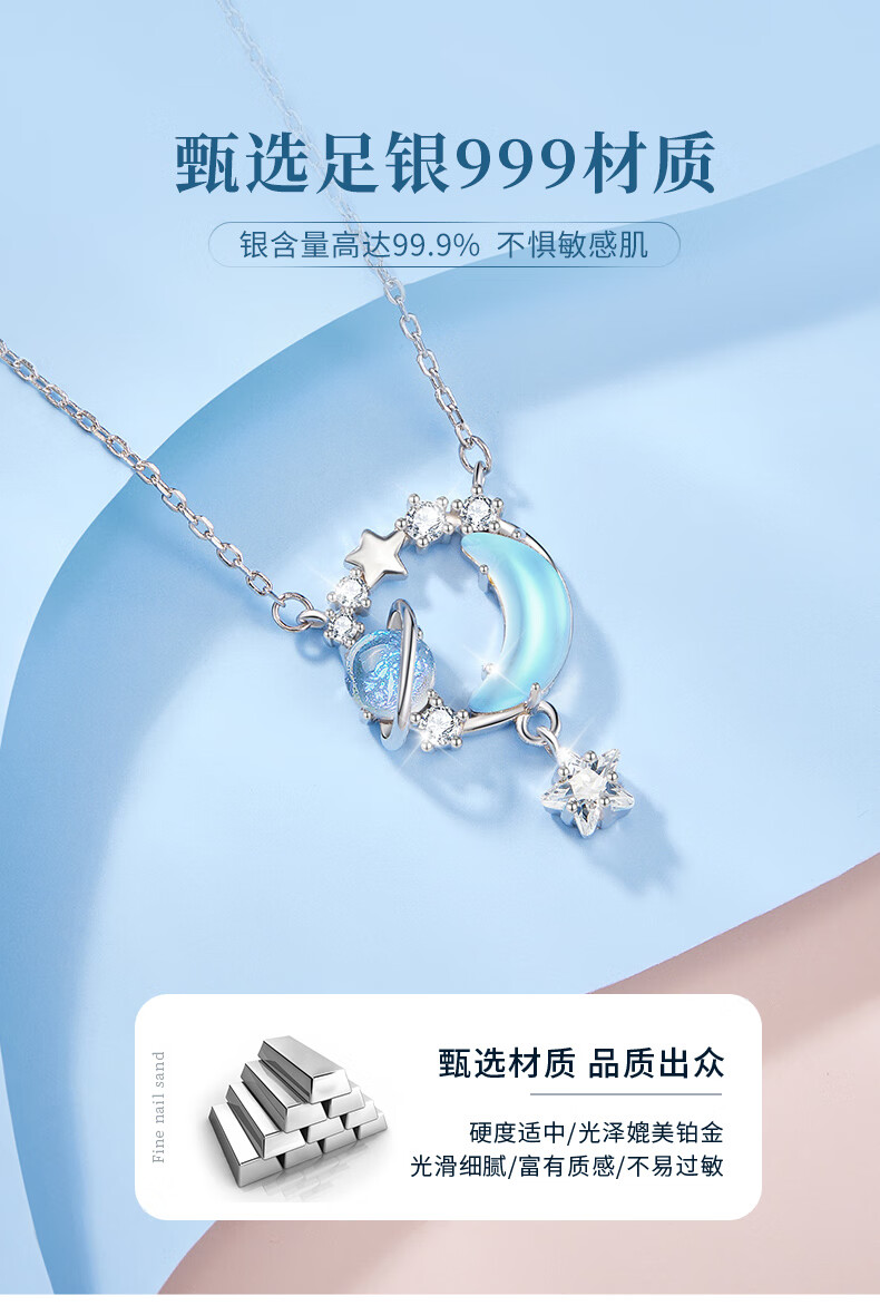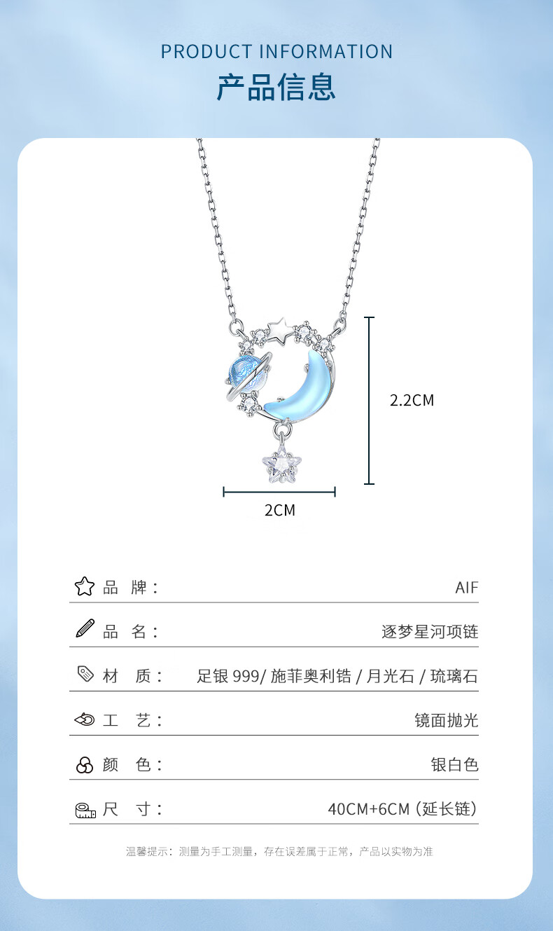 AIF Zhumeng Xinghe sterling silver 999 pure silver necklace women's light luxury birthday Valentine's Day birthday gift for girlfriend and wife Zhumeng Xinghe Necklace/Shipping from Qicang
