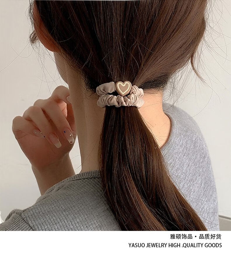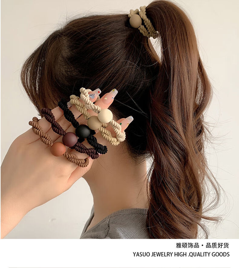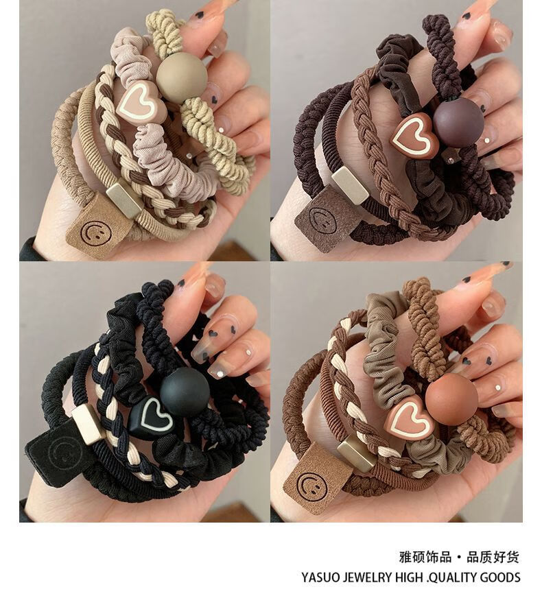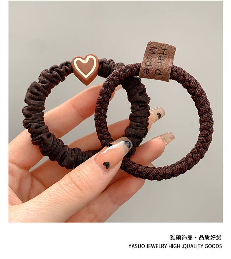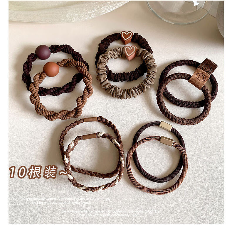 Songchuang Mengyu Chinese Valentine's Day Women's Hair Tie Simple High Ponytail Hair Rope Temperament Head Rope High Elasticity Durable Rubber Band 2024 New Hair Tie Fashionable Durable High Elasticity - Black + Brown 10 Pack