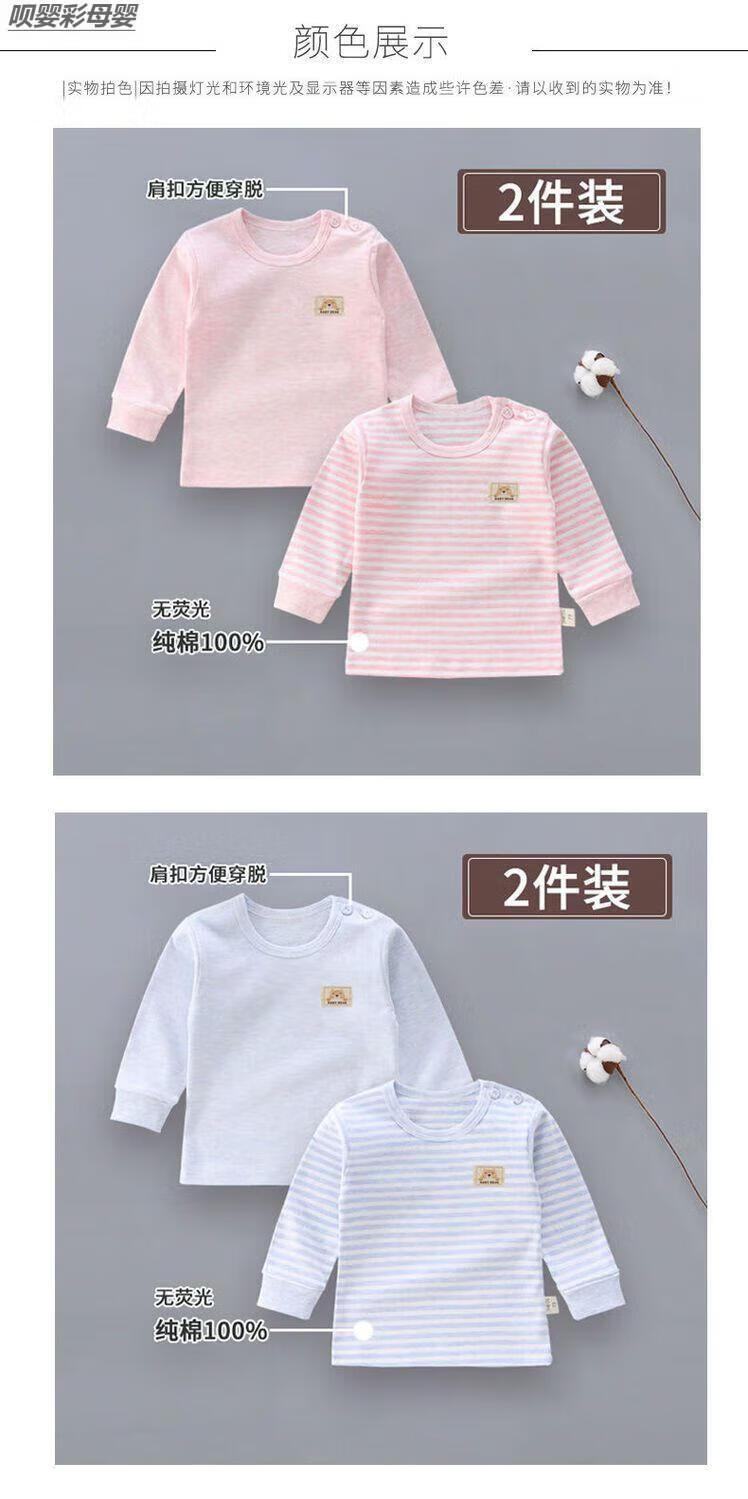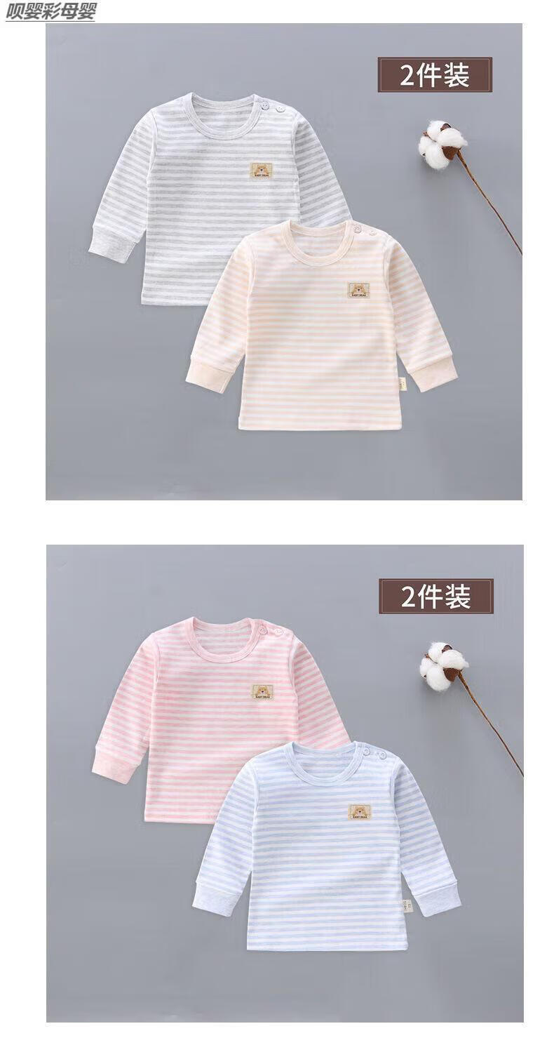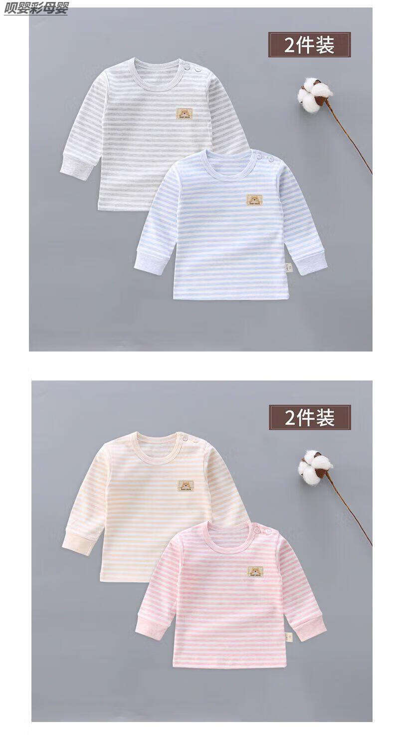 Baby Autumn Clothes 6-12 Months Bottoming Top Single Piece 2-Pack Baby Pure Cotton Autumn Clothes Shoulder Buckle Underwear Single-Piece Low Collar Children Newborn Male and Female Long Sleeve Spring and Autumn 03 Gray Strips + Gray Pure Shoulder Buckle 2-Pack Boneless Sewing 66 3-6 Months With Shoulder Buckle