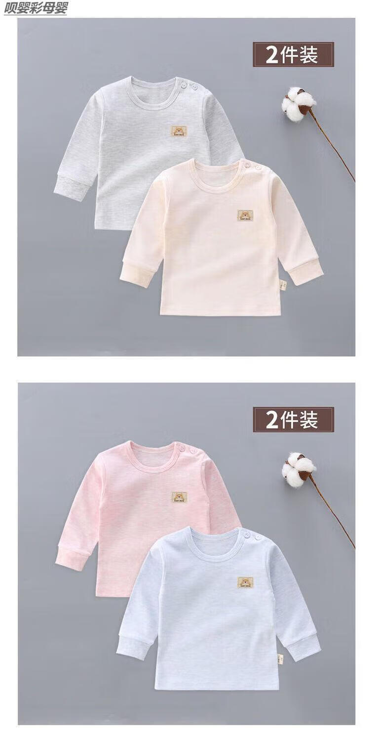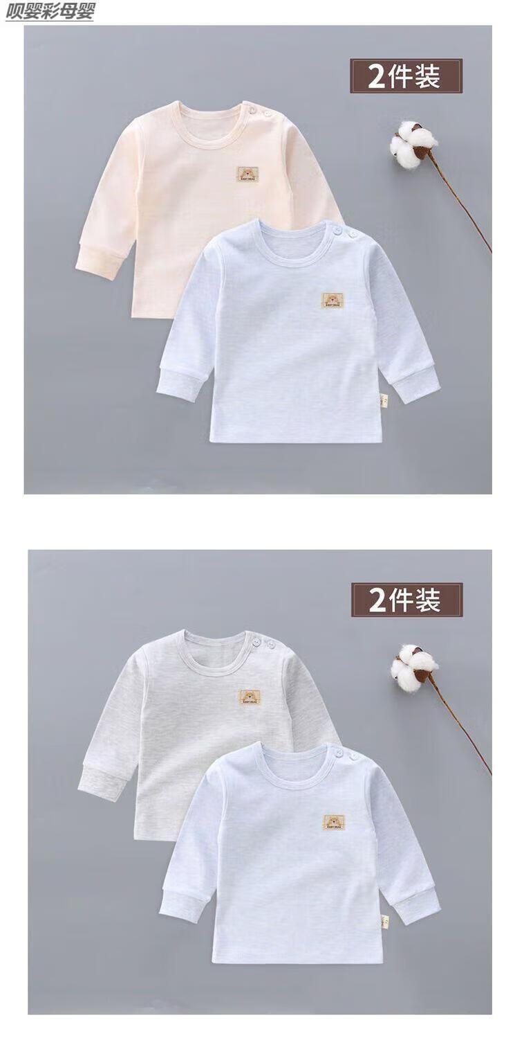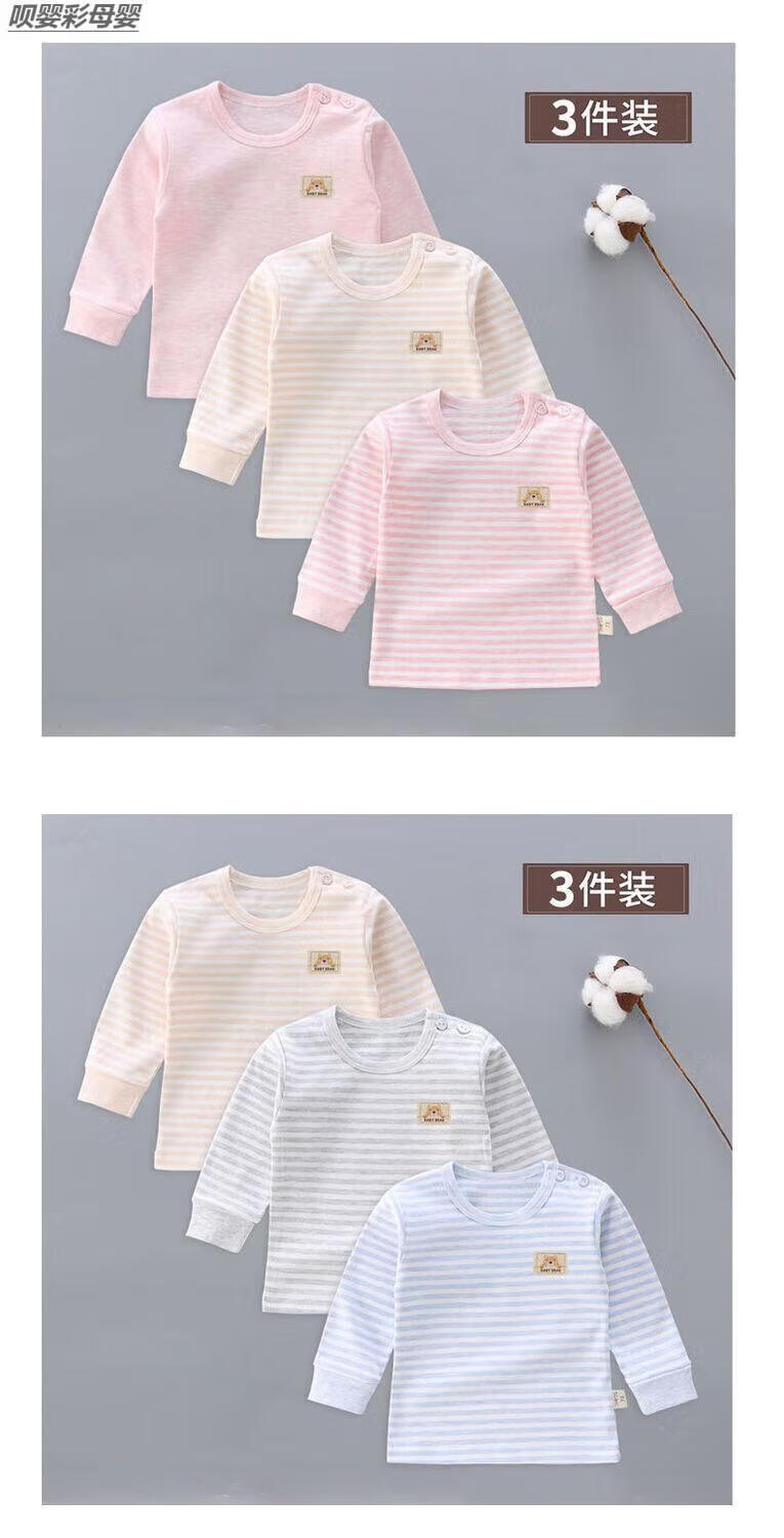 Baby Autumn Clothes 6-12 Months Bottoming Top Single Piece 2-Pack Baby Pure Cotton Autumn Clothes Shoulder Buckle Underwear Single-Piece Low Collar Children Newborn Male and Female Long Sleeve Spring and Autumn 03 Gray Strips + Gray Pure Shoulder Buckle 2-Pack Boneless Sewing 66 3-6 Months With Shoulder Buckle