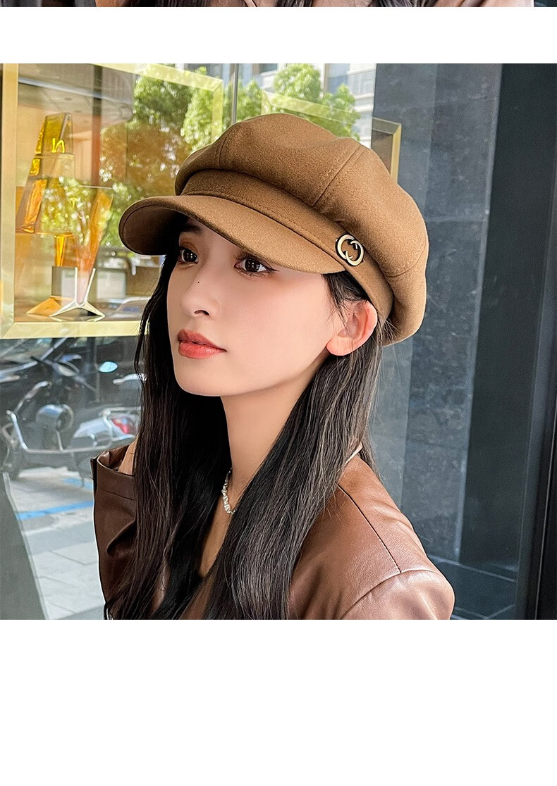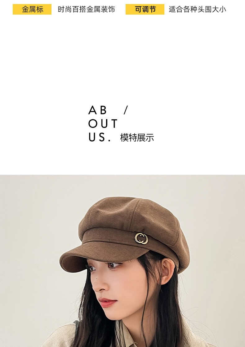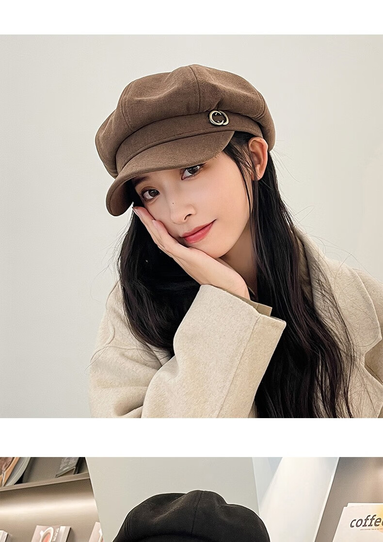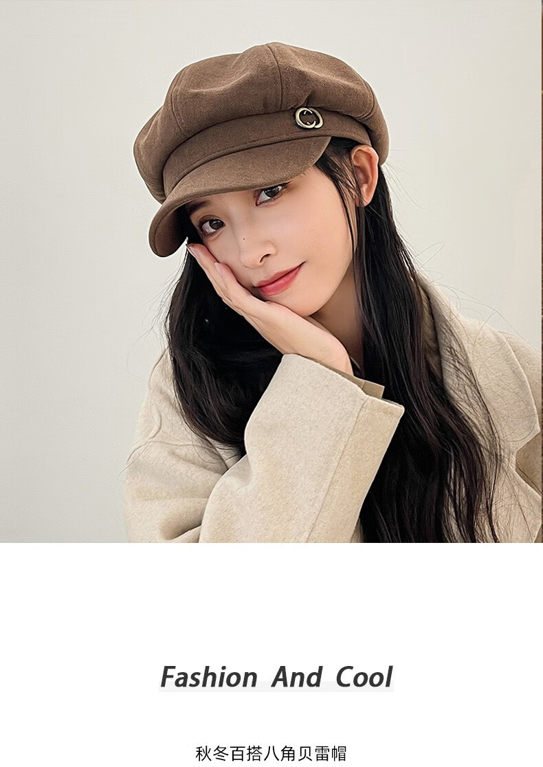 Charm Kendo beret autumn and winter versatile octagonal hat windproof big head circumference newsboy hat cold-proof warm casual men and women same style coffee color