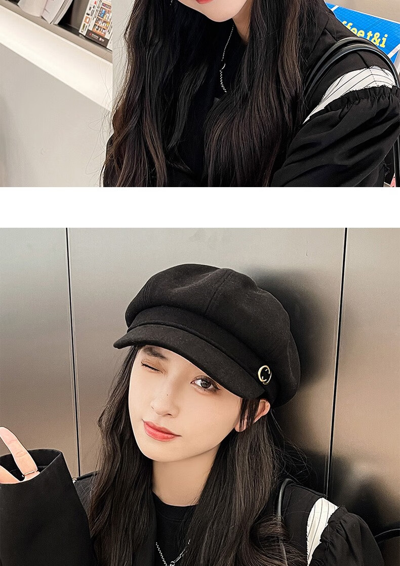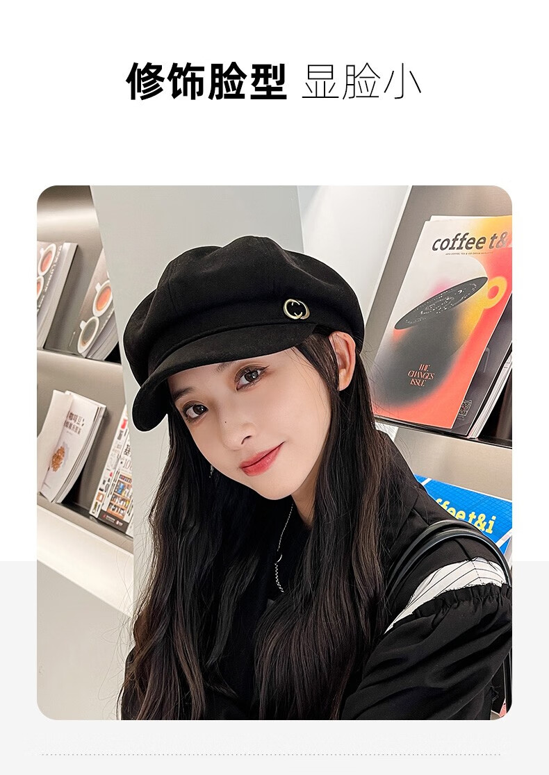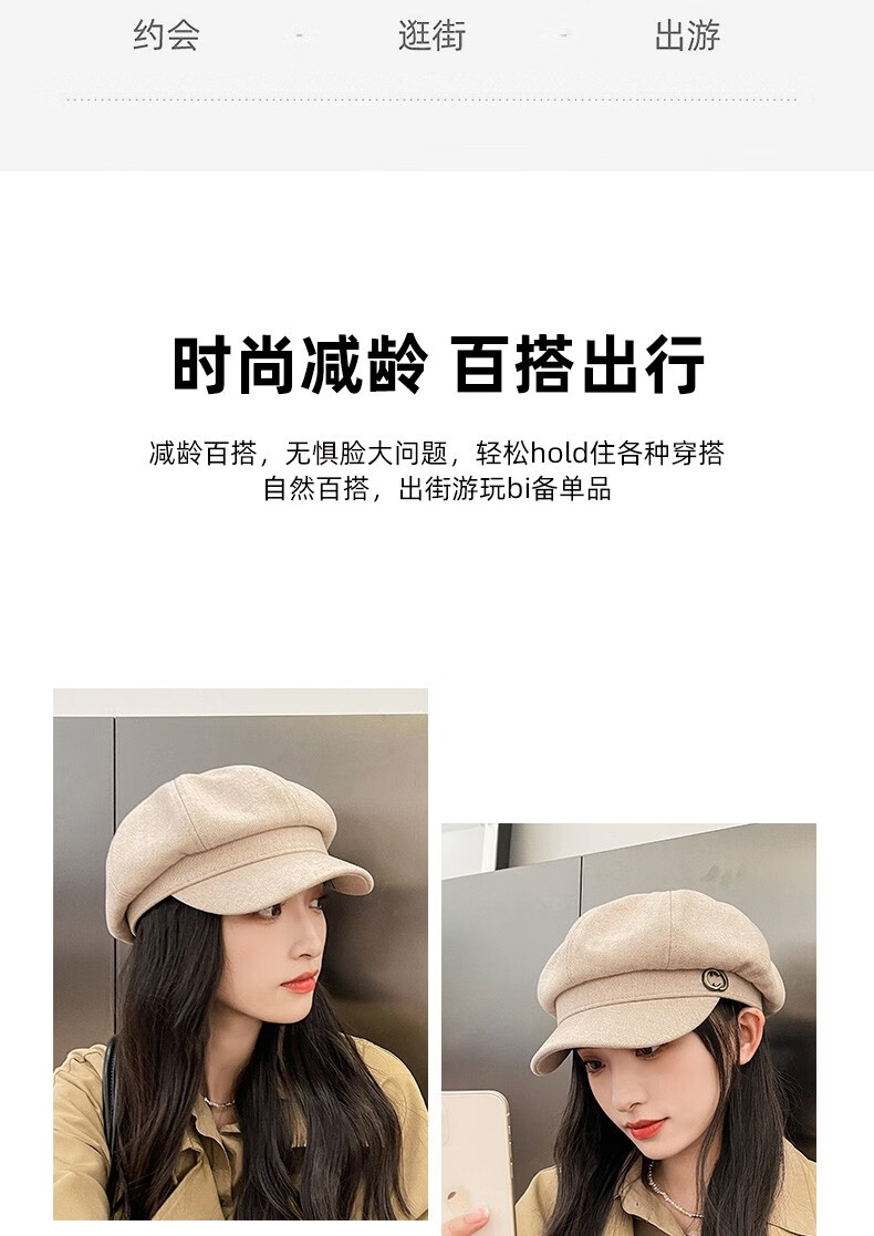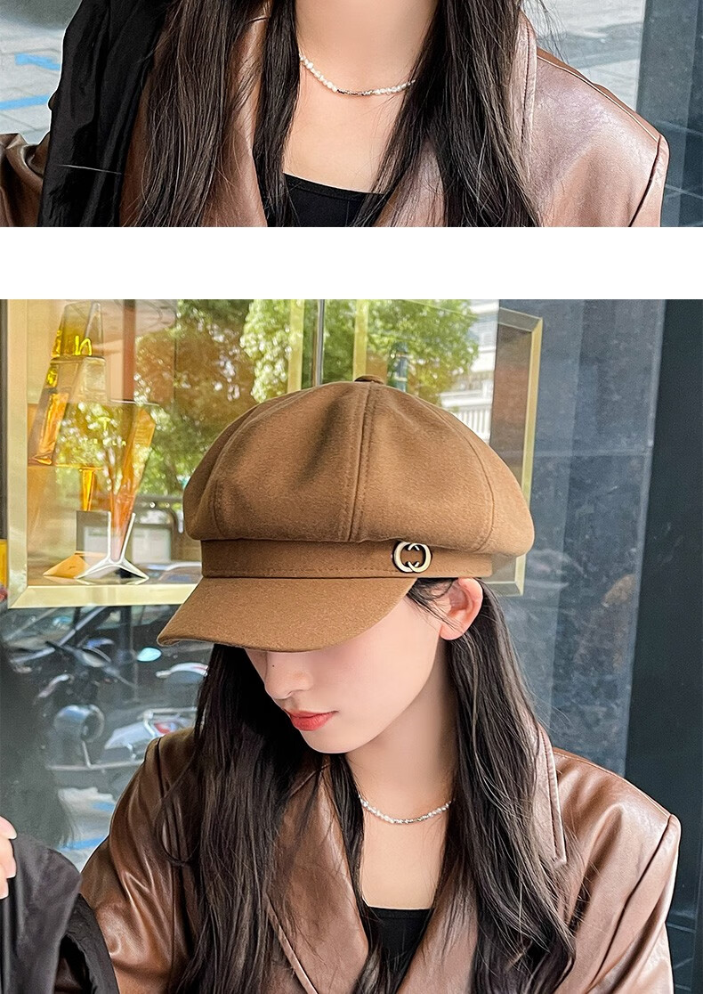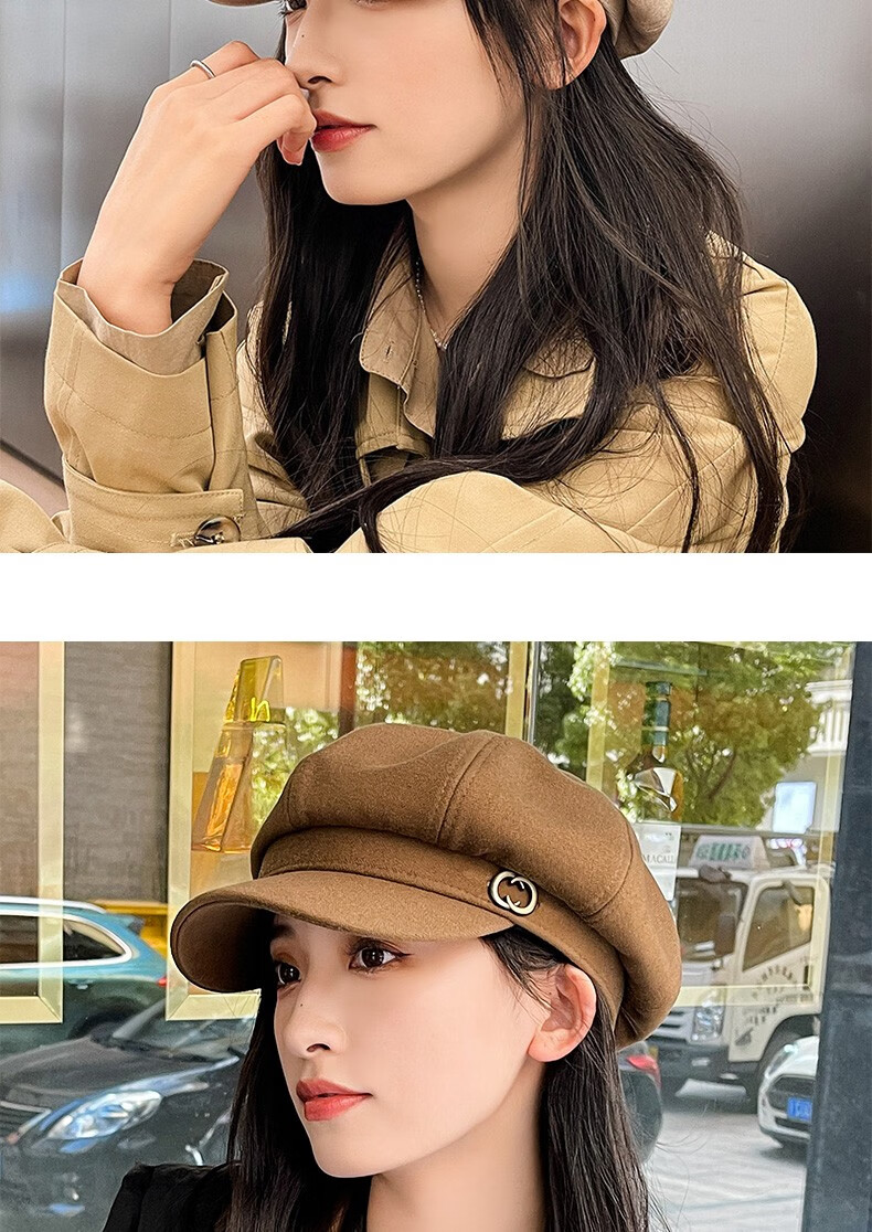 Charm Kendo beret autumn and winter versatile octagonal hat windproof big head circumference newsboy hat cold-proof warm casual men and women same style coffee color