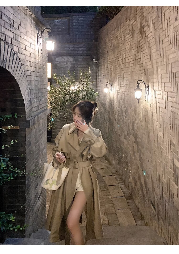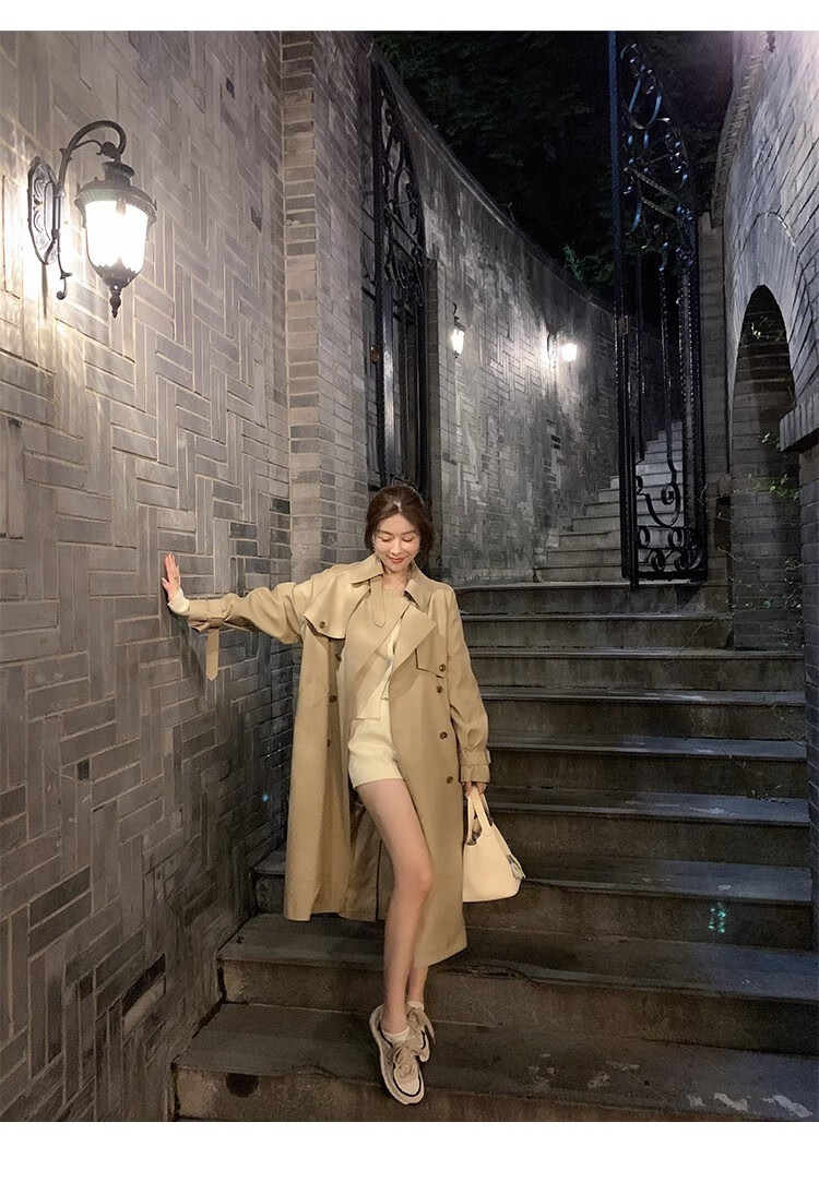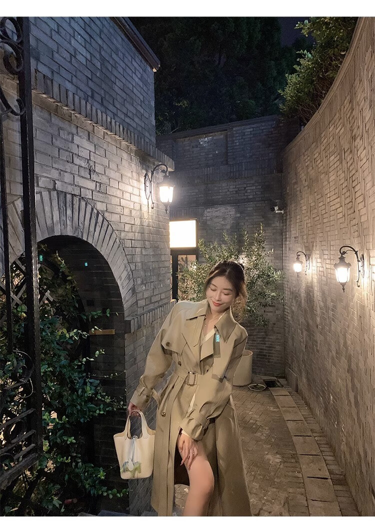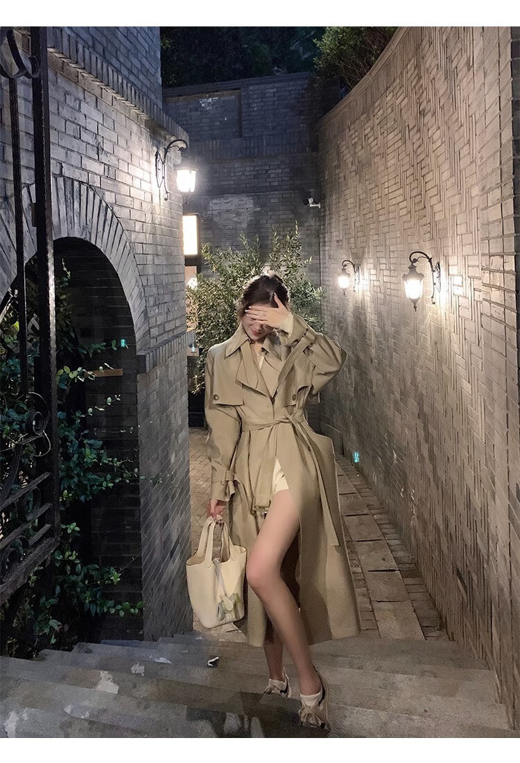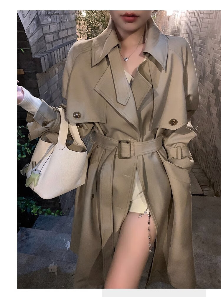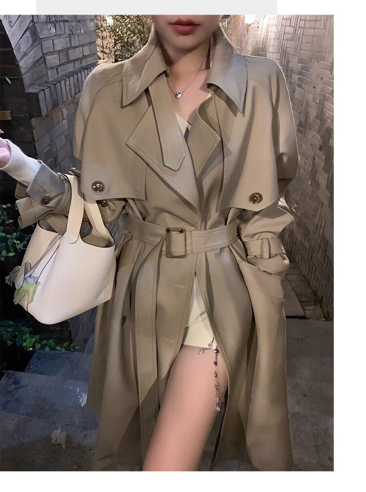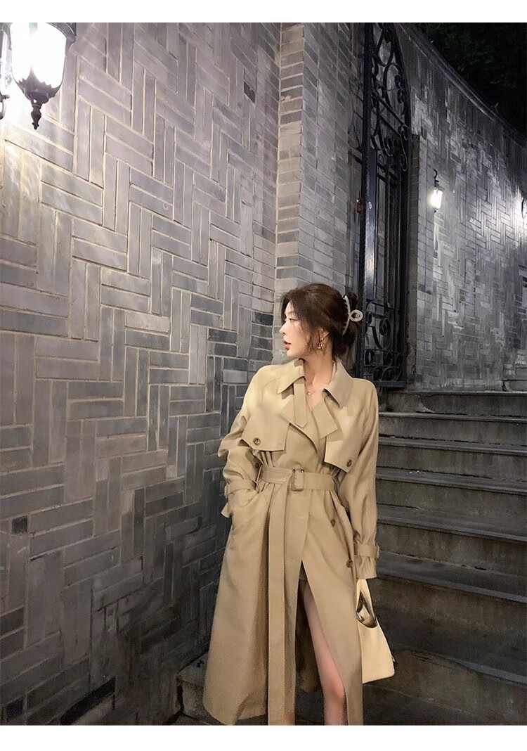 AEMAPE autumn new high-end mid-length khaki windbreaker coat for women small British style drape casual coat khaki S -95-110Jin Jin is equal to 0.5 kg.