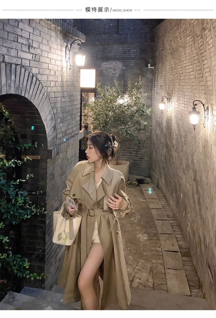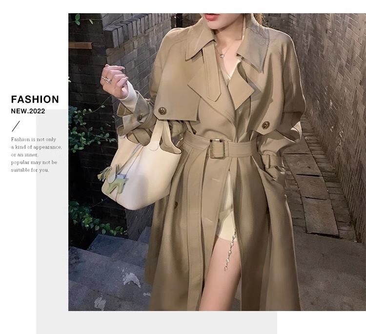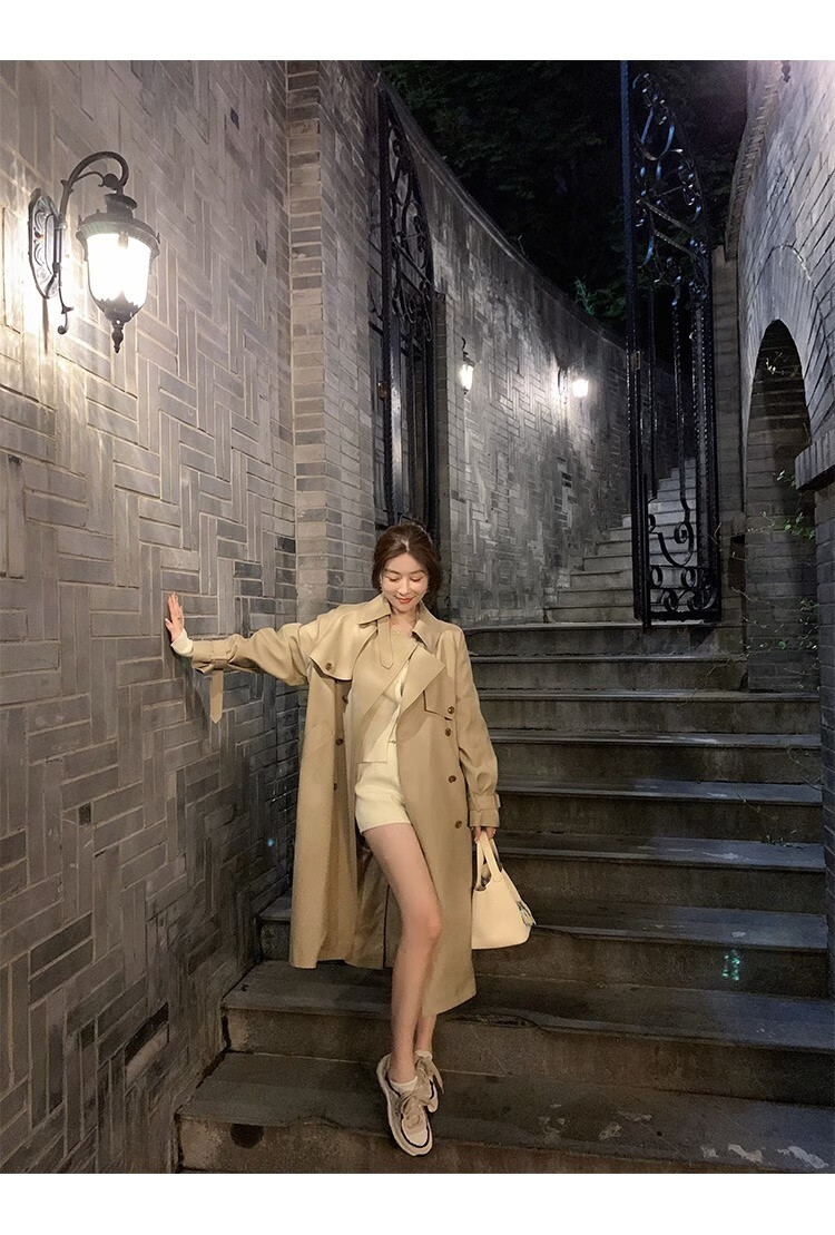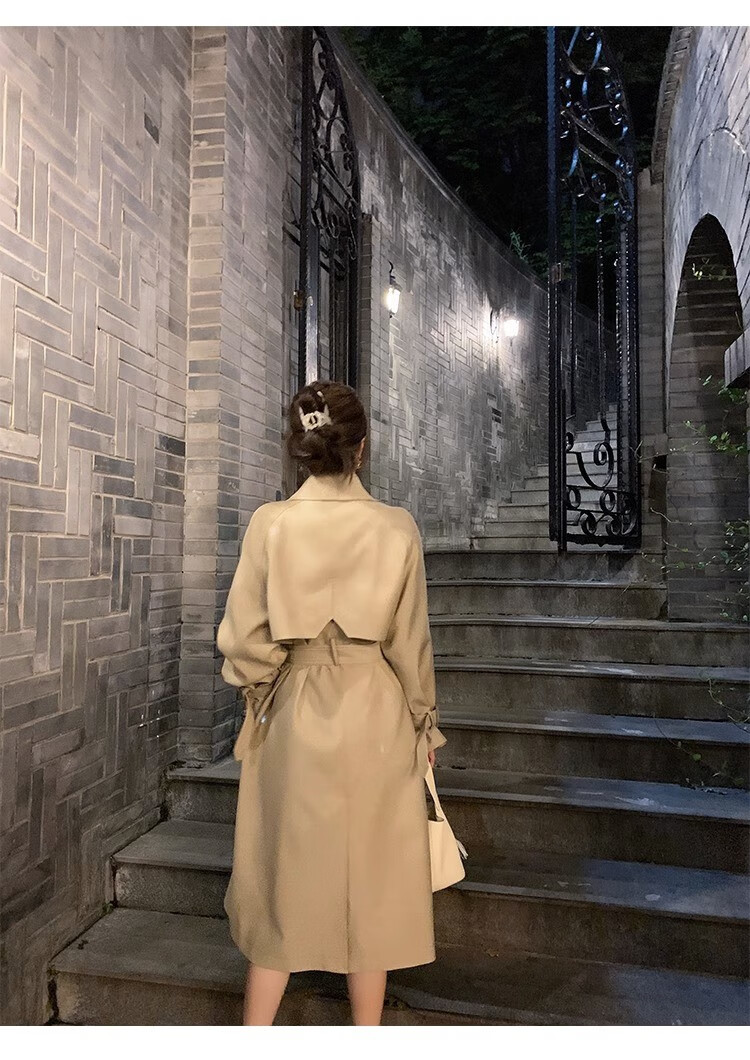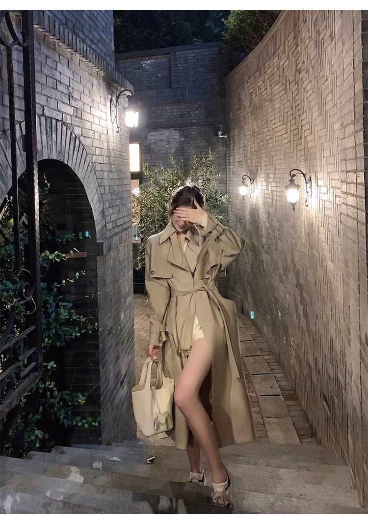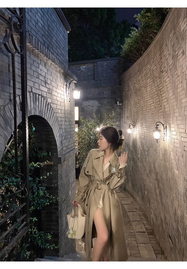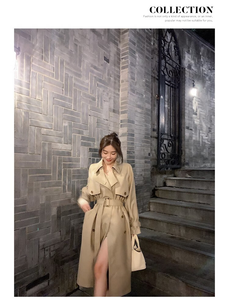 AEMAPE autumn new high-end mid-length khaki windbreaker coat for women small British style drape casual coat khaki S -95-110Jin Jin is equal to 0.5 kg.