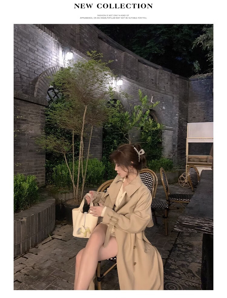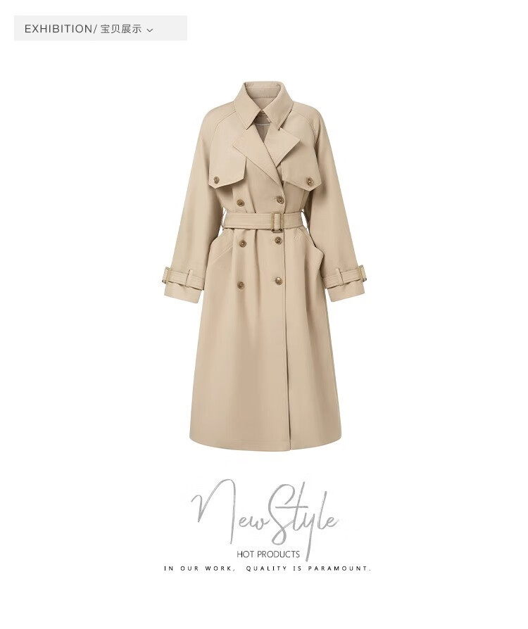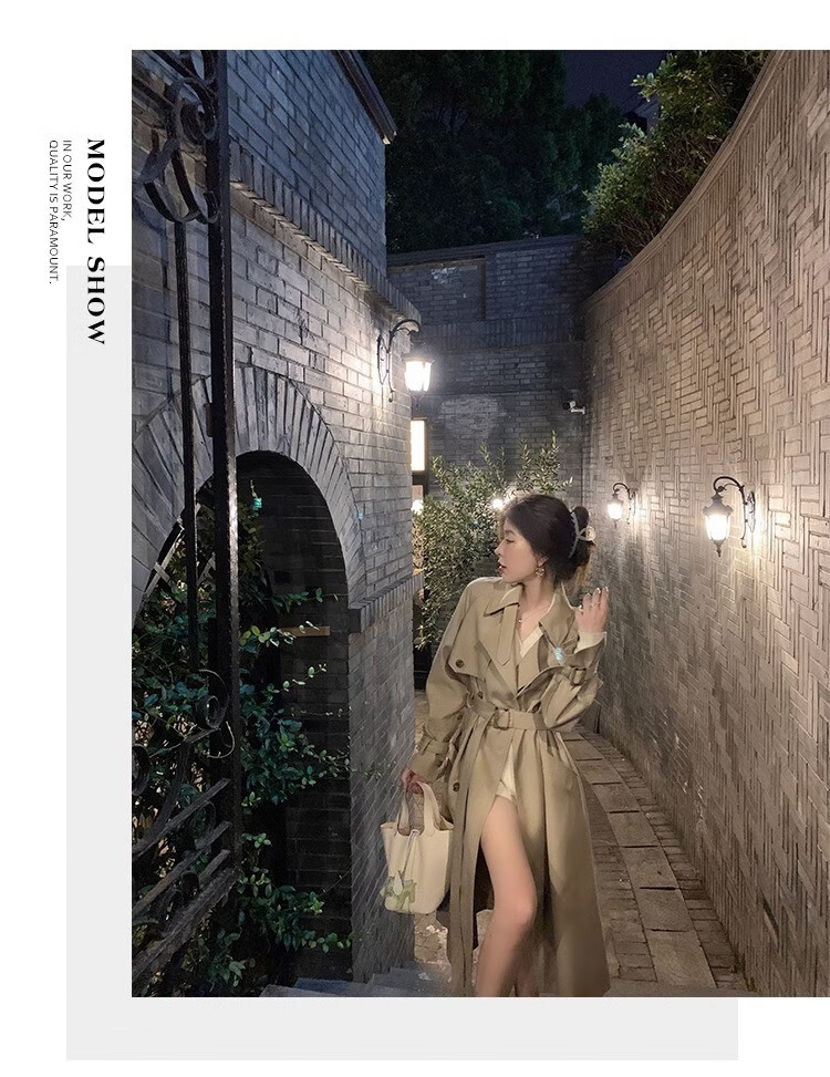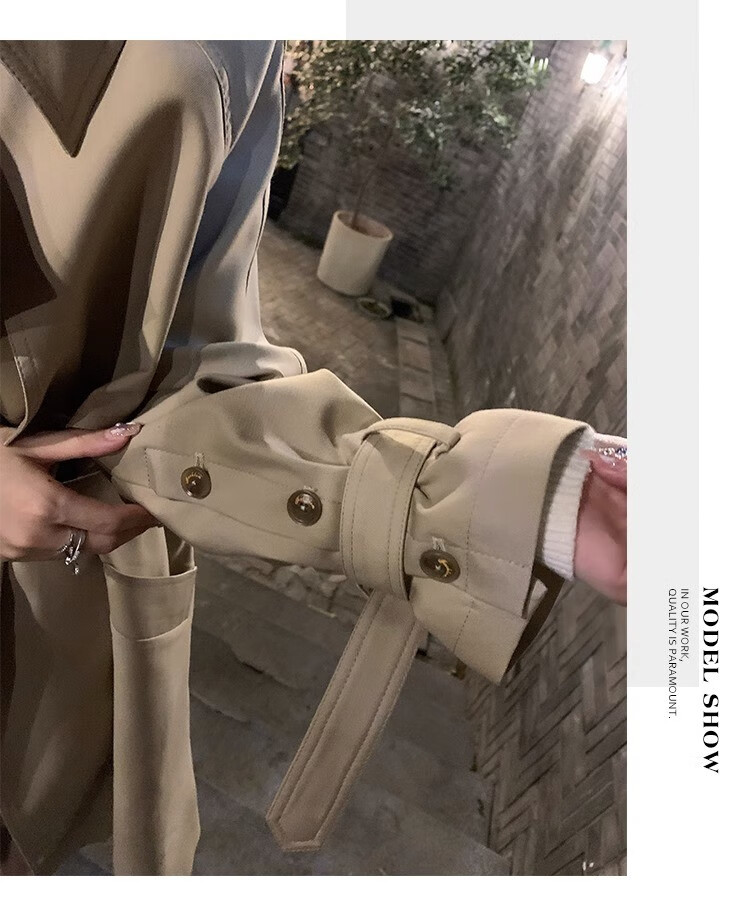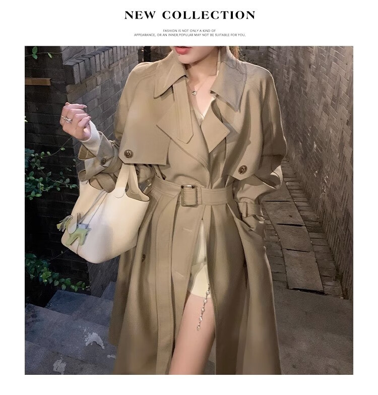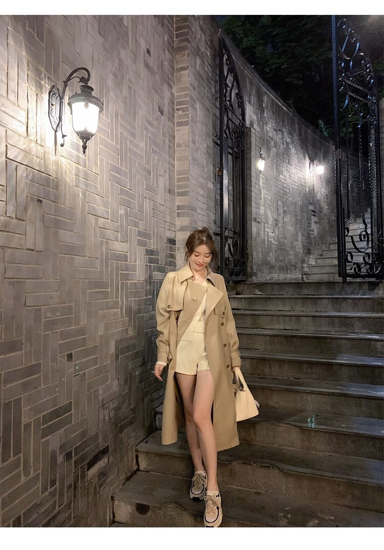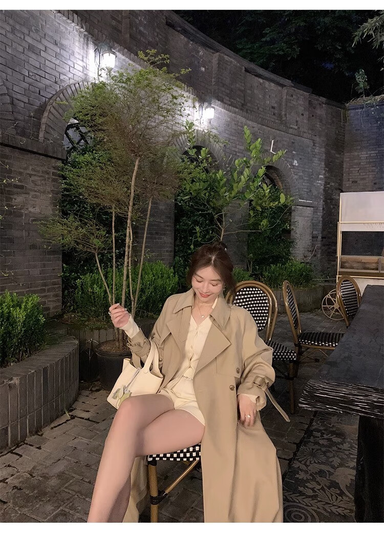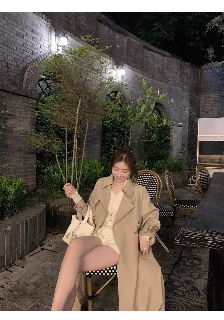 AEMAPE autumn new high-end mid-length khaki windbreaker coat for women small British style drape casual coat khaki S -95-110Jin Jin is equal to 0.5 kg.