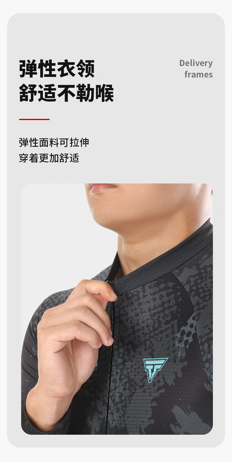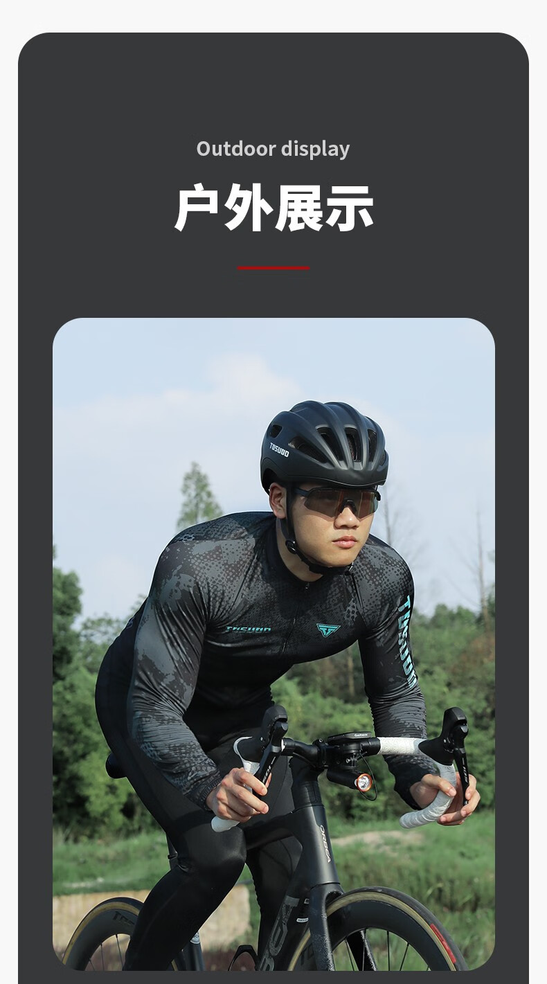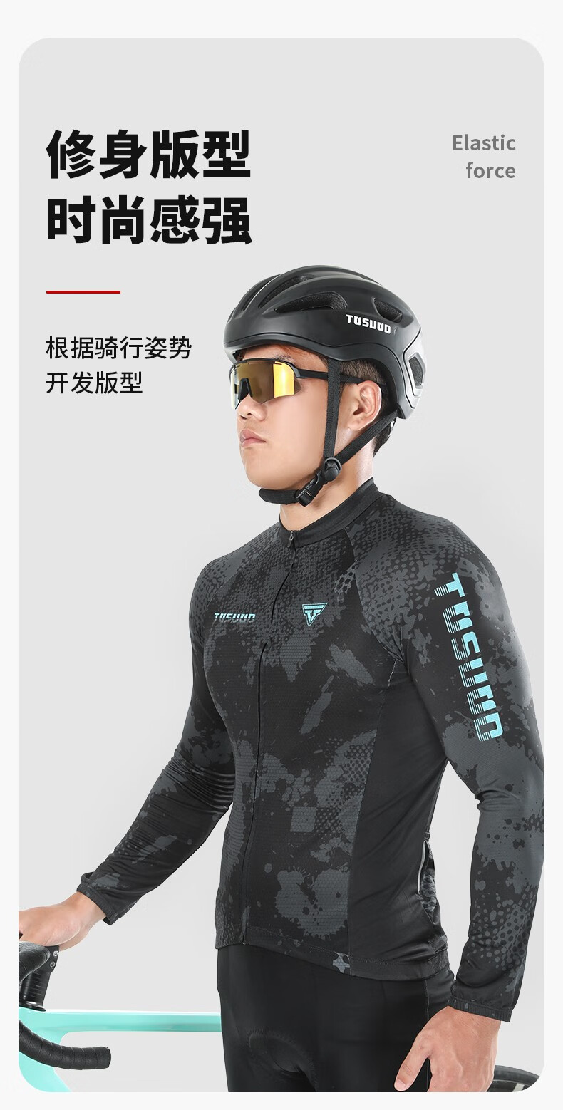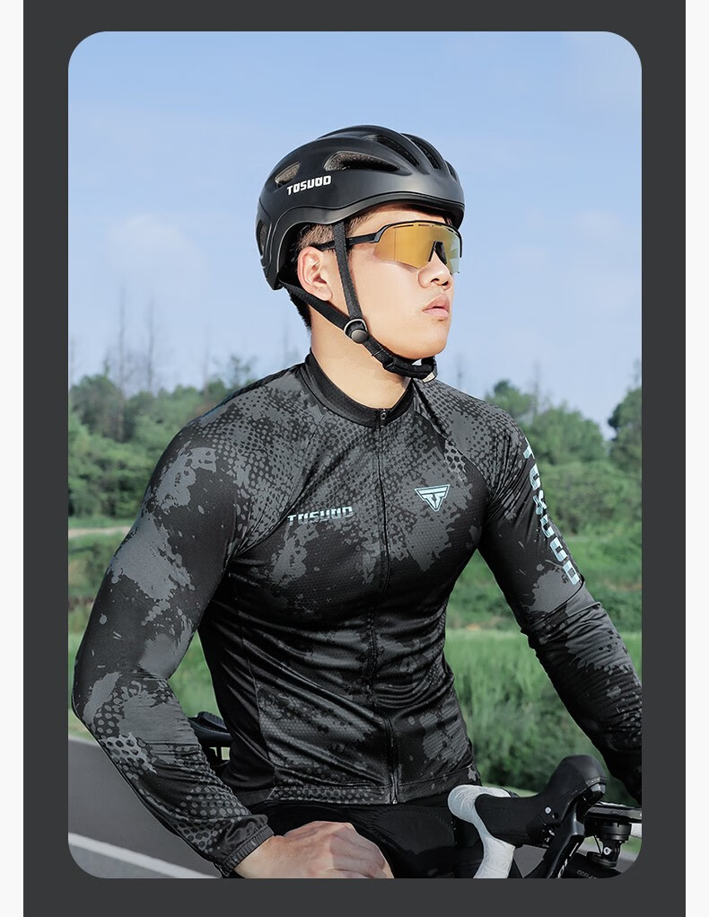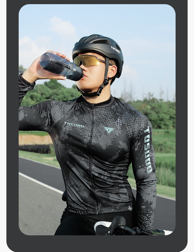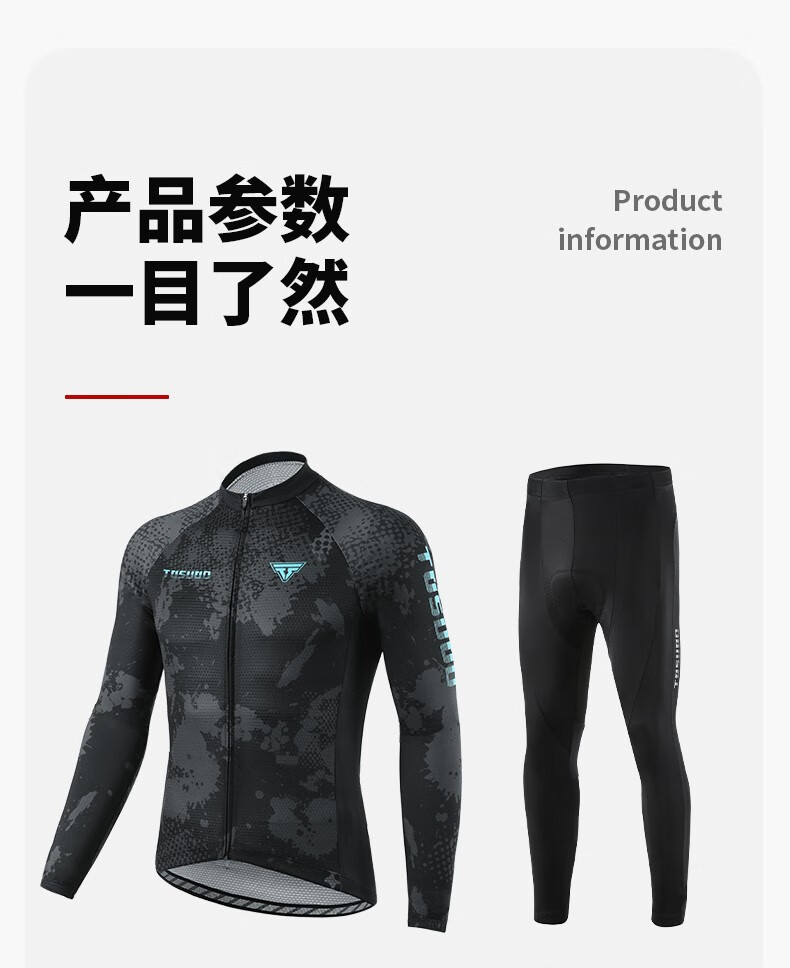 Tas Chang spring and summer road bike professional long-sleeved cycling jersey top high elastic breathable quick-drying mountain bike jersey black gray suit L