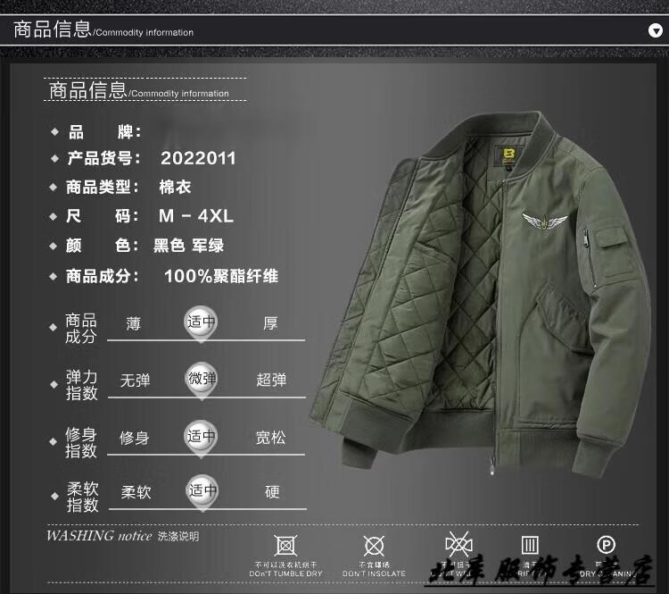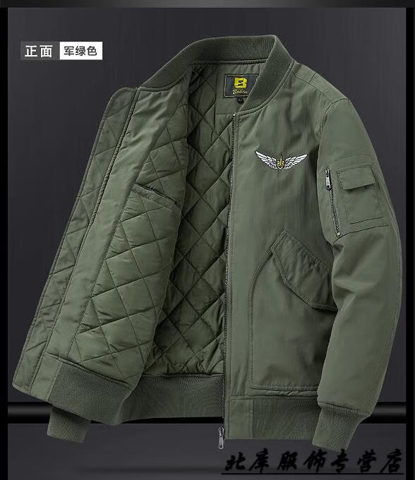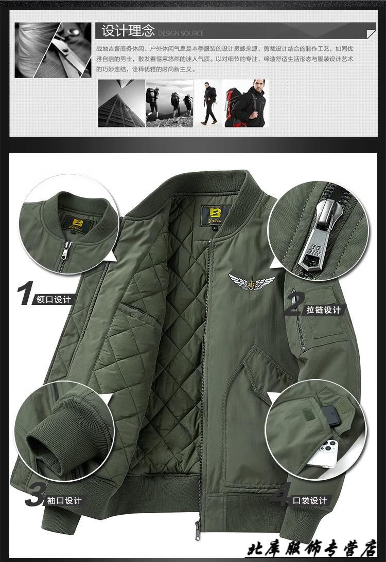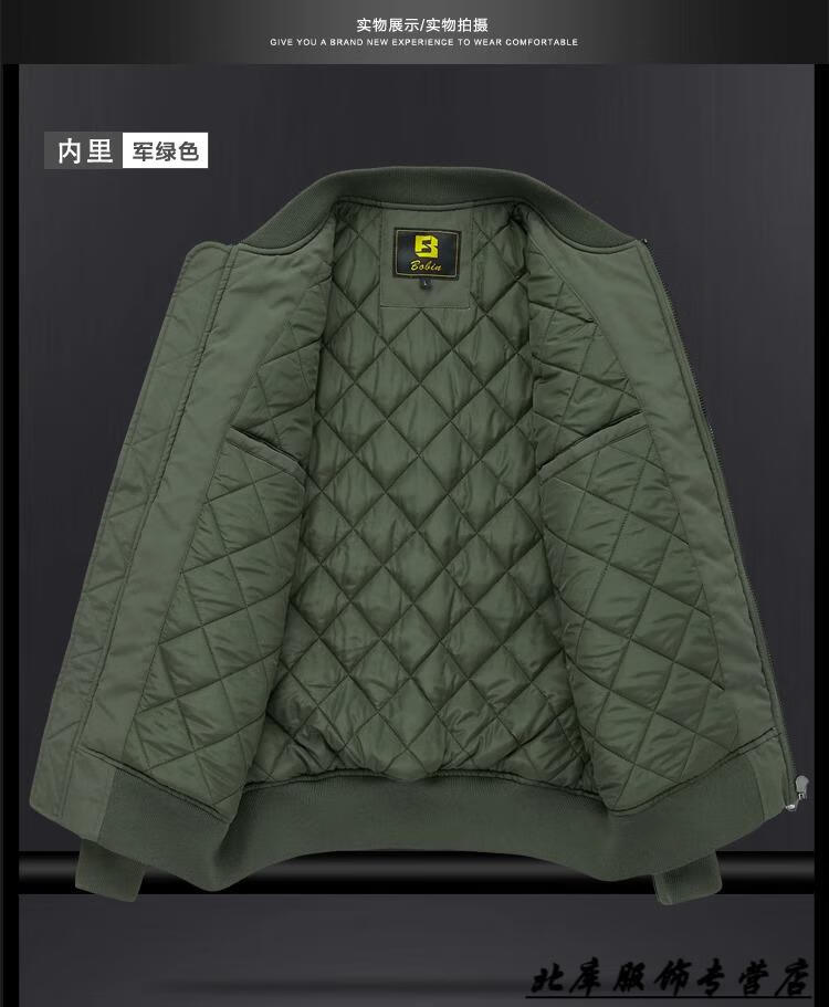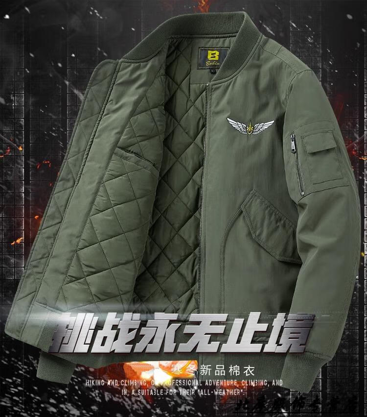JEEP SPIRIT Pilot Cotton Jacket Men's Autumn and Winter Cotton Thickened Work Jacket Loose Trendy Casual Large Size Baseball Army Green XL
