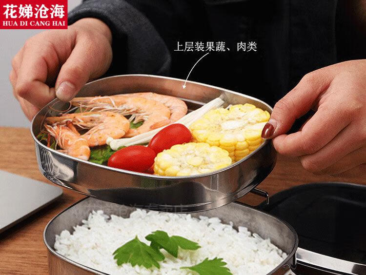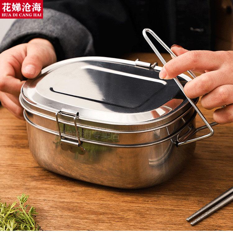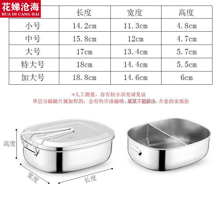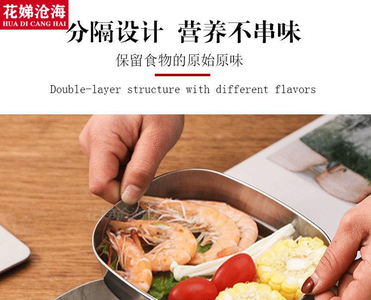 Murannuoer stainless steel dinner plate household practical exquisite stainless steel lunch box engraved rectangular thickened student canteen medium size divided into two parts
