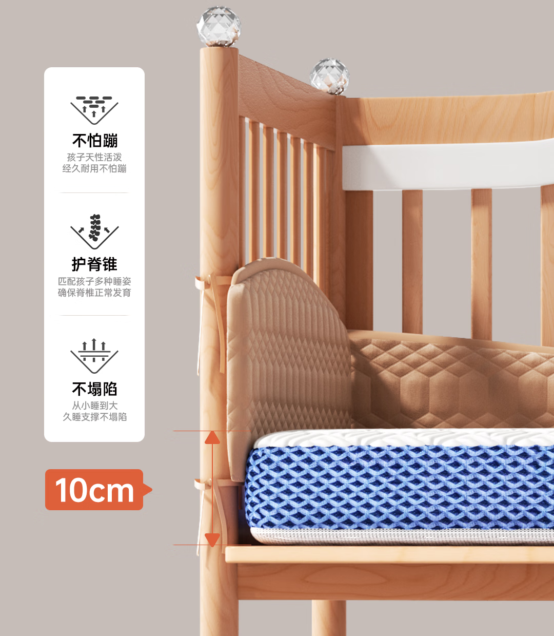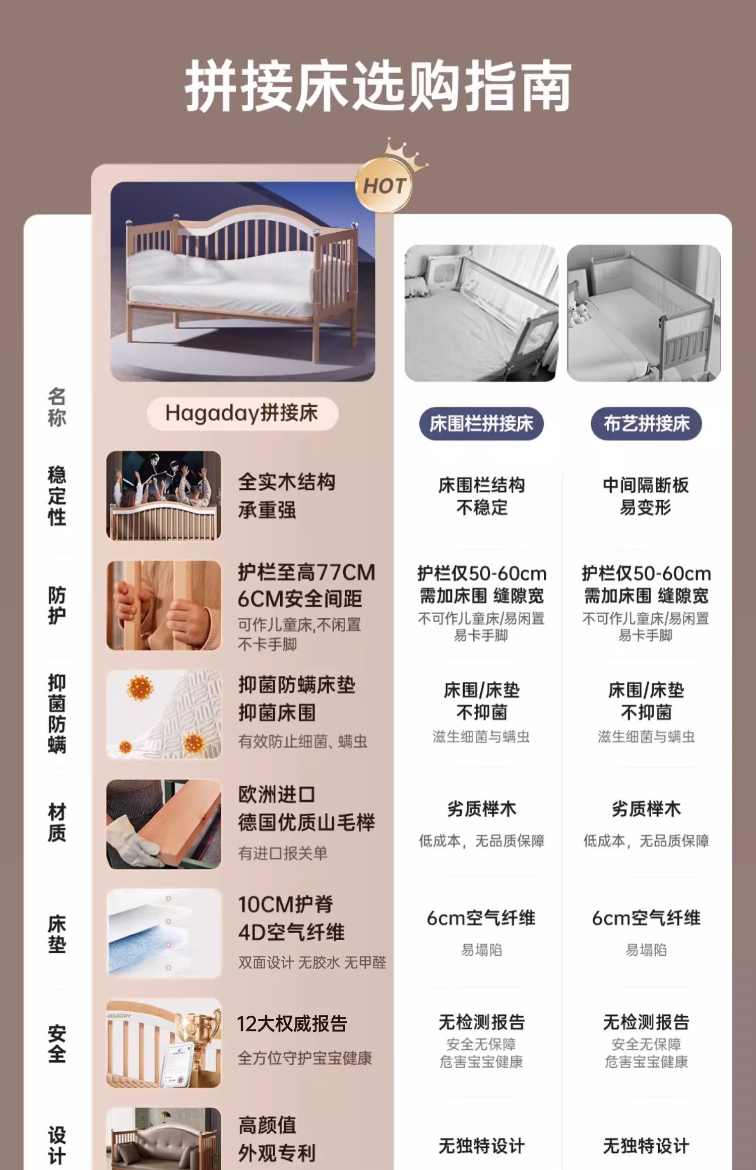 HAGADAY crib seamless splicing bed solid wood baby children's large bed newborn baby bed single bed + 5cm full coconut mattress 200*60cm