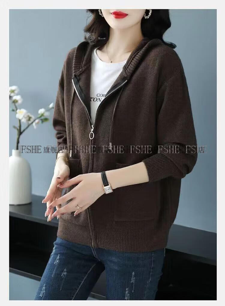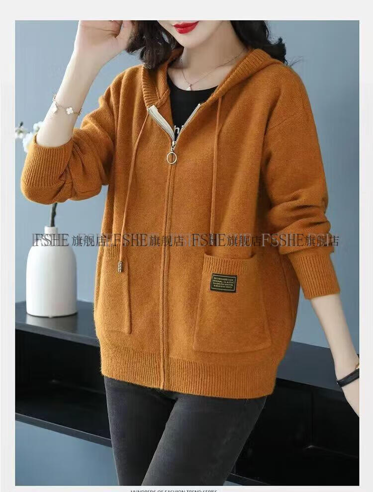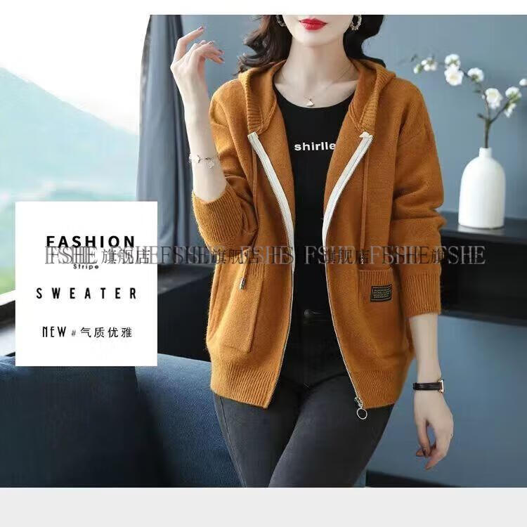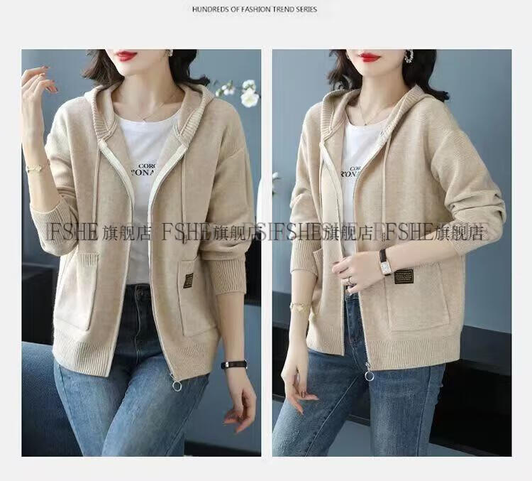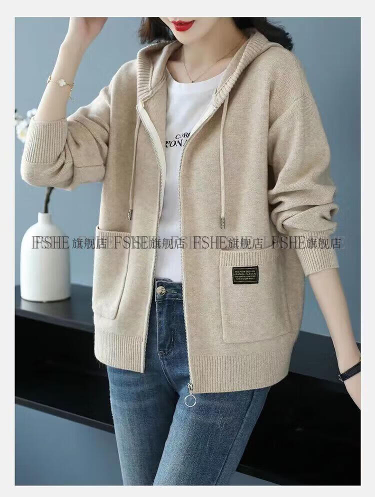 FSHE Hooded Zipper Knitted Cardigan Women's Jacket 2025 Jacket Women's Spring and Autumn New Korean Fashion Loose Thickened Top Beige L 110/120Jin Jin equals 0.5 kg