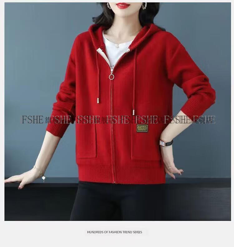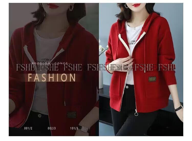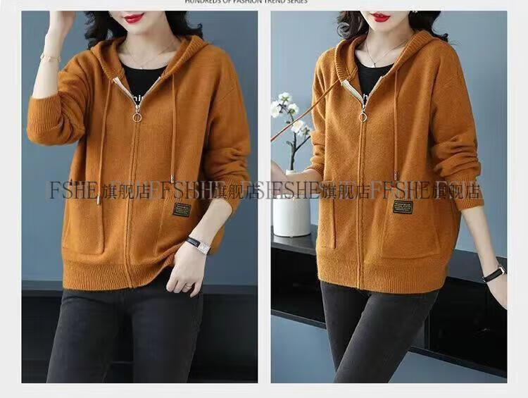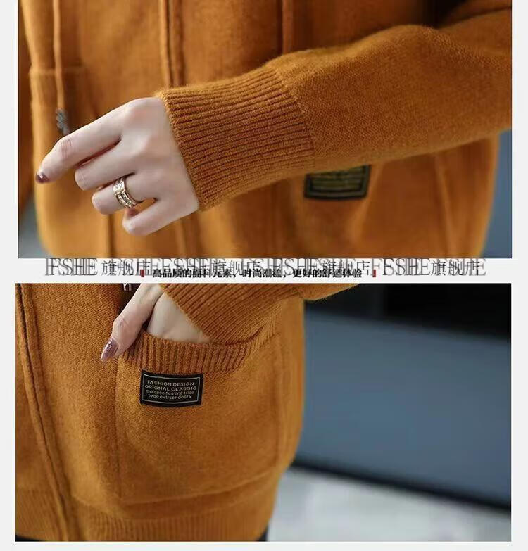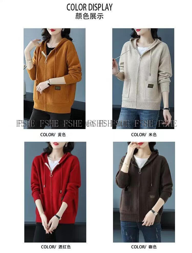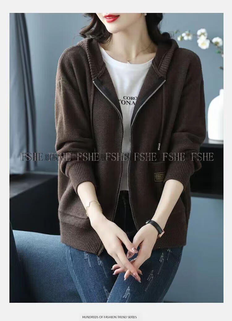 FSHE Hooded Zipper Knitted Cardigan Women's Jacket 2025 Jacket Women's Spring and Autumn New Korean Fashion Loose Thickened Top Beige L 110/120Jin Jin equals 0.5 kg