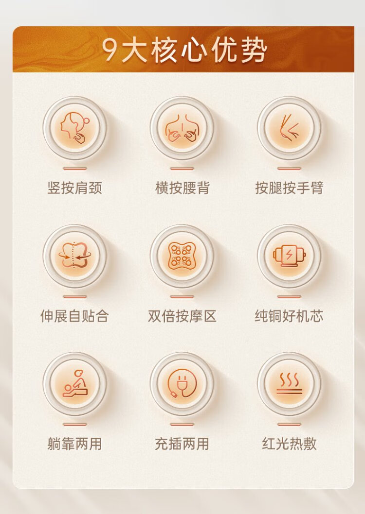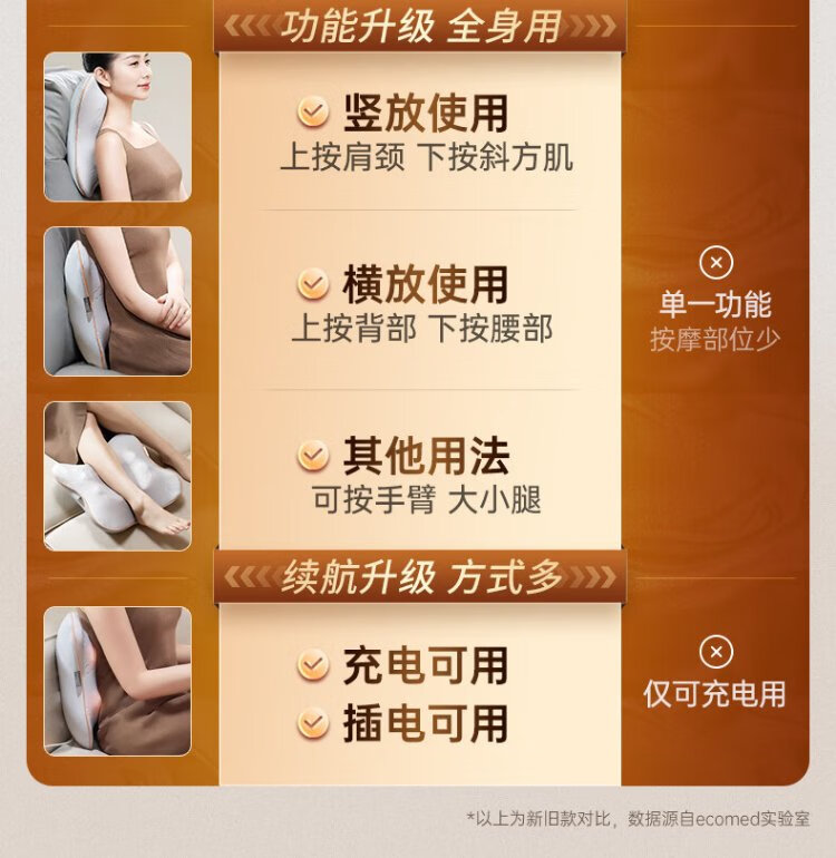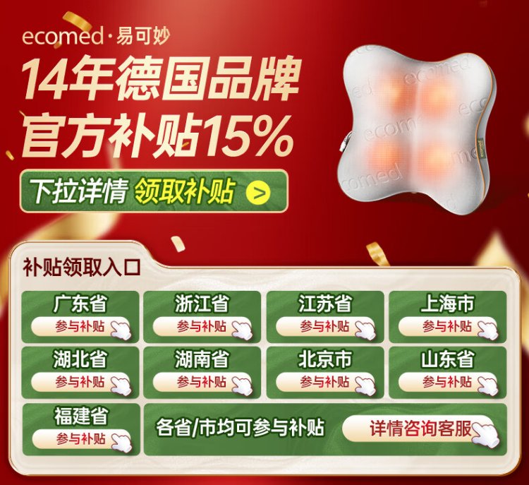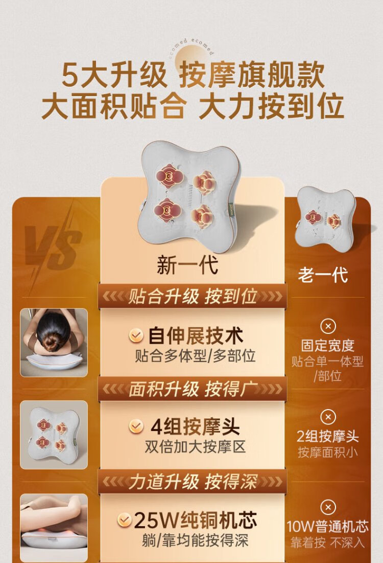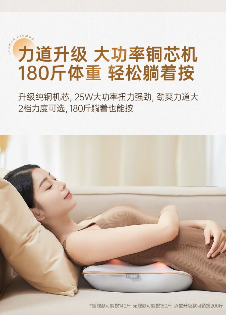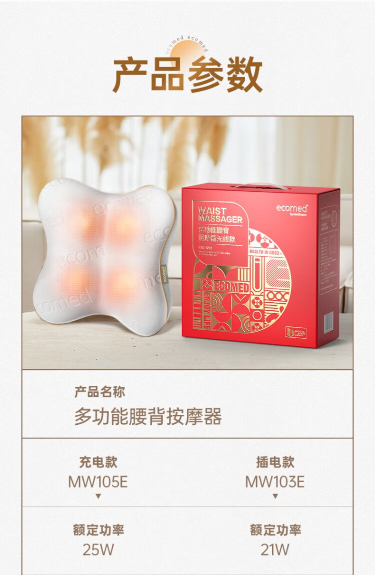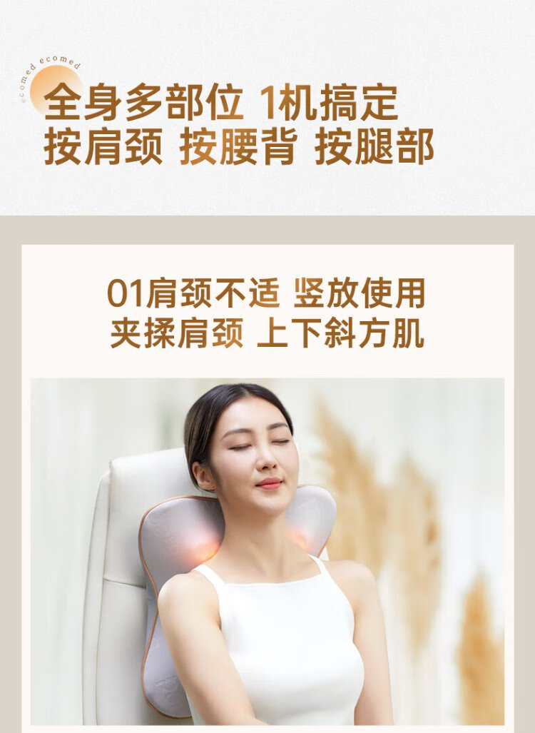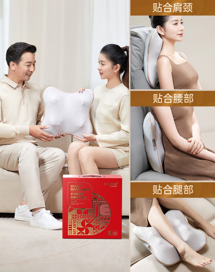 Ecomed German waist massager, cervical spine massager, kneads the neck, shoulders and trapezius muscles, massage pillow, back massage cushion, practical New Year gift for parents, elders, male and female friends, rechargeable and plug-in, self-fitting and pressing for the whole body