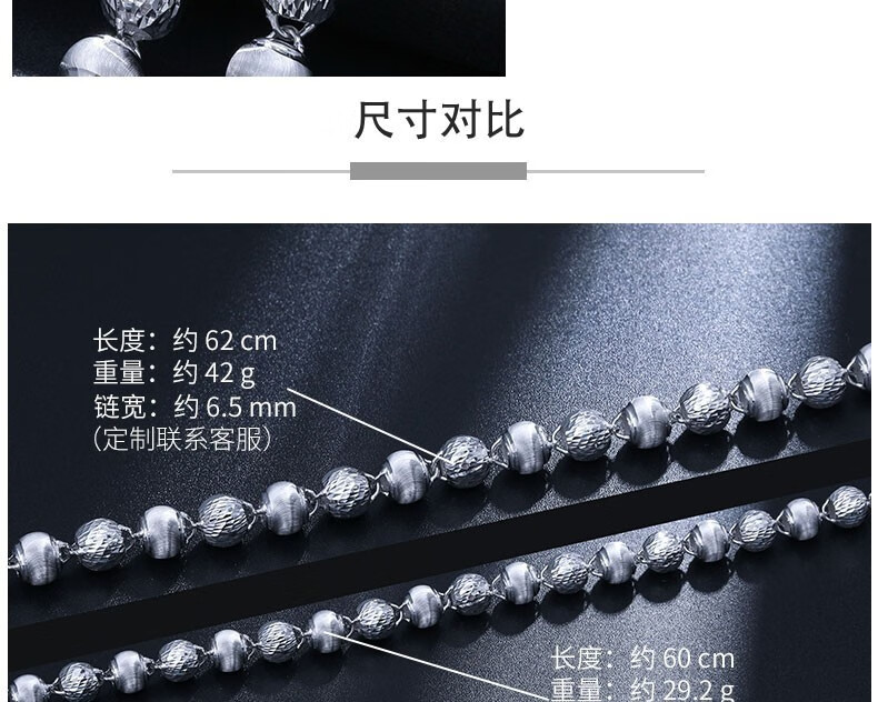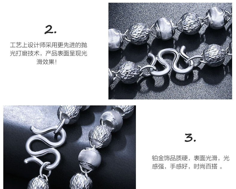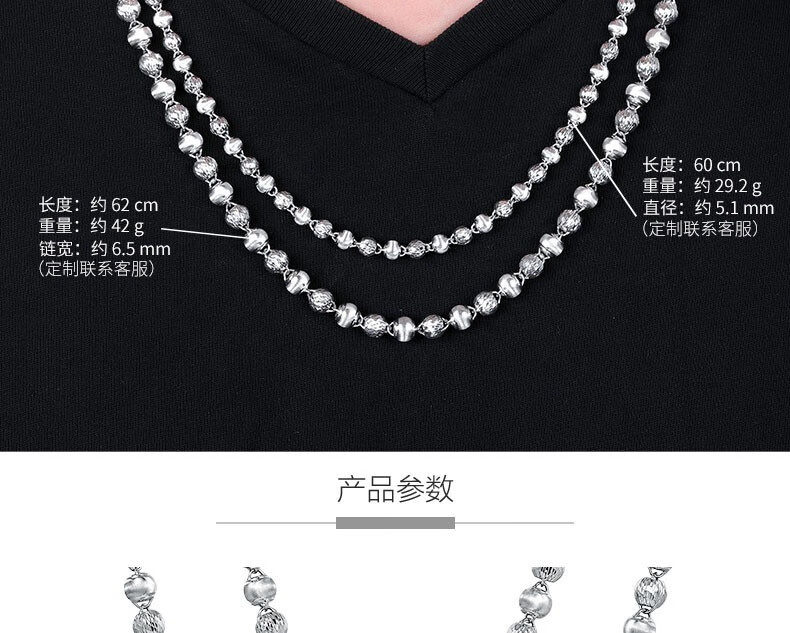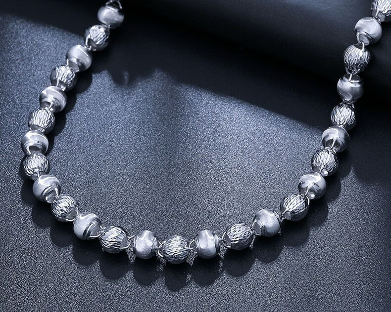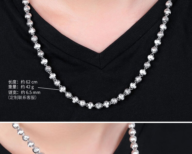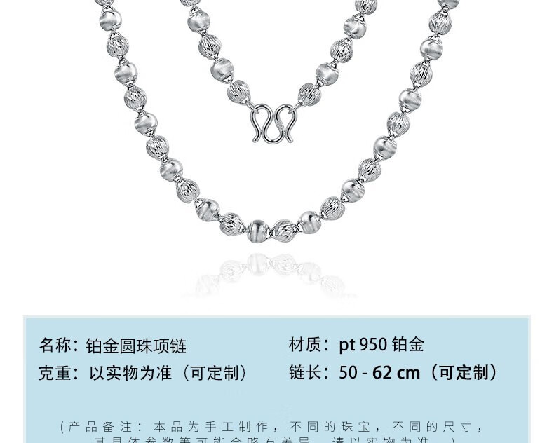 Xizhao Jewelry Platinum Necklace Laser Bead Necklace PT950 Round Pearl Bead Buddha Bead Necklace Versatile Platinum Chain Customized 80g Shipping in 1-10 working days
