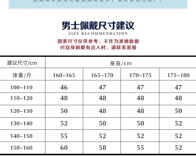 China (cm) 165 / 88-90 170 / 96-98 175 / 108-110 180 / 118-122 185 / 126-130