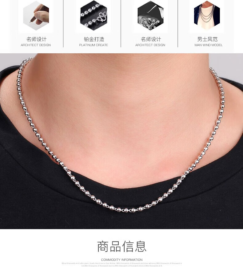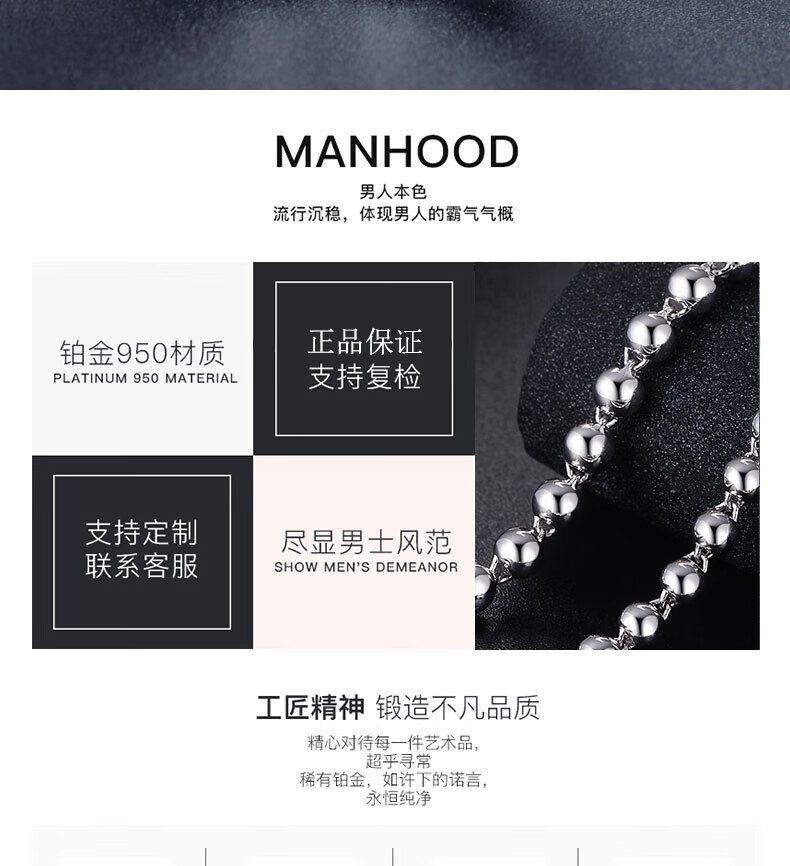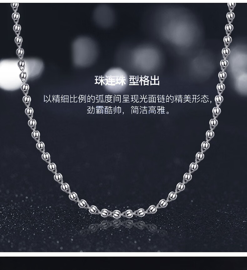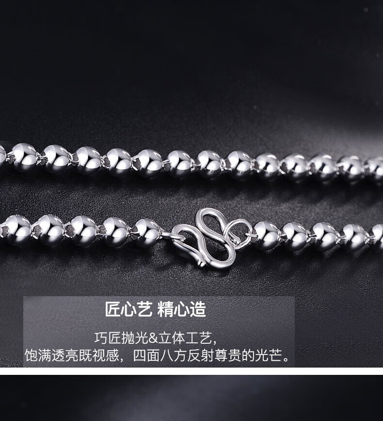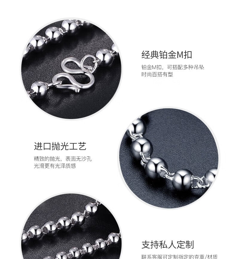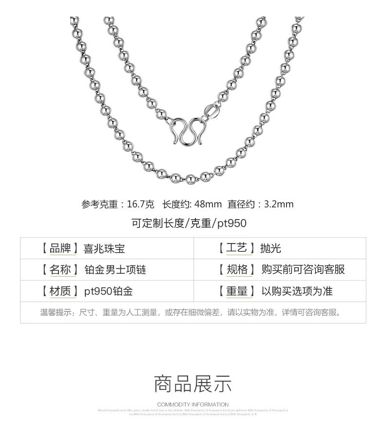 Xizhao Jewelry Platinum Necklace Light Pearl Necklace PT950 Men's Round Bead Necklace Classic Light Pearl Ball Bead Necklace 11.26g Shipping in 1-10 working days