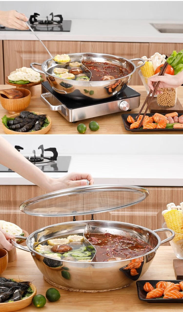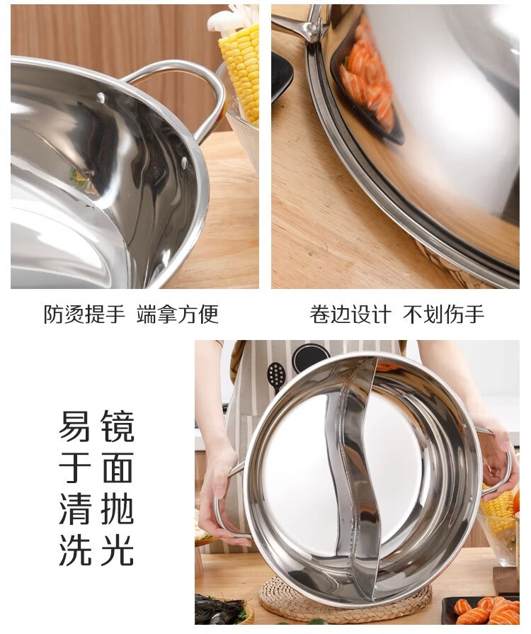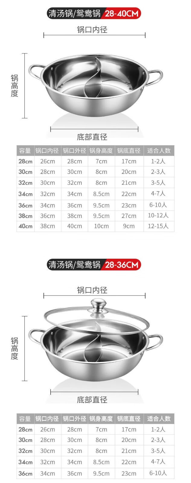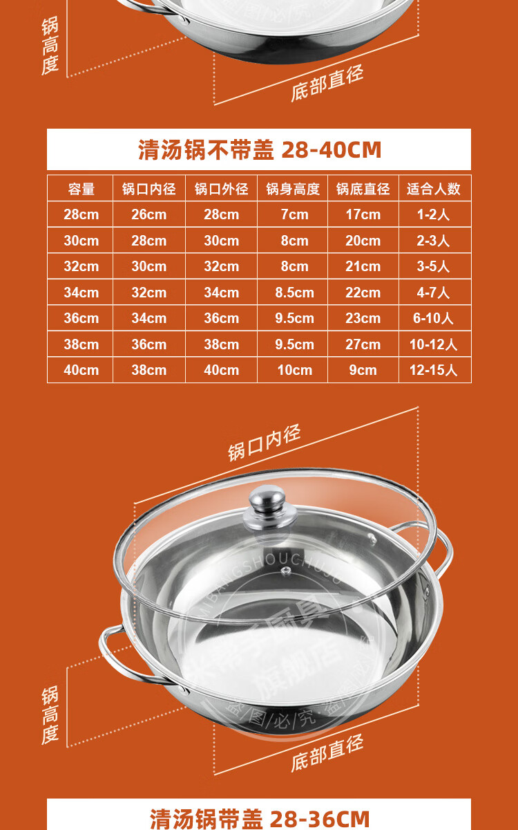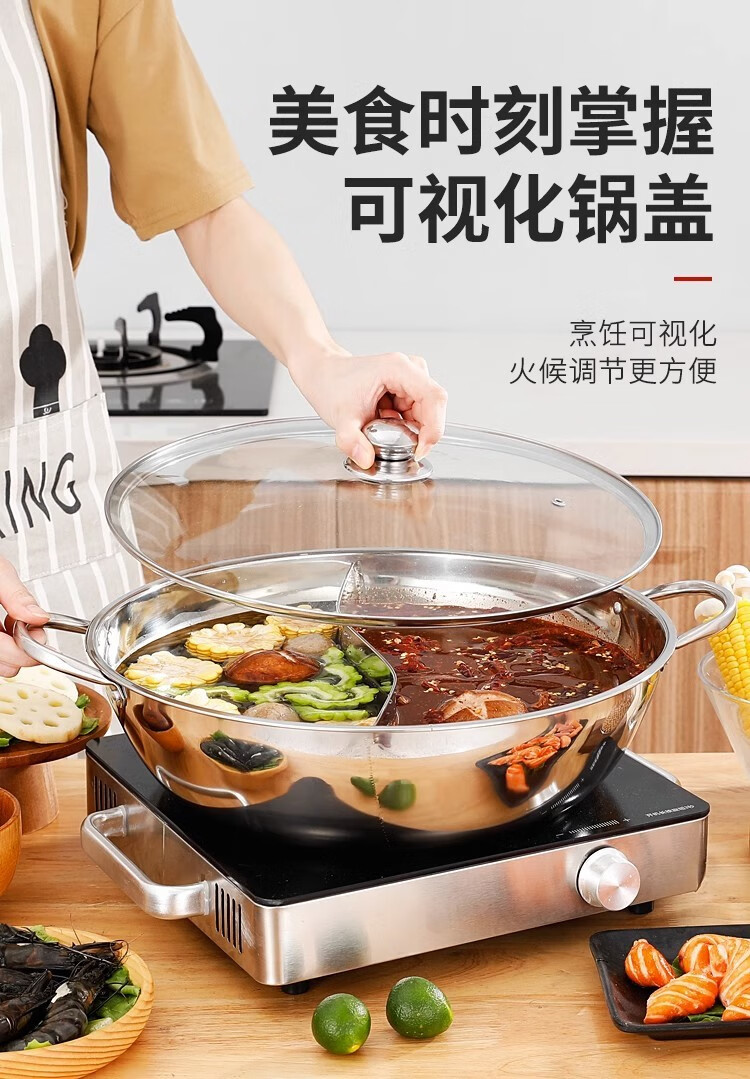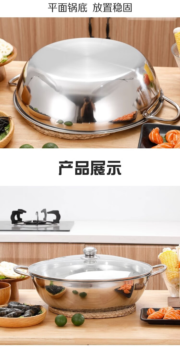 Mi Bangshou stainless steel hot pot basin household thickened flat bottom double-ear clear soup pot commercial hot pot pot induction cooker gas stove universal thickened with transparent cover suitable for 1-2 people 28cm
