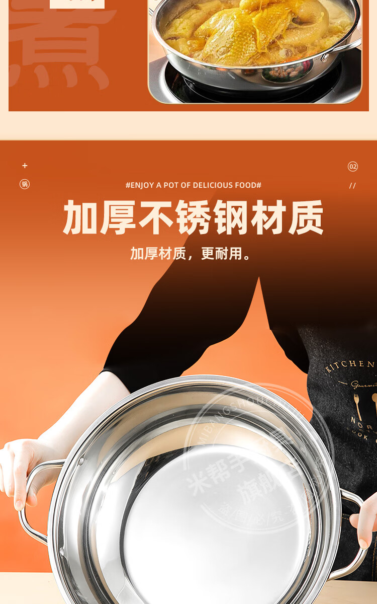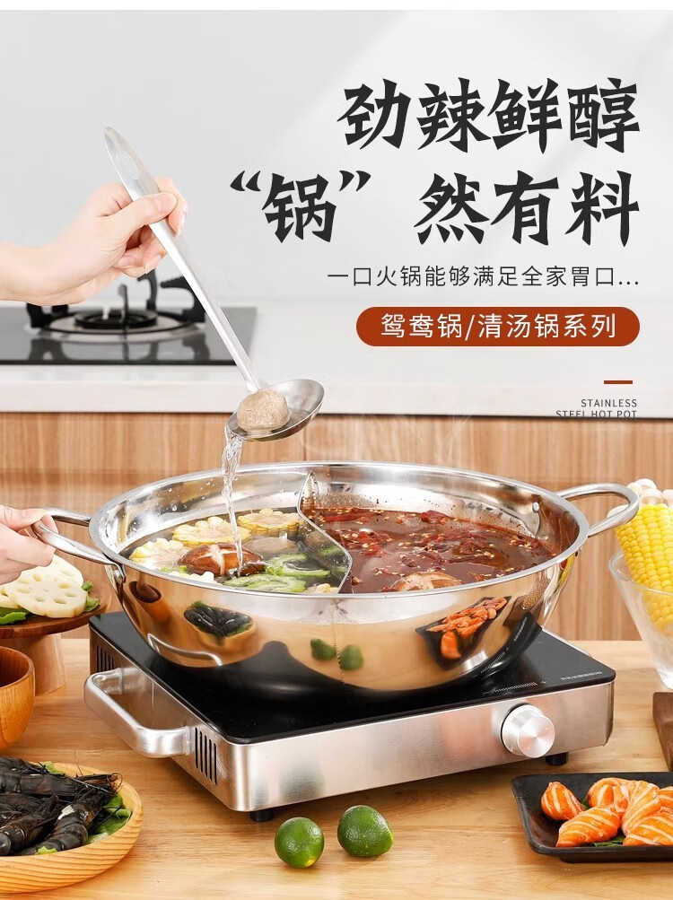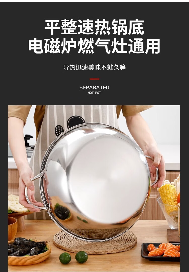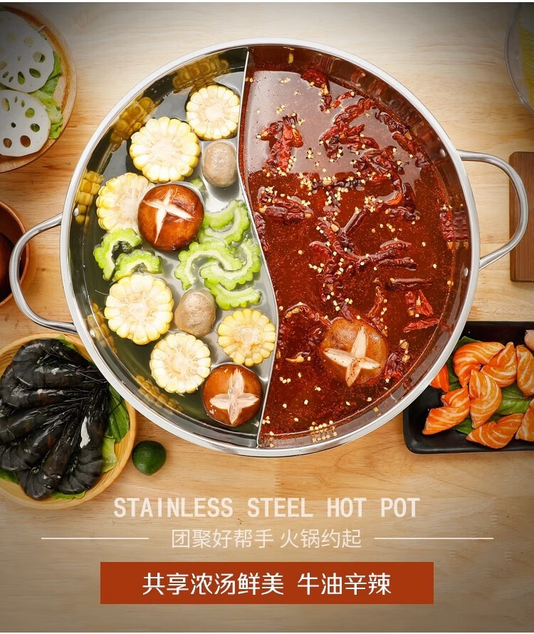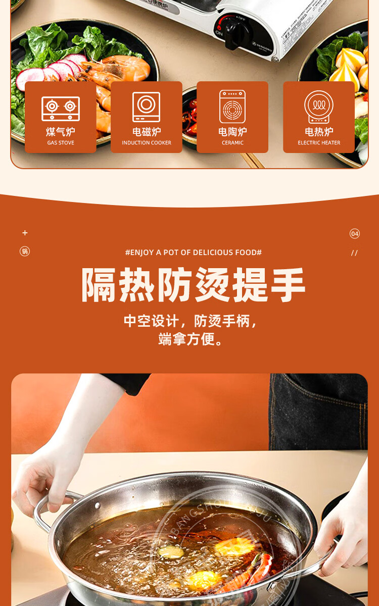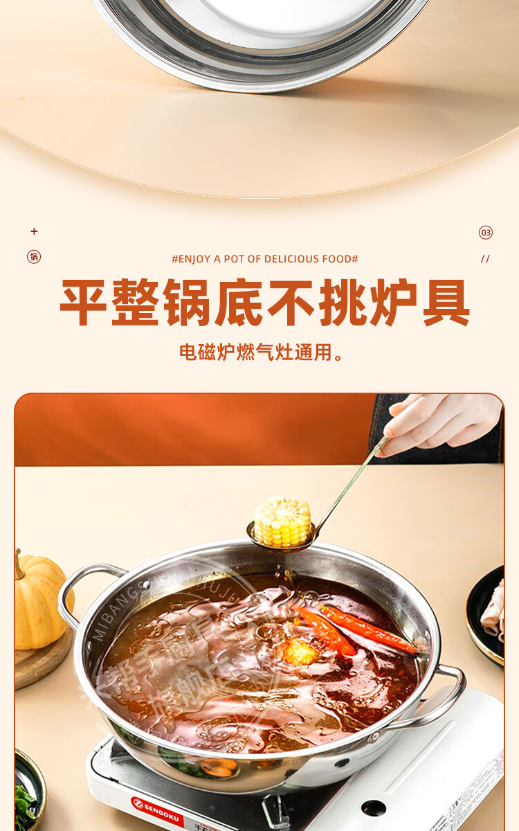 Mi Bangshou stainless steel hot pot basin household thickened flat bottom double-ear clear soup pot commercial hot pot pot induction cooker gas stove universal thickened with transparent cover suitable for 1-2 people 28cm