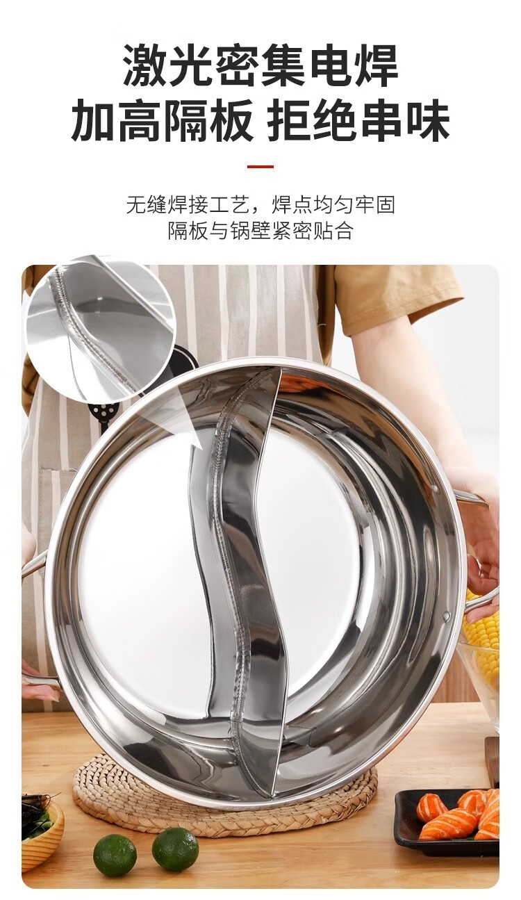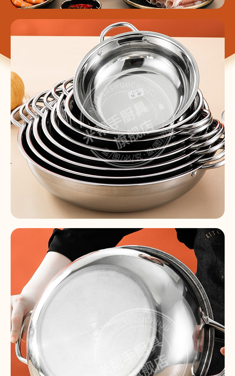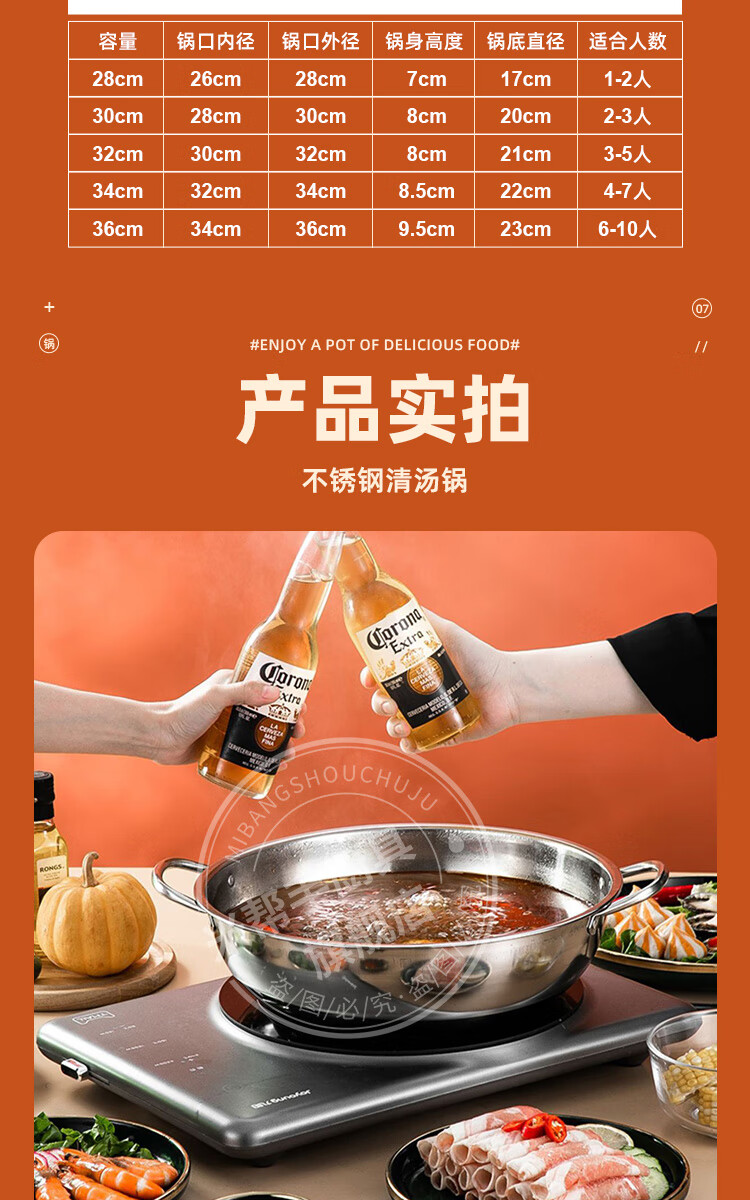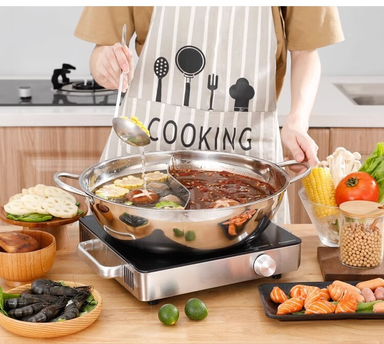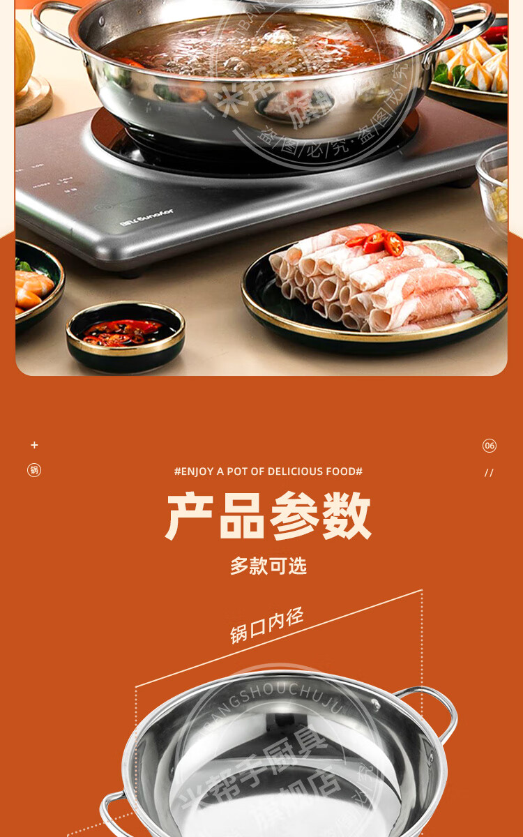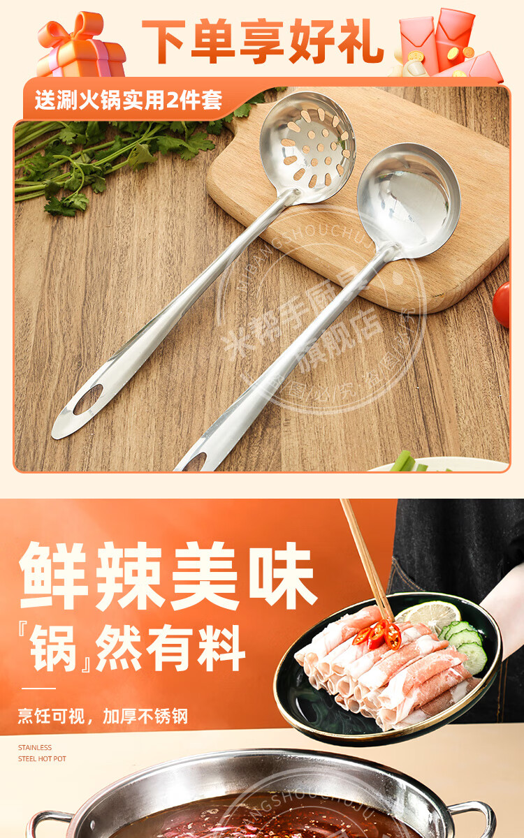 Mi Bangshou stainless steel hot pot basin household thickened flat bottom double-ear clear soup pot commercial hot pot pot induction cooker gas stove universal thickened with transparent cover suitable for 1-2 people 28cm