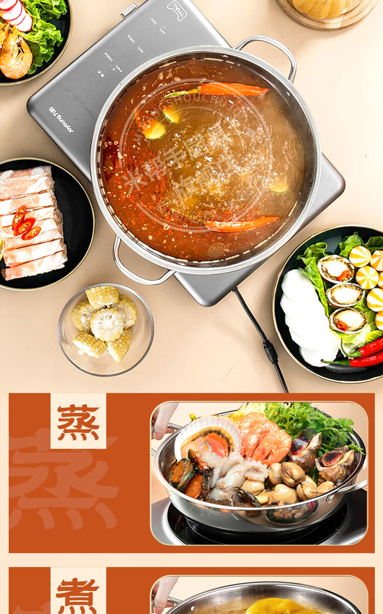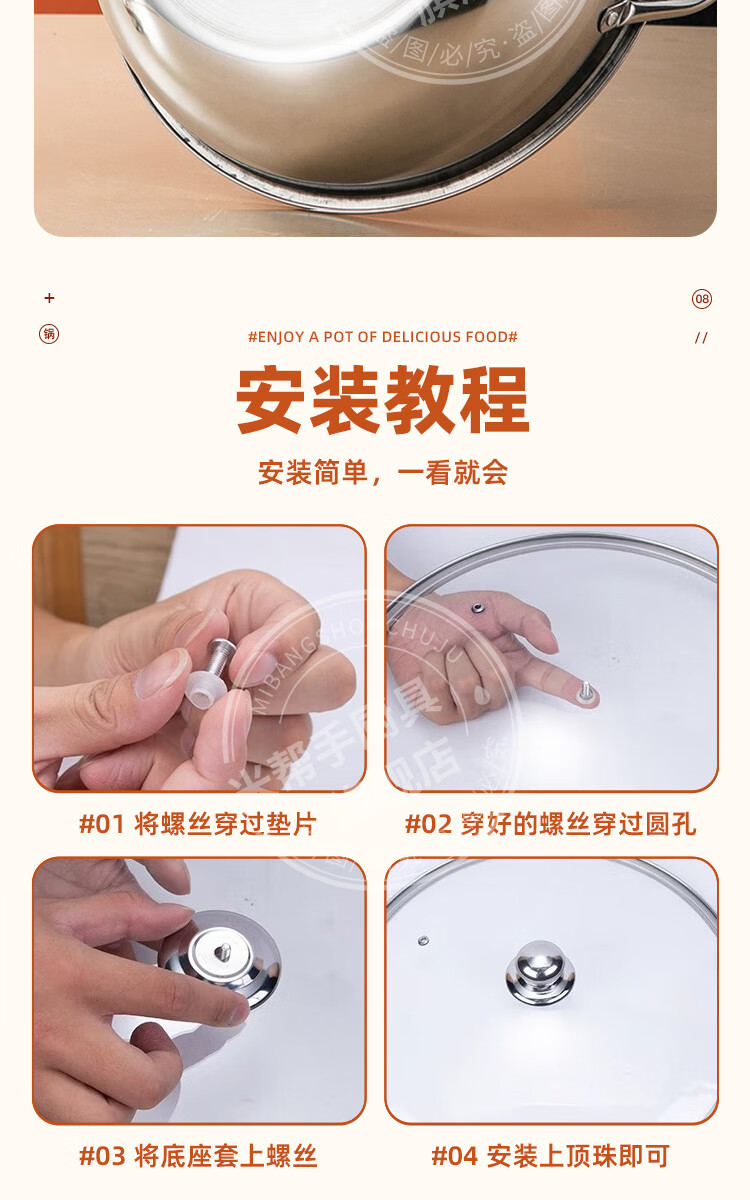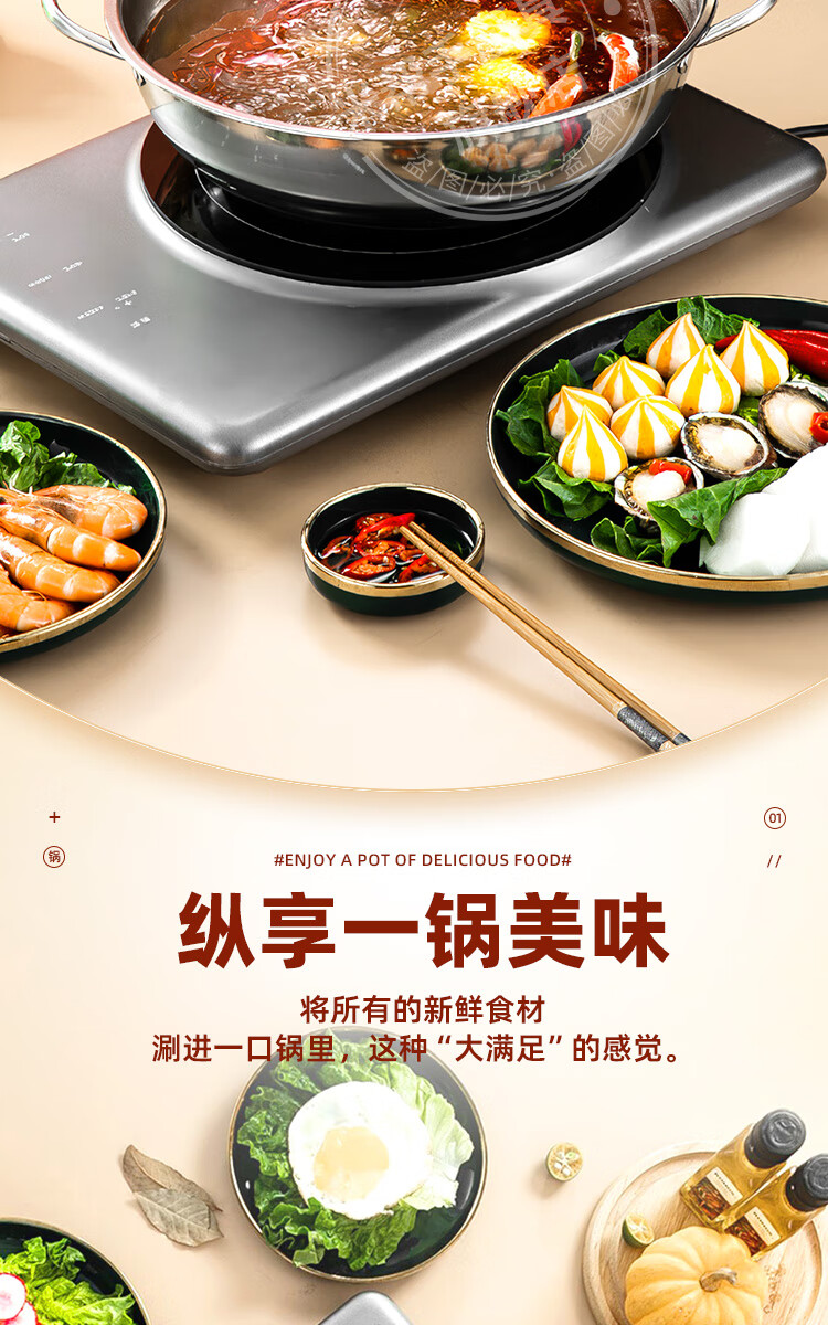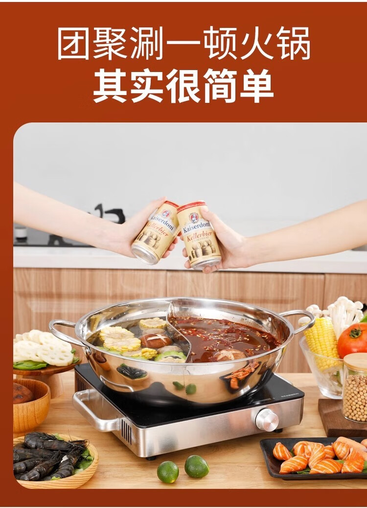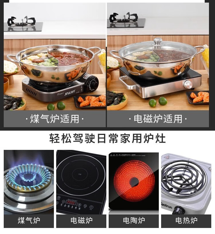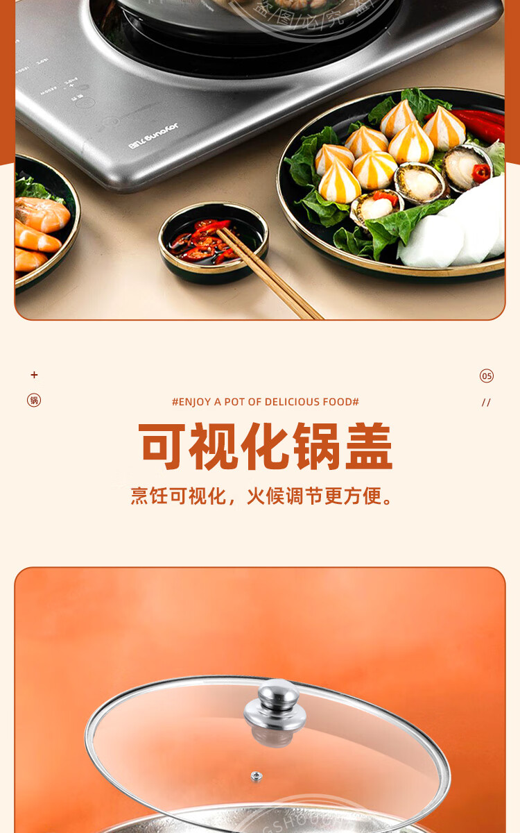 Mi Bangshou stainless steel hot pot basin household thickened flat bottom double-ear clear soup pot commercial hot pot pot induction cooker gas stove universal thickened with transparent cover suitable for 1-2 people 28cm