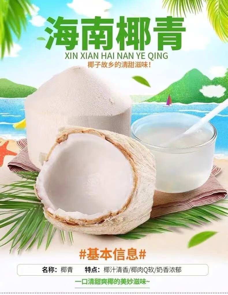 Selected large fruits, freshly picked Hainan coconut, green coconut, peeled pregnant women, goat fruit, water coconut, 4 pack