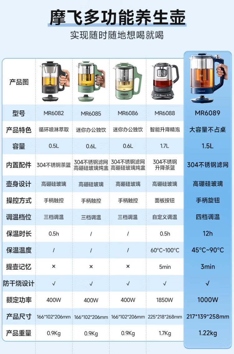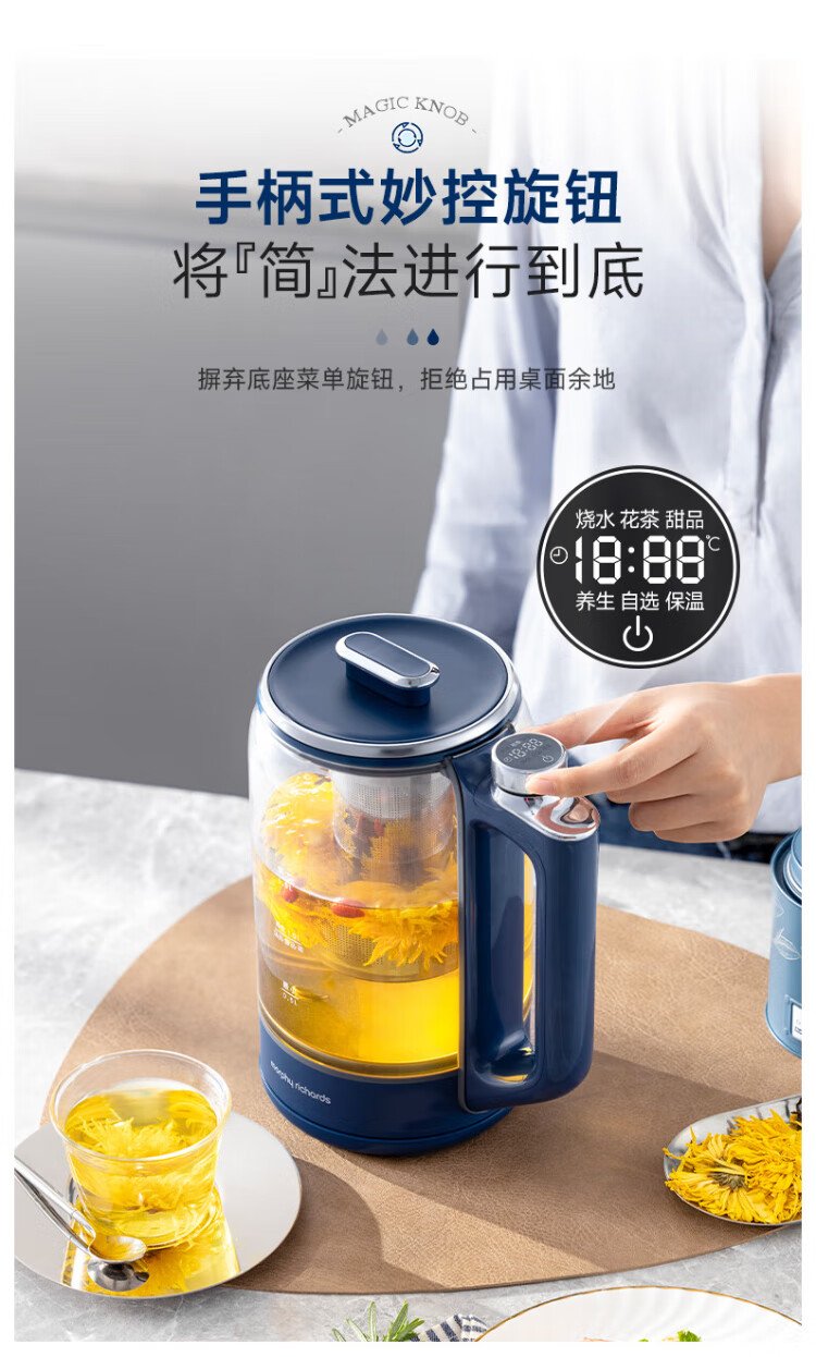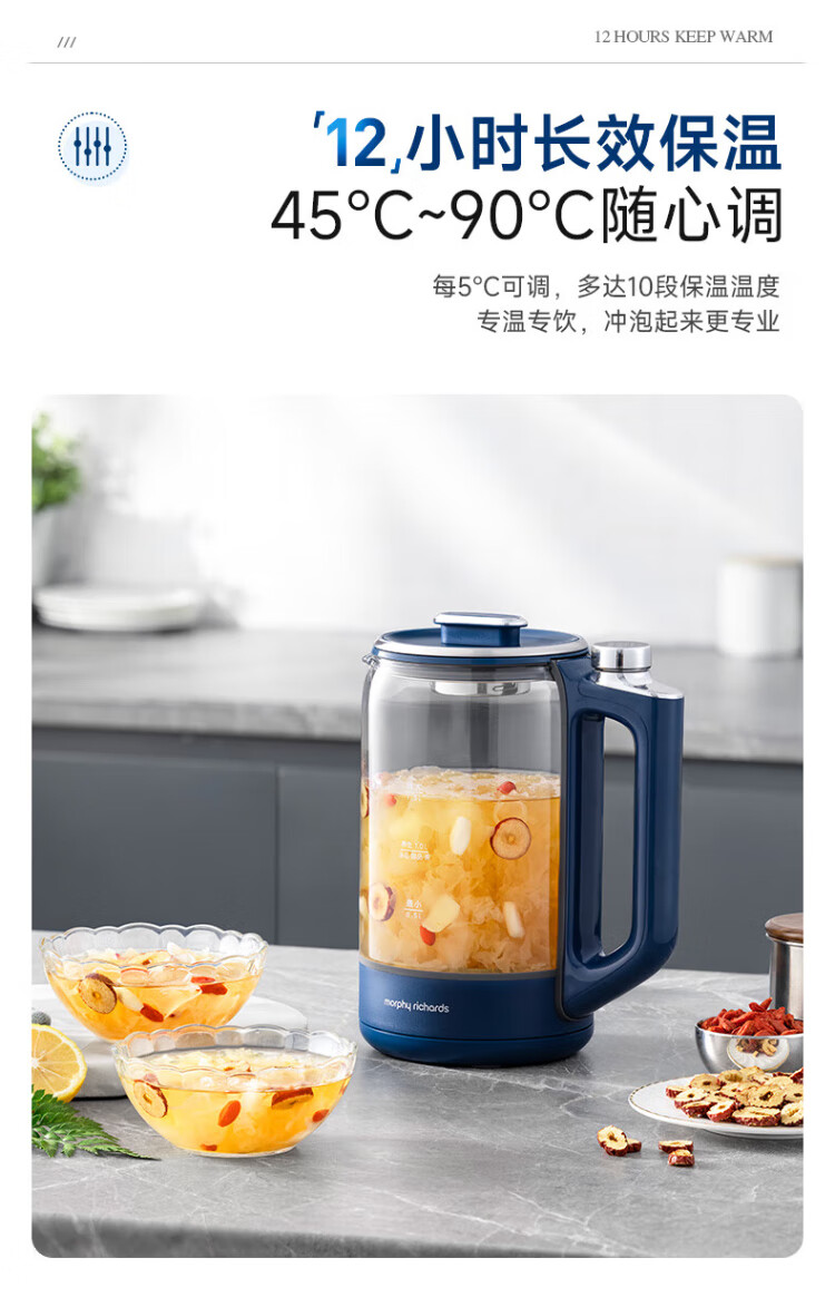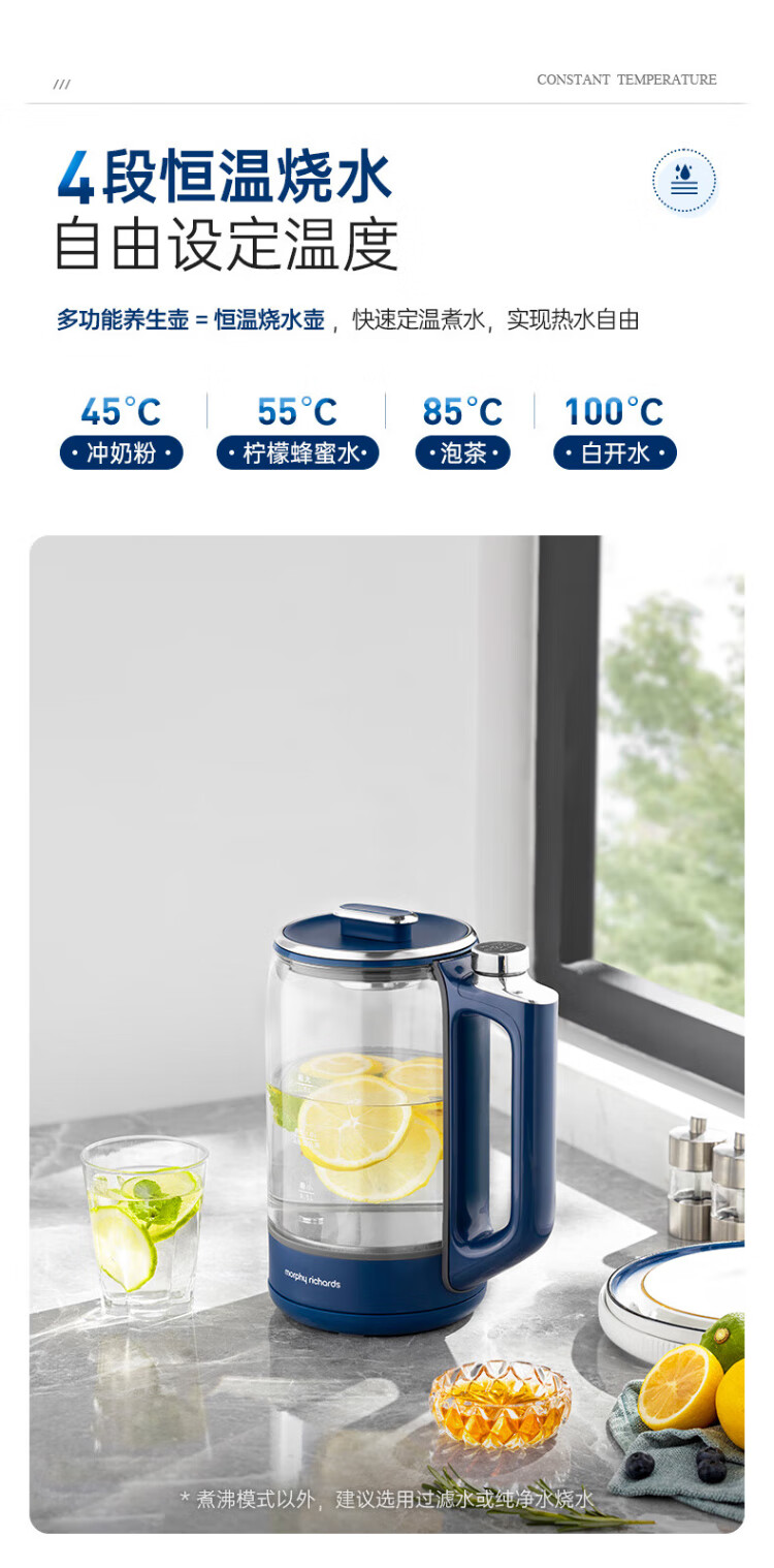 Mofei Electric Health Kettle Constant Temperature Kettle 1.5L Tea Kettle Tea Maker Office Flower Tea Kettle Glass Kettle Insulation All-in-one Home Electric Kettle with Stainless Steel Filter MR6089 Light Luxury Blue 1.5L