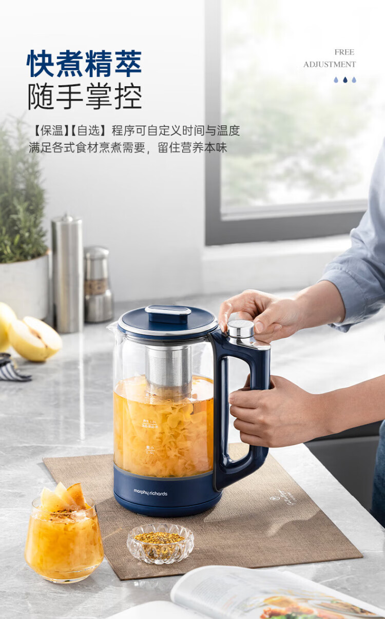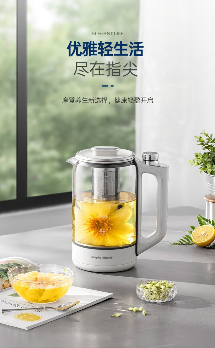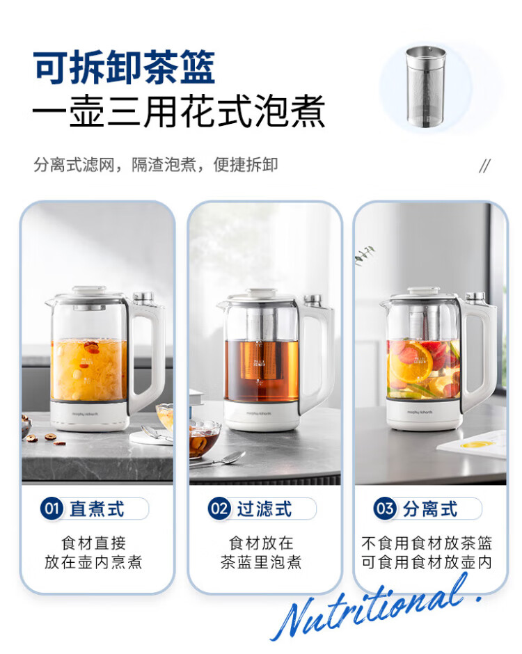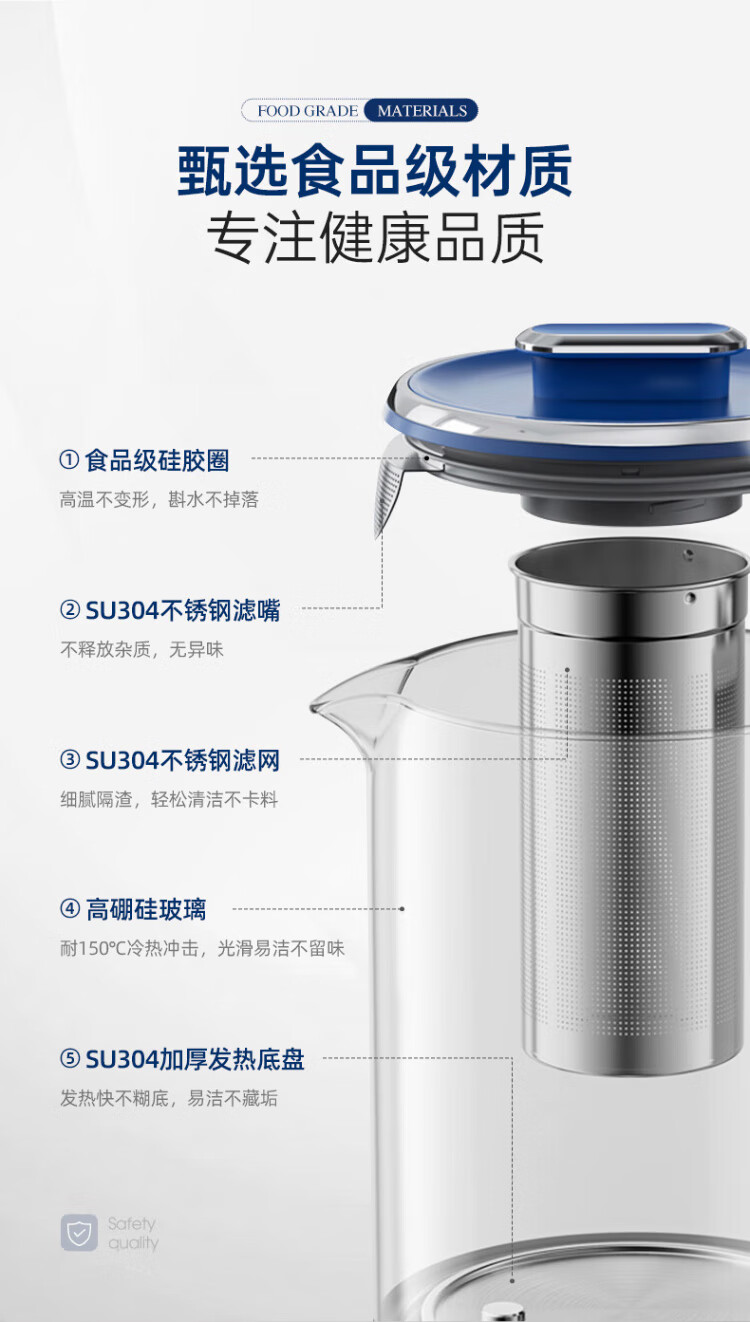 Mofei Electric Health Kettle Constant Temperature Kettle 1.5L Tea Kettle Tea Maker Office Flower Tea Kettle Glass Kettle Insulation All-in-one Home Electric Kettle with Stainless Steel Filter MR6089 Light Luxury Blue 1.5L