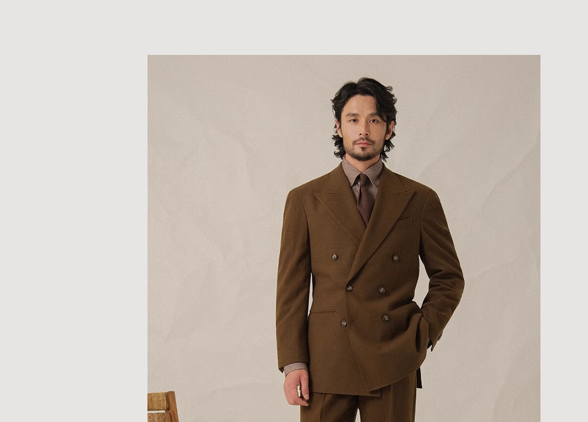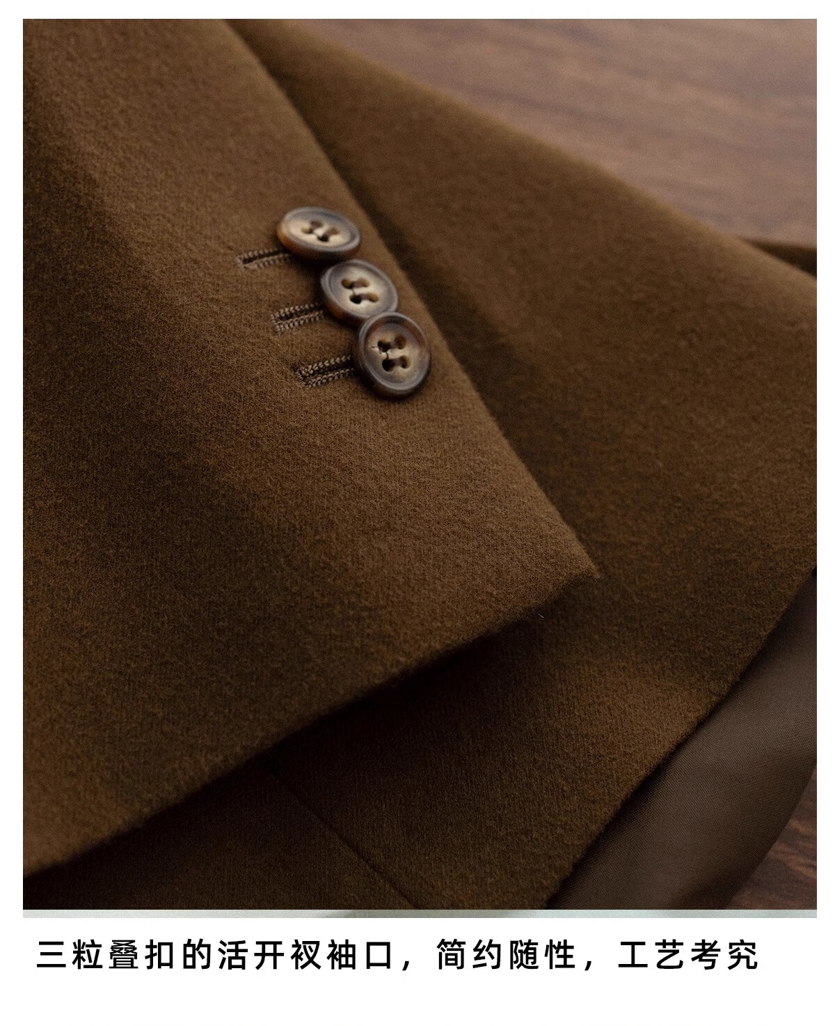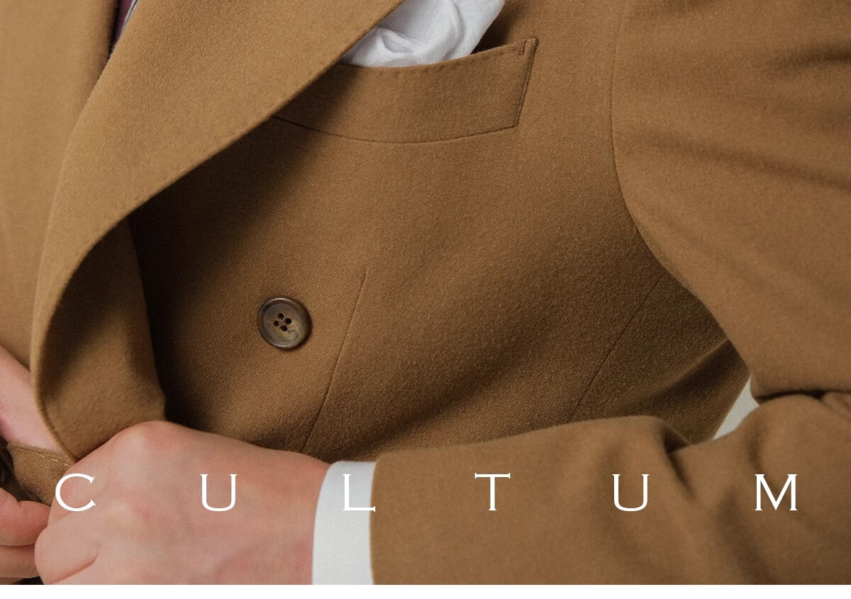 CULTUM wool blended autumn Italian-style lapel double-breasted suit suit men's high-end business casual formal two-piece suit tan two-piece suit L (52B)