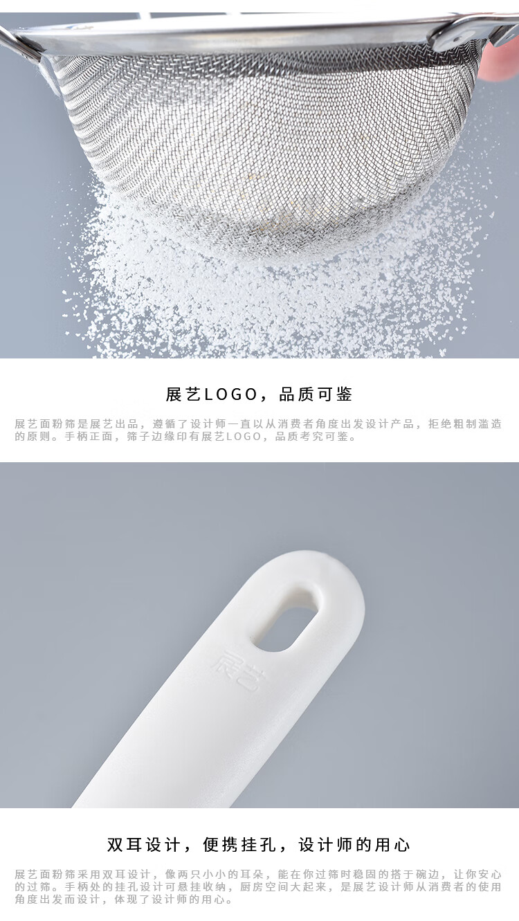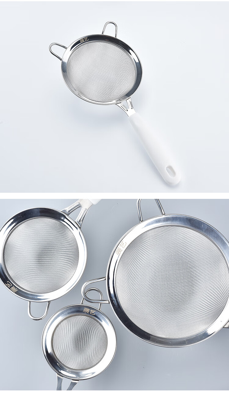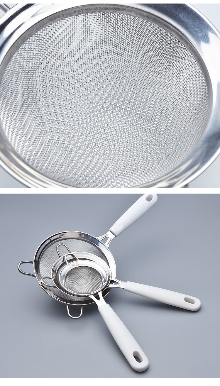 Zhanyi 304 stainless steel hand-held 30-mesh flour sieve, sugar powder sieve, moon cake, biscuits, pastry baking tools, 14cm flour sieve