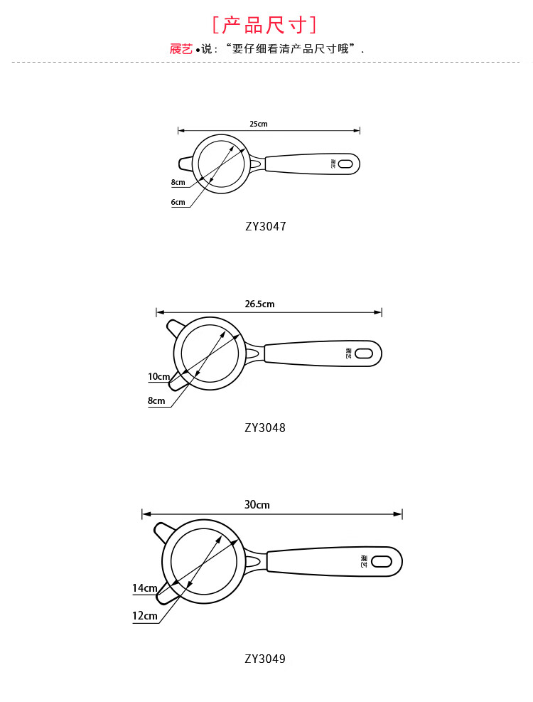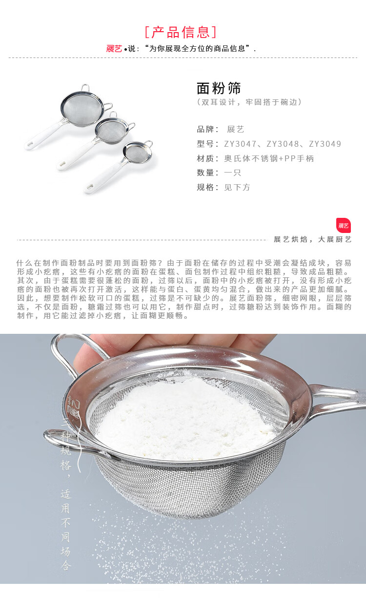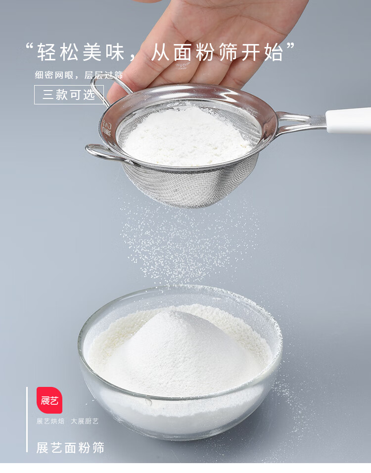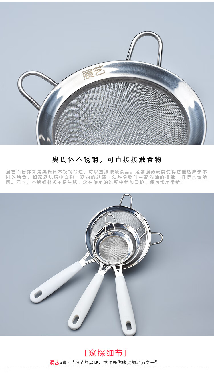 Zhanyi 304 stainless steel hand-held 30-mesh flour sieve, sugar powder sieve, moon cake, biscuits, pastry baking tools, 14cm flour sieve
