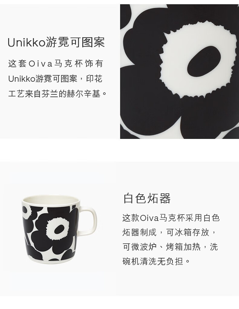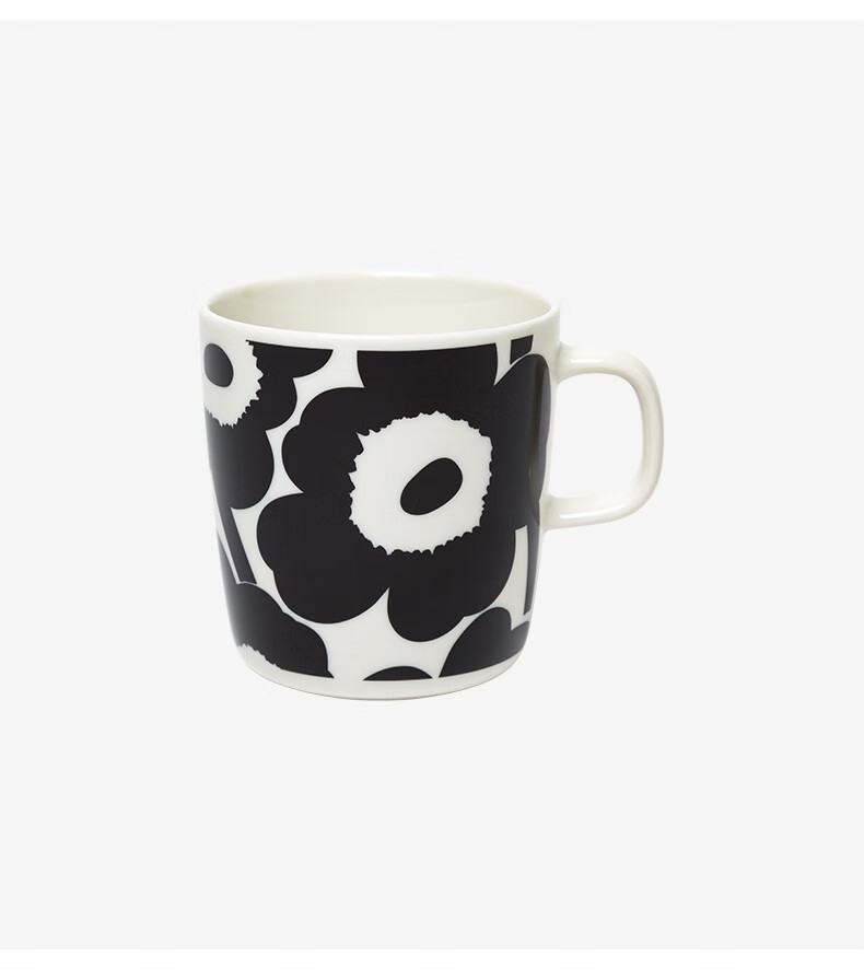 Marimekko New Year's gift Unikko You Ni can print Nordic Finnish mug 400ml home dining porcelain black, white (400ml)