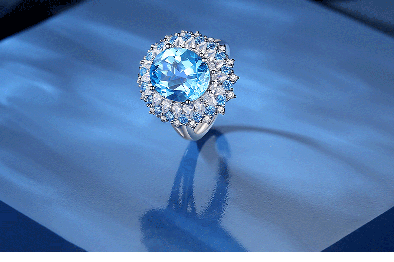 Duofei Heart of the Ocean Topaz Ring Women's Light Luxury Fashion Jewelry Birthday Gift Souvenir for Girlfriend or Wife Heart of the Ocean Blue Topaz Ring Can Be Engraved