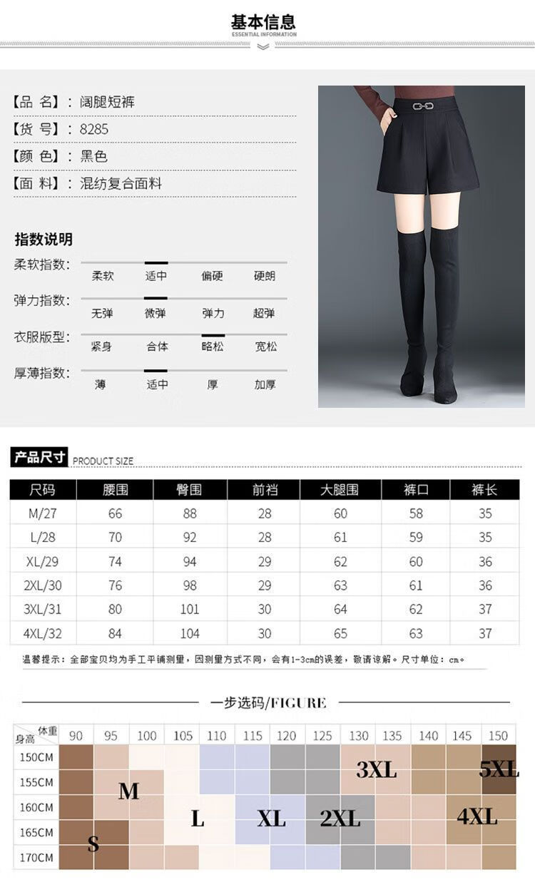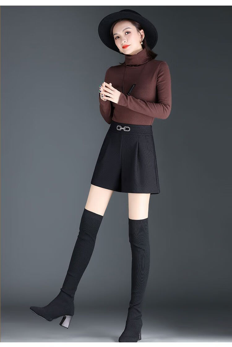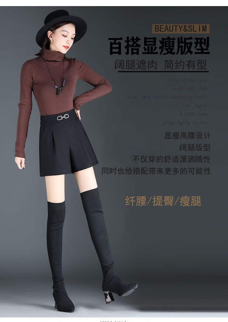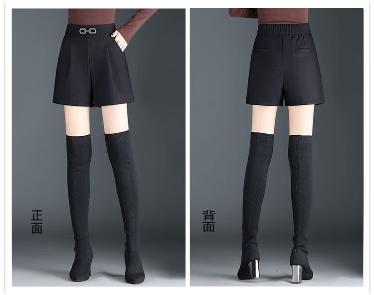 Pierre Cardin elastic waist shorts for women, loose and slim, 2025 autumn and winter new high waist 200 Jin equal to 0.5 kg, fashionable casual boots and pants for outer wear, black XL 115-125 Jin equal to 0.5 kg