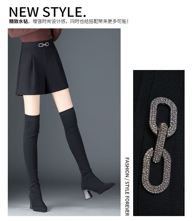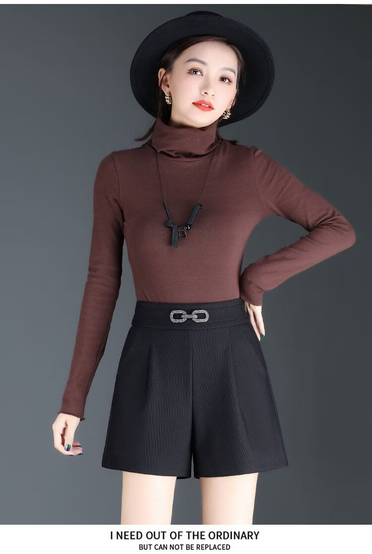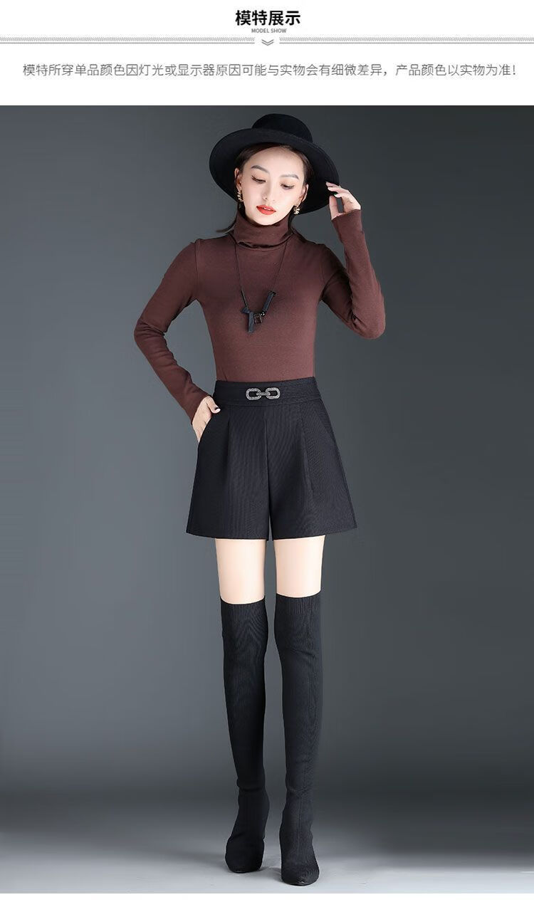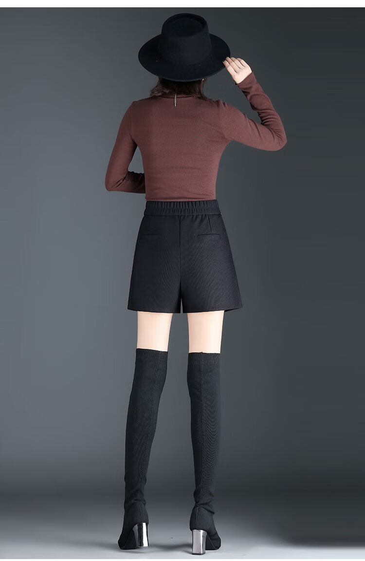 Pierre Cardin elastic waist shorts for women, loose and slim, 2025 autumn and winter new high waist 200 Jin equal to 0.5 kg, fashionable casual boots and pants for outer wear, black XL 115-125 Jin equal to 0.5 kg