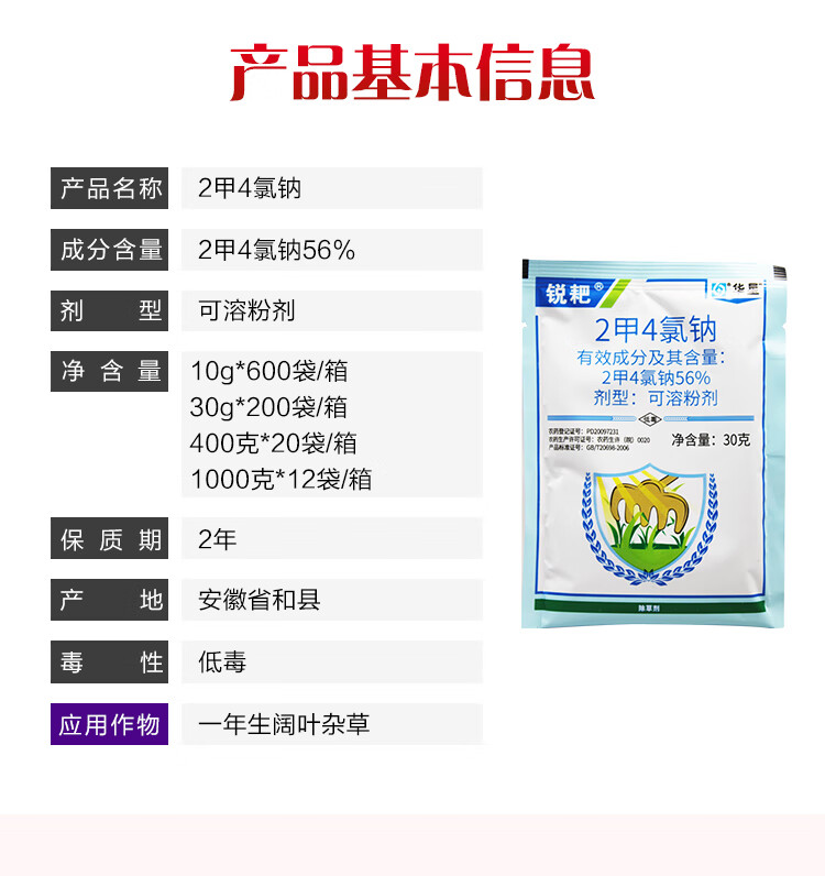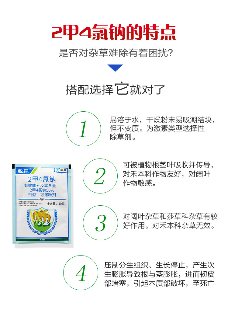 Huaxing dimethyl tetrachloride sodium herbicide 2-methyl 4-chlorine sodium herbicide wheat field broad-leaf annual grass pesticide herbicide 400g