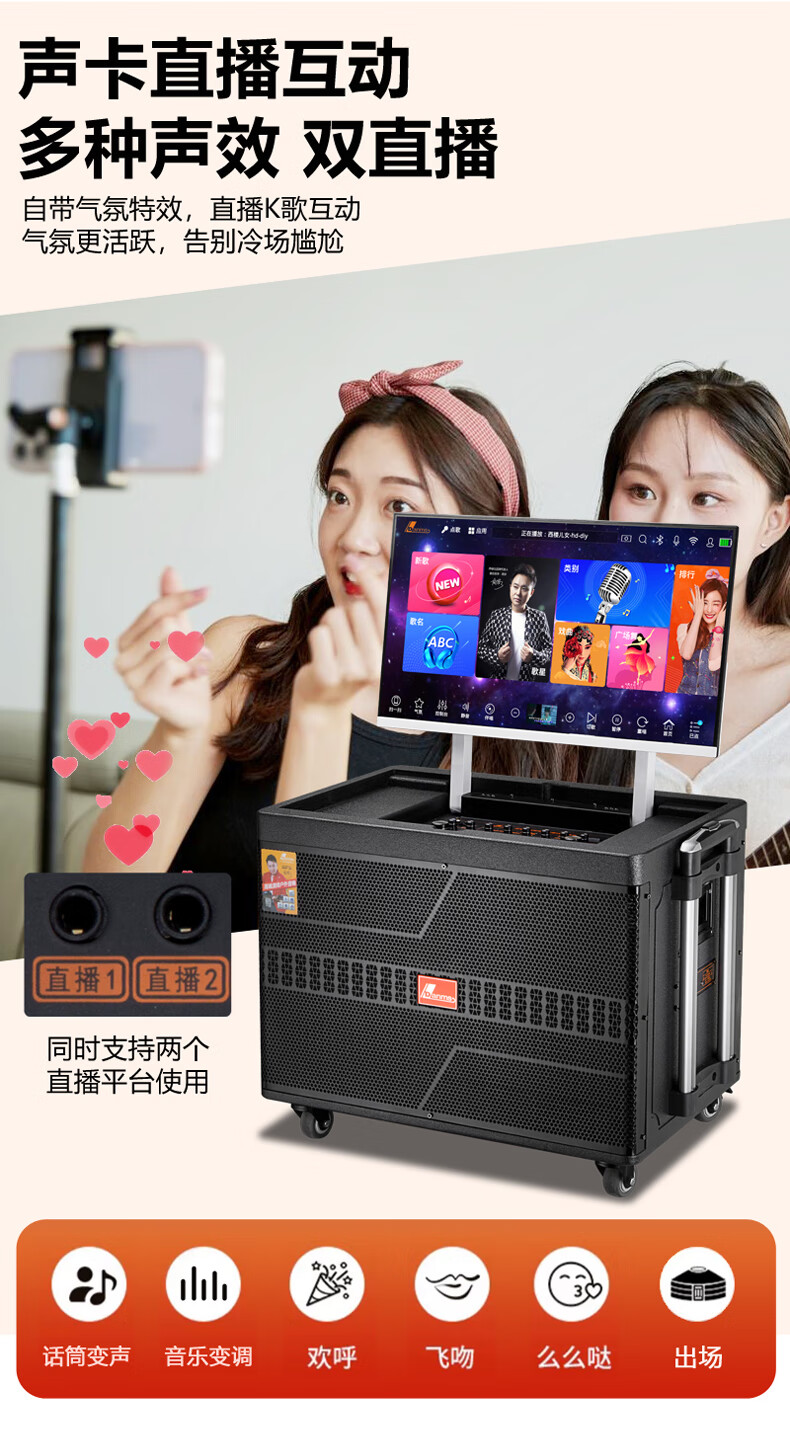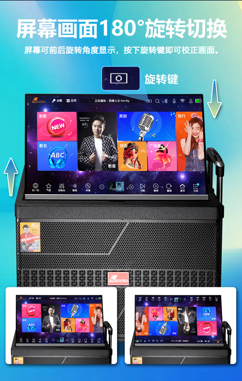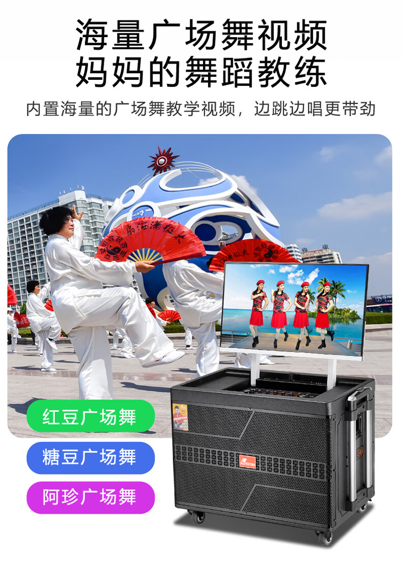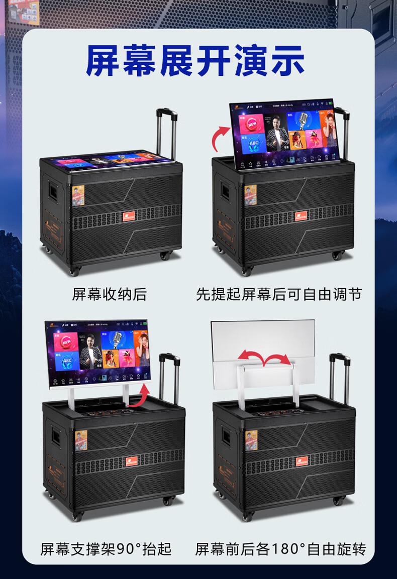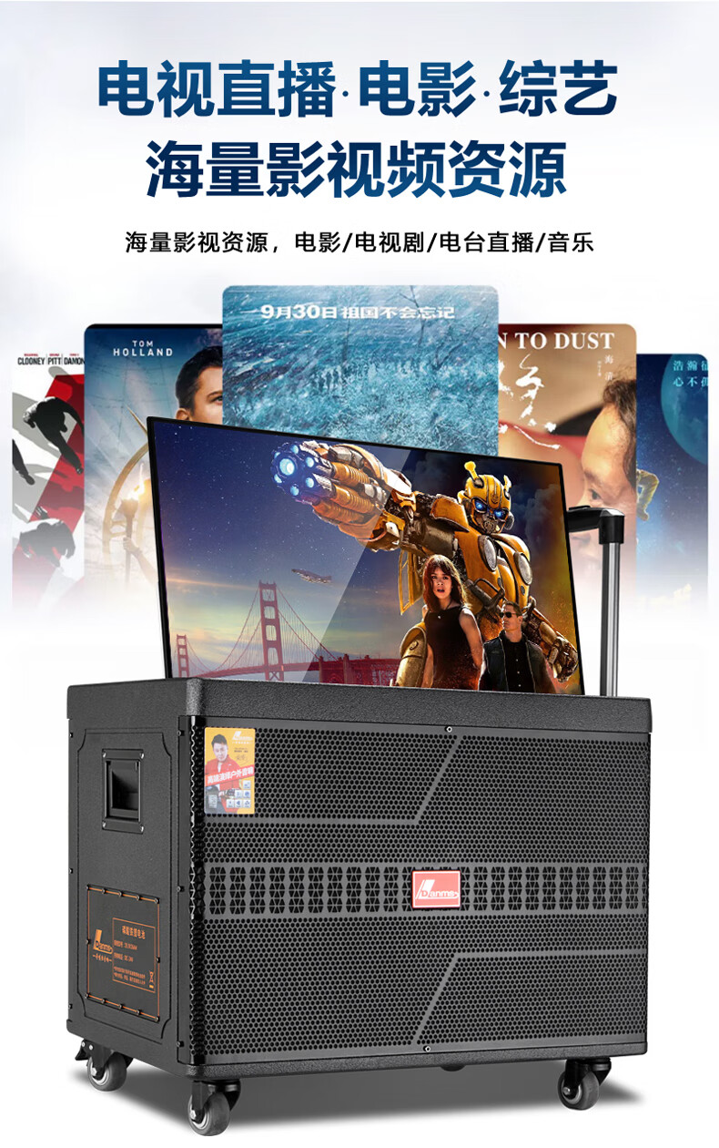 Danmark smart audio with display, heavy bass, outdoor mobile live broadcast karaoke, dedicated with sound card, high power, professional square dance, home Bluetooth wireless trolley speaker set H-8800S (24-inch full lamination screen + 500G memory)