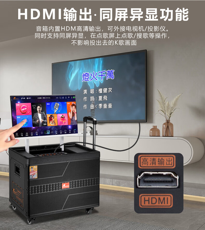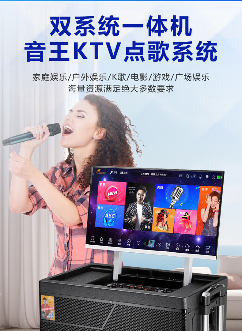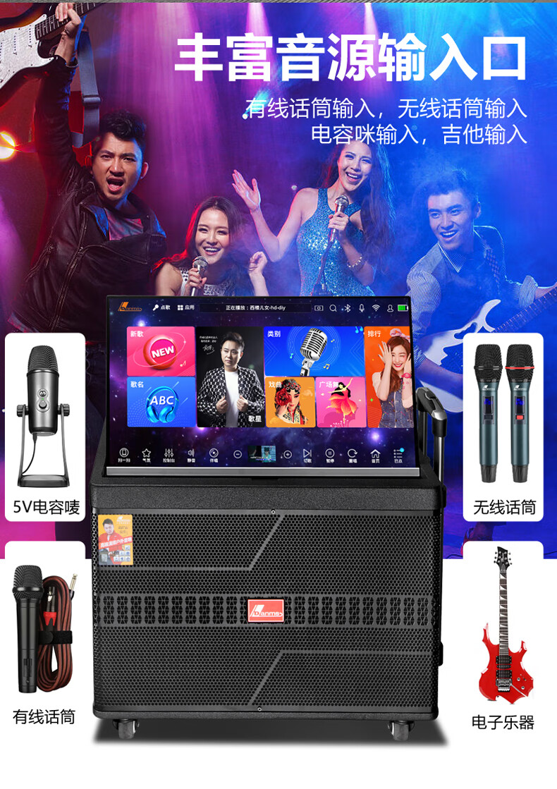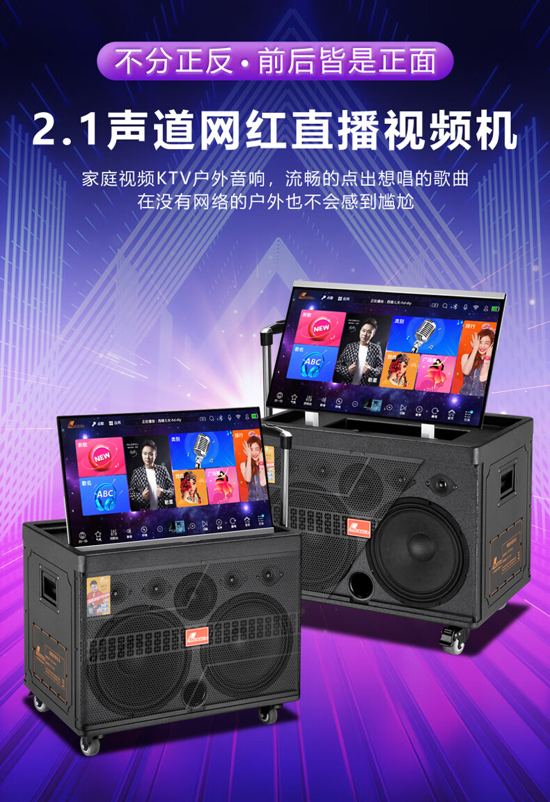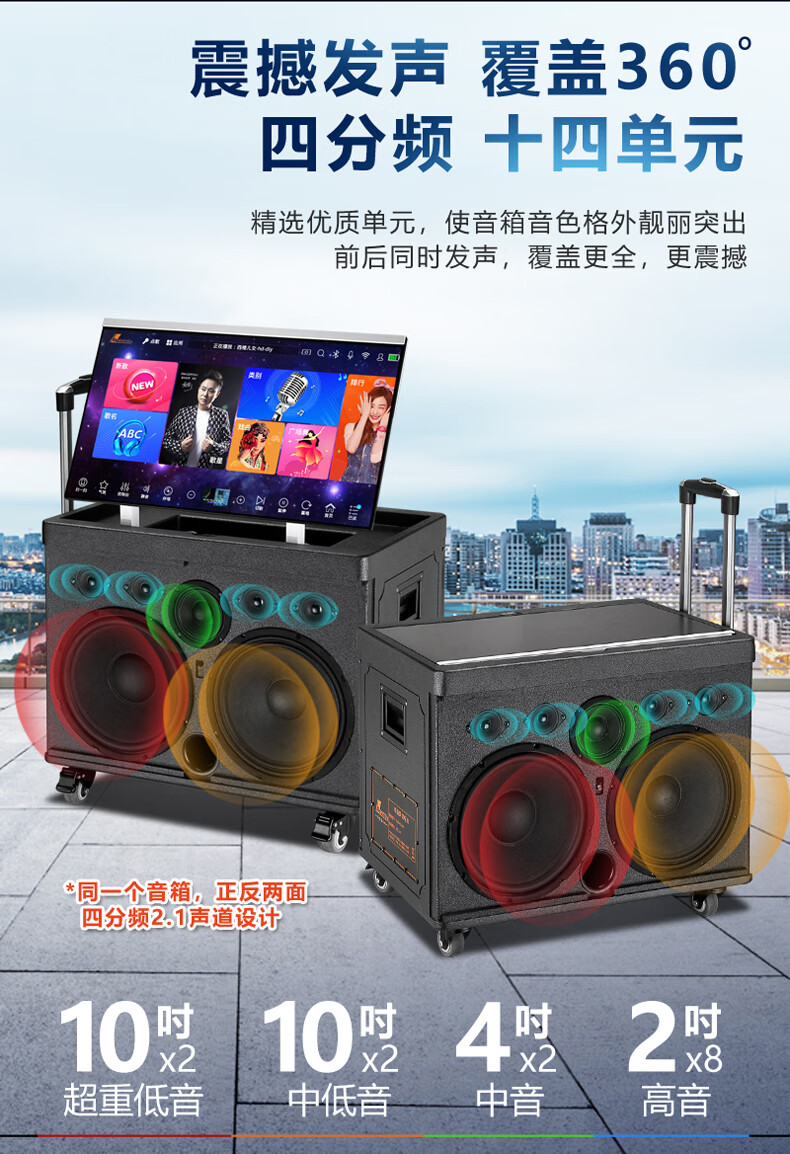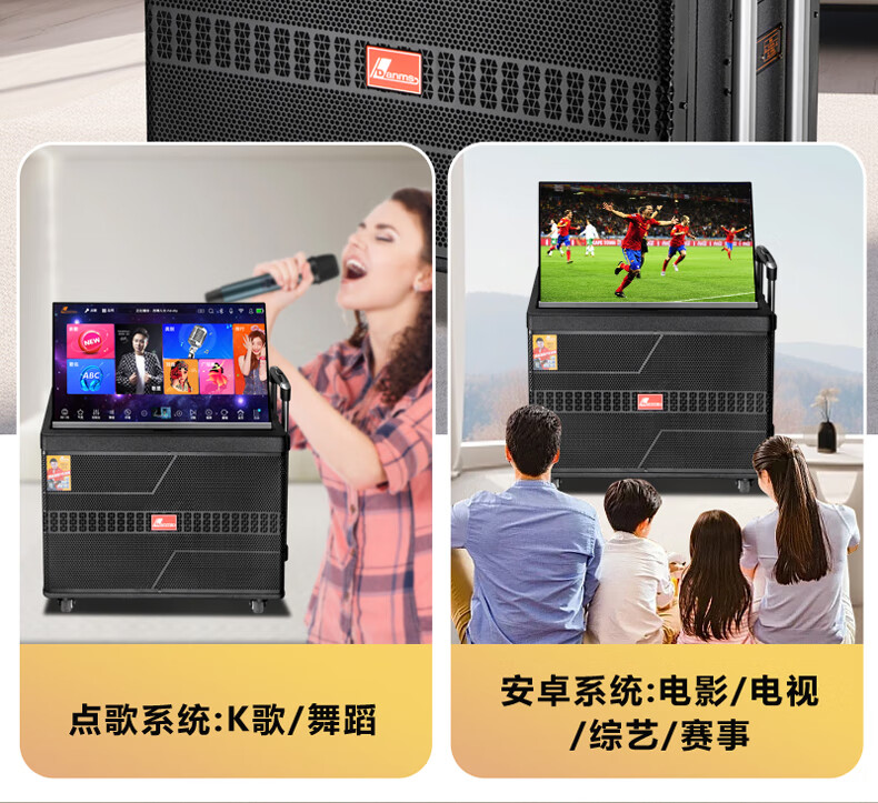 Danmark smart audio with display, heavy bass, outdoor mobile live broadcast karaoke, dedicated with sound card, high power, professional square dance, home Bluetooth wireless trolley speaker set H-8800S (24-inch full lamination screen + 500G memory)