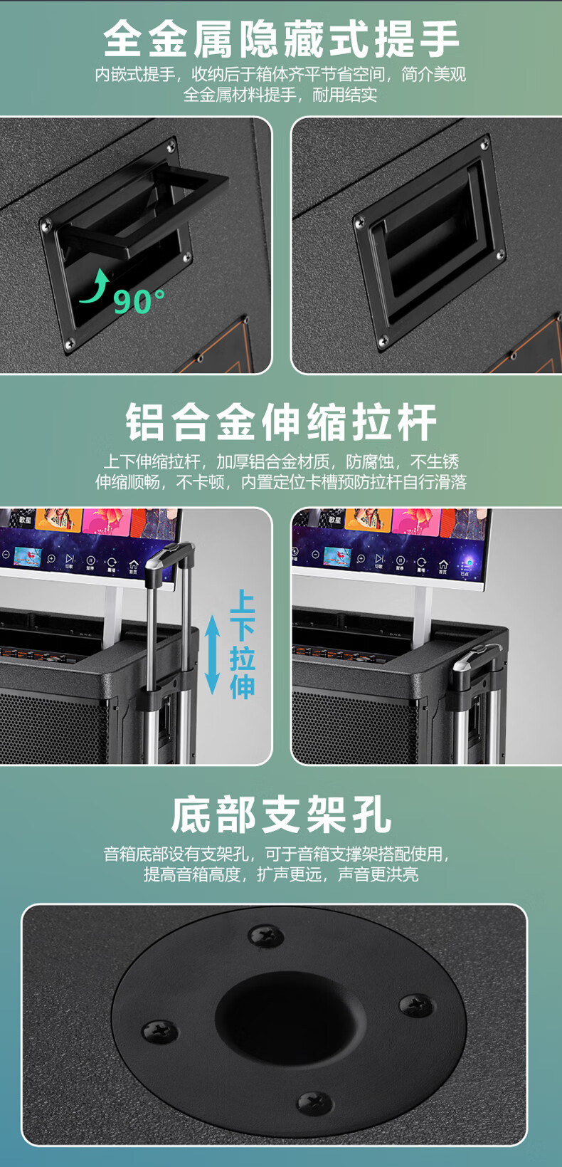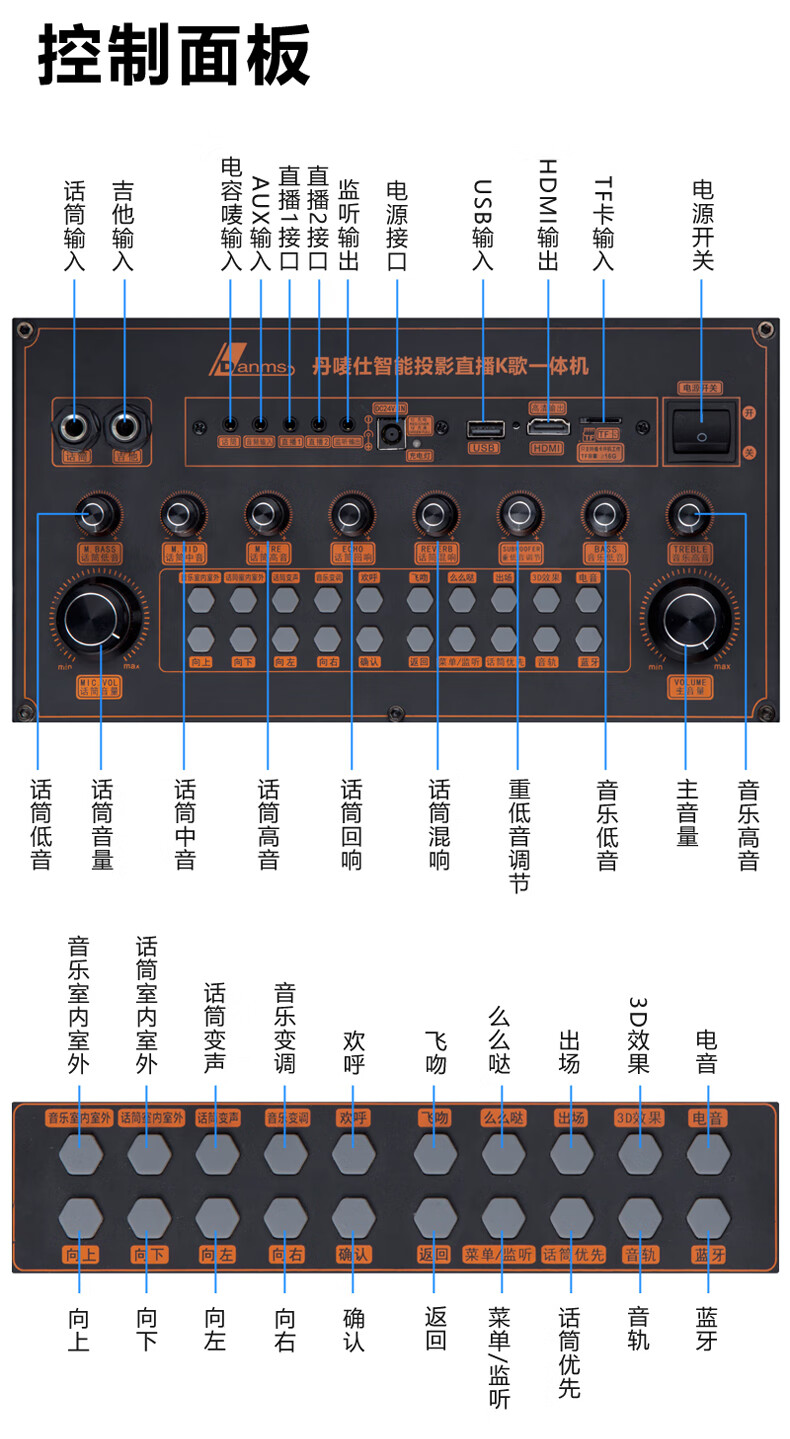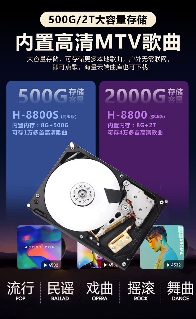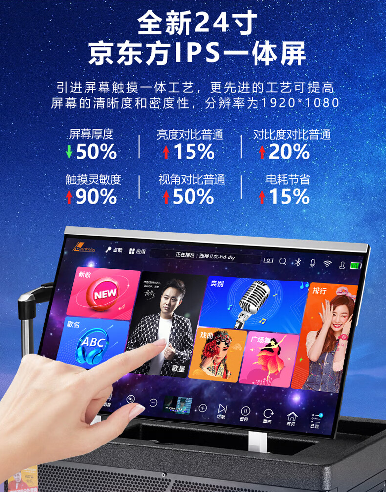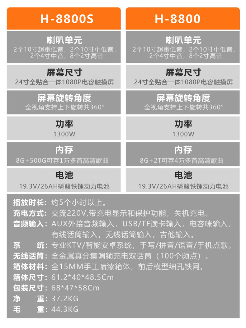 Danmark smart audio with display, heavy bass, outdoor mobile live broadcast karaoke, dedicated with sound card, high power, professional square dance, home Bluetooth wireless trolley speaker set H-8800S (24-inch full lamination screen + 500G memory)