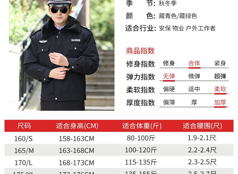 Hengyuanxiang Security Clothing, Security Cotton Clothes, Winter Thickened Short Security Coats, Multi-Functional Coldproof Cotton Clothes Jackets, Duty Cotton Jackets, Thickened Cotton Clothes + Security Accessories 160 (recommended 100 Jin Jin is equal to less than 0.5 kg)