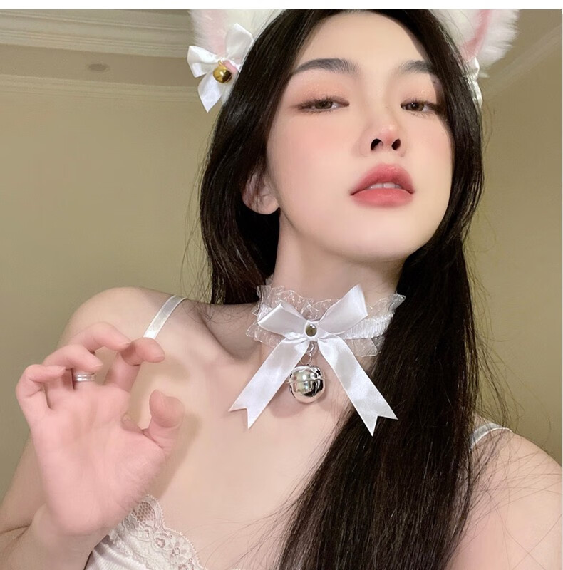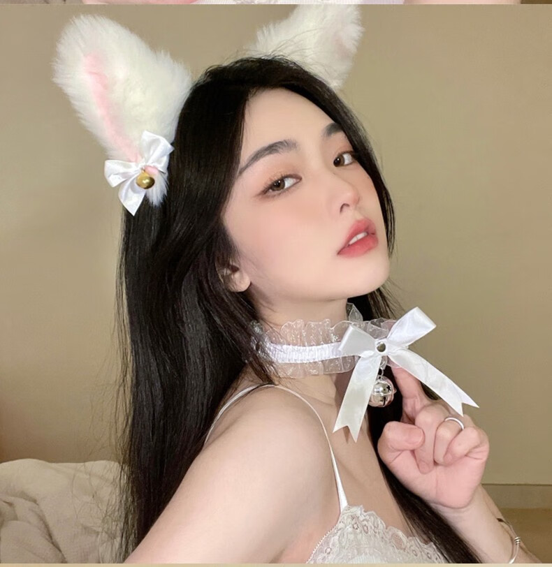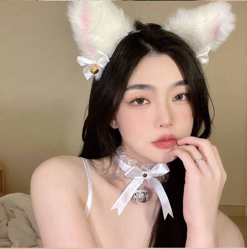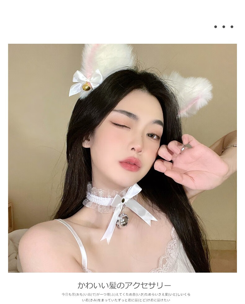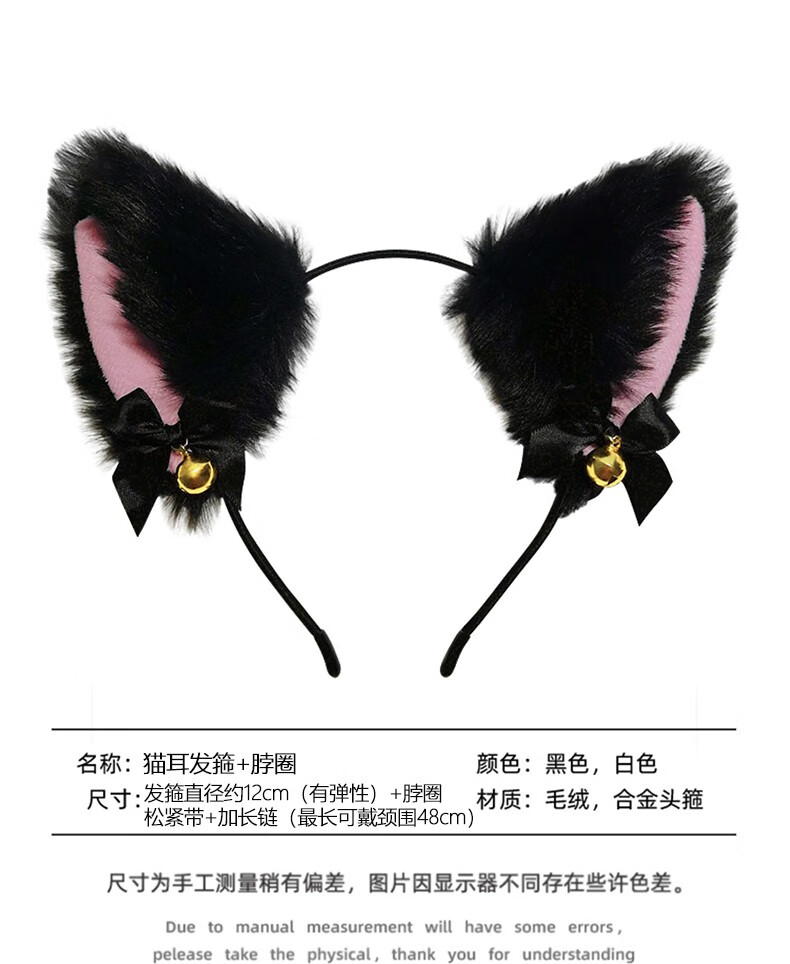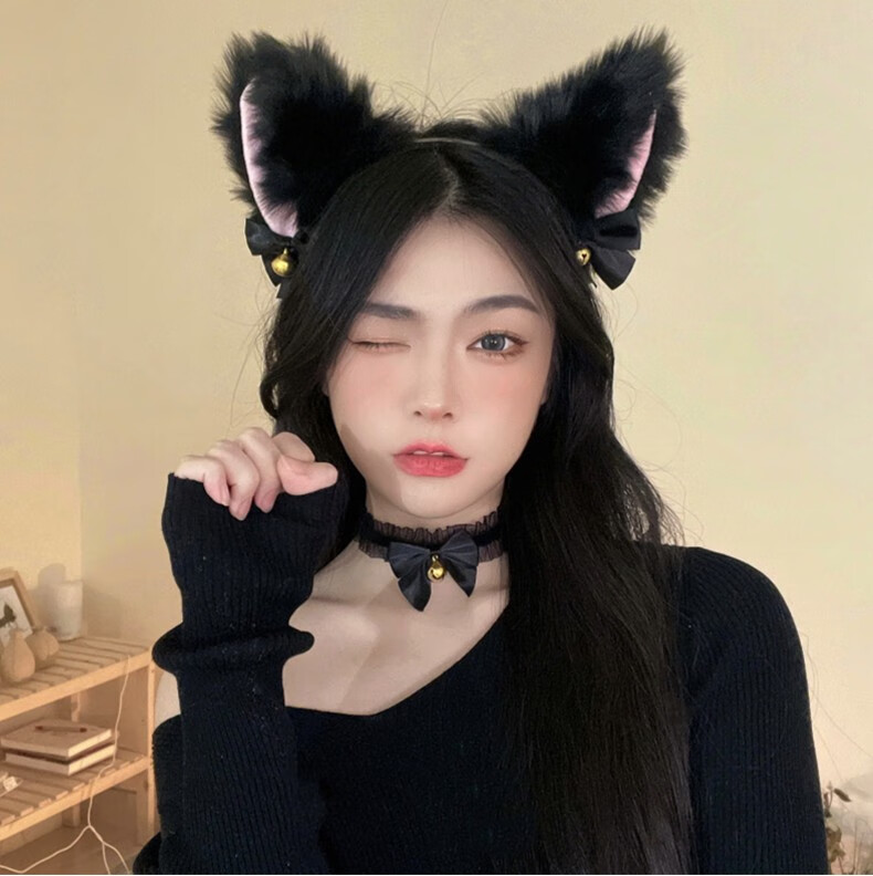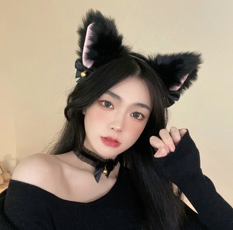 Bo Na Ling Cat Ear Headband Collar Beast Ear Headwear Hair Accessory Face Wash Female Anchor Pure Desire Cos Cute Bell Bow Festival Cat Ear Headband + Collar Black
