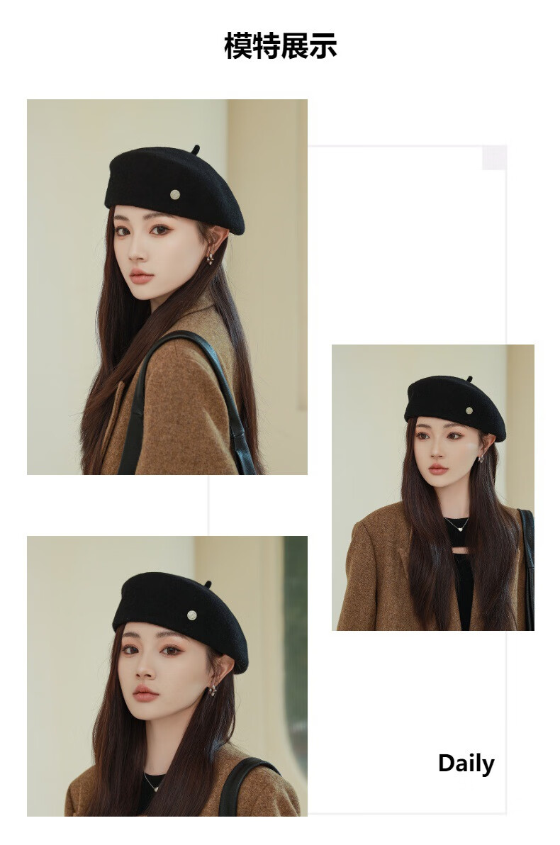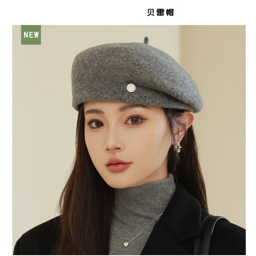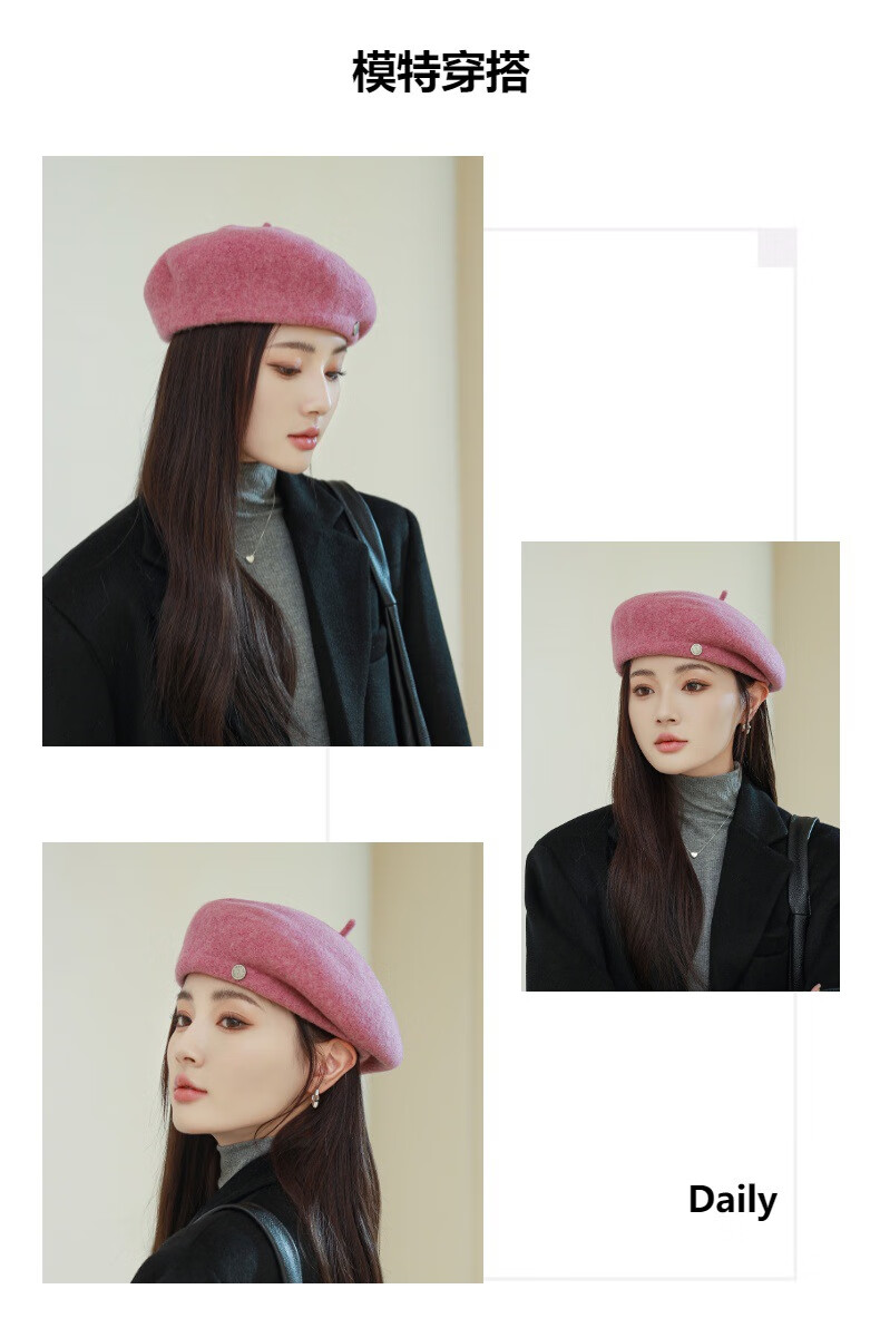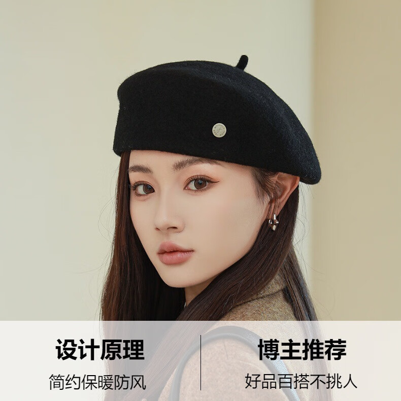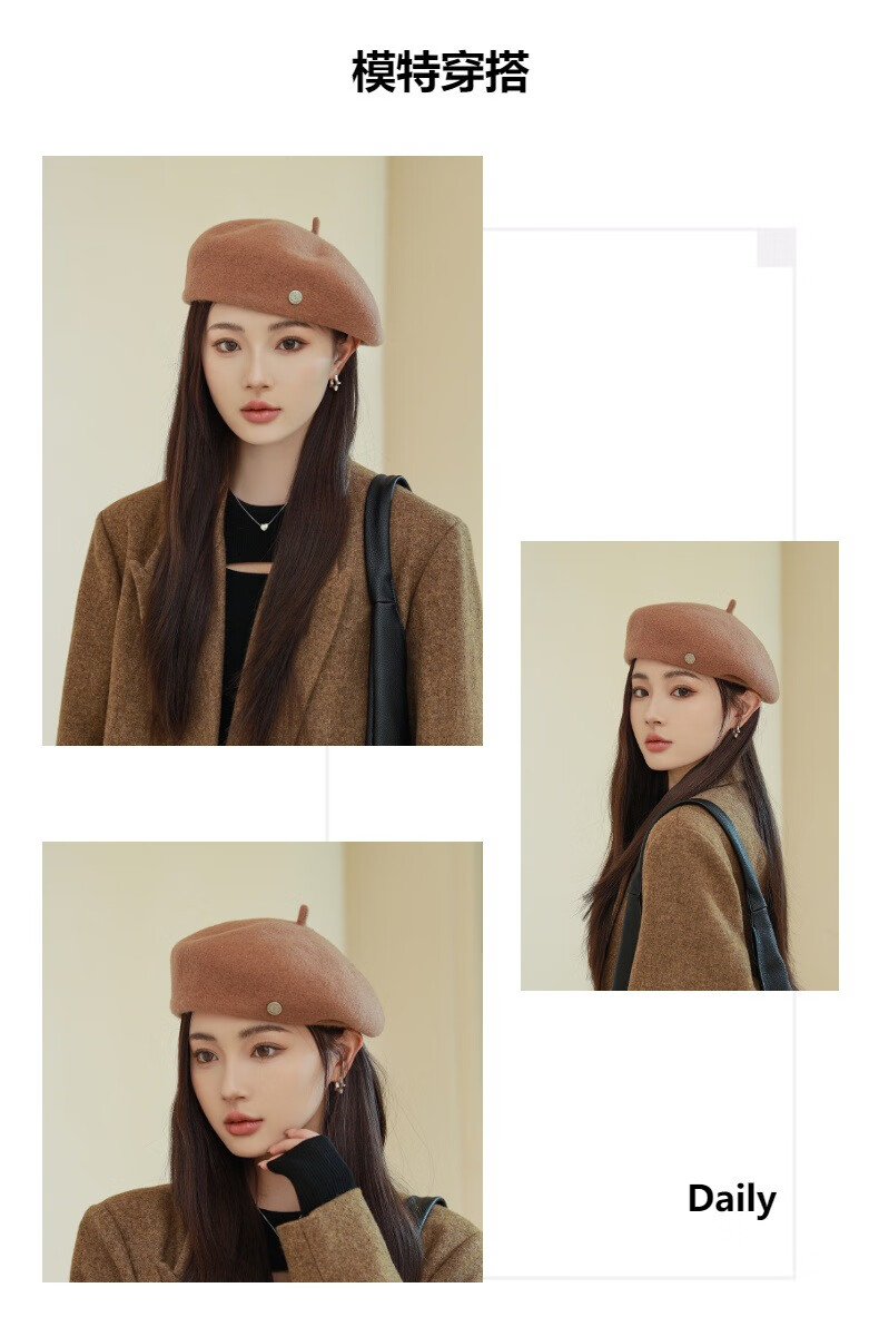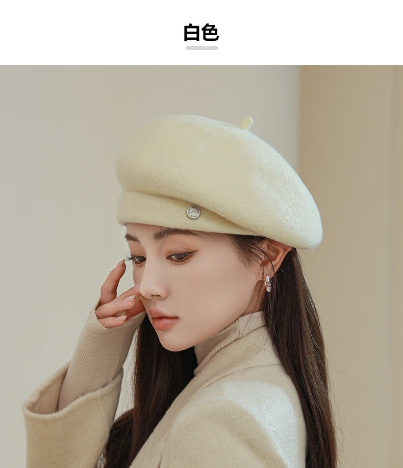 Raodie Light Luxury British Retro Wool Painter Hat Women Korean Autumn and Winter New Versatile Face Showing Little Beret Beige One Size 56-58