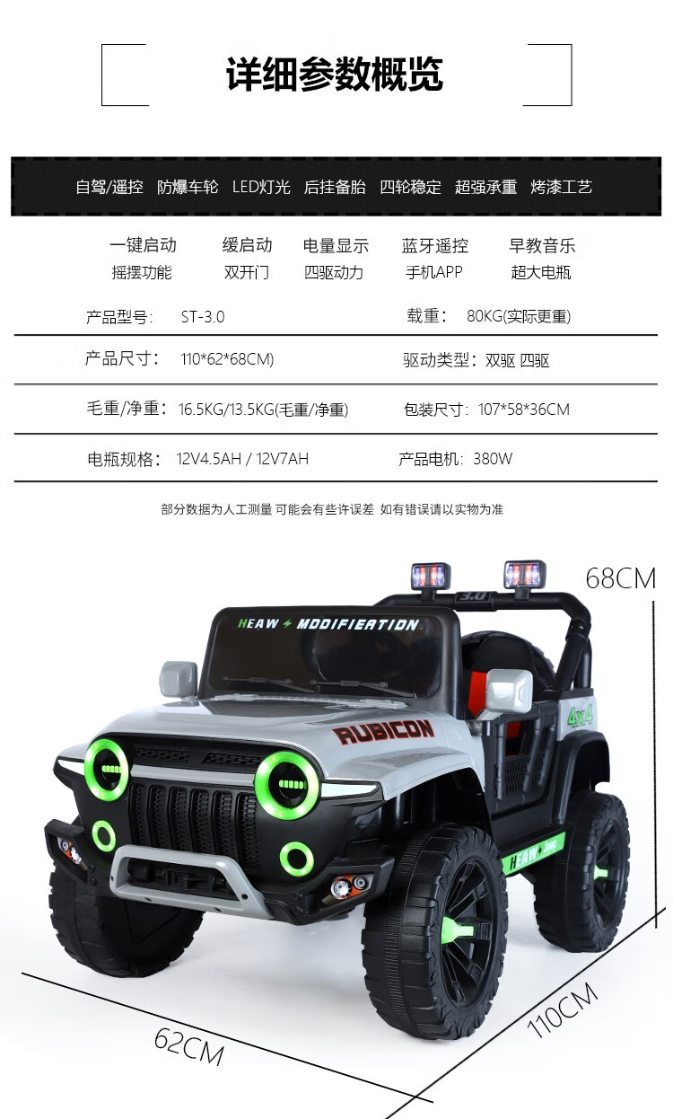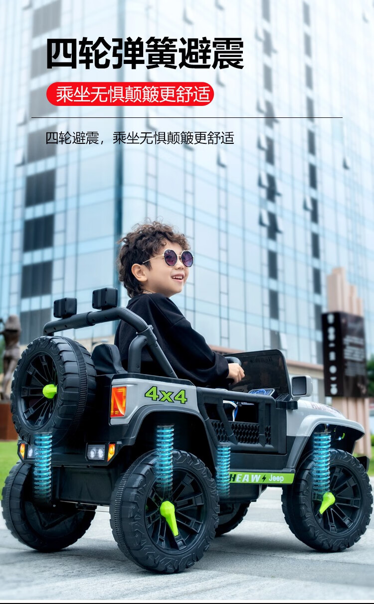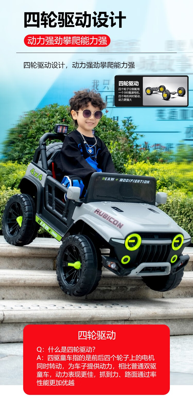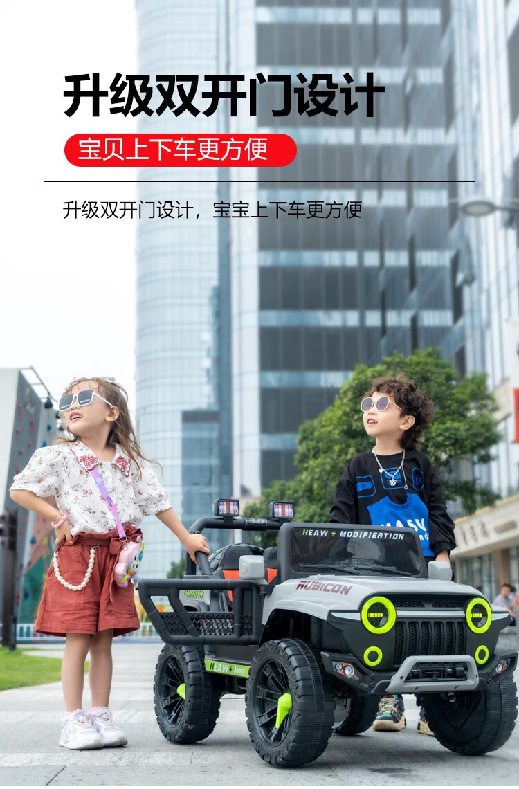 UmaUbaby children's electric car tank 300 off-road vehicle four-wheel drive remote control baby toy car for boys and girls can seat people white dual drive standard +12V4.5