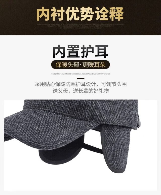 Li Ge middle-aged and elderly men's winter grandfather and father duck cap winter elderly warm thickened baseball cap elderly hat dark gray adjustable