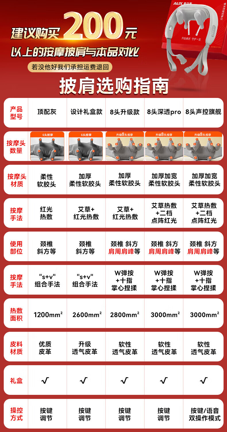 AUX cervical spine massage instrument, neck massager for shoulders, neck, waist, back, trapezius muscles, neck and calf shawl, birthday and Christmas gifts for parents and elders of boys and girls. Practical flagship model. S+V technique + large area hot compress. 70% of customers choose it. Birthday gift for elders and parents.