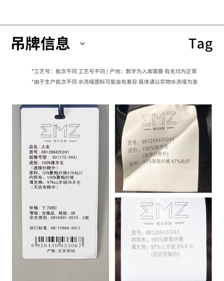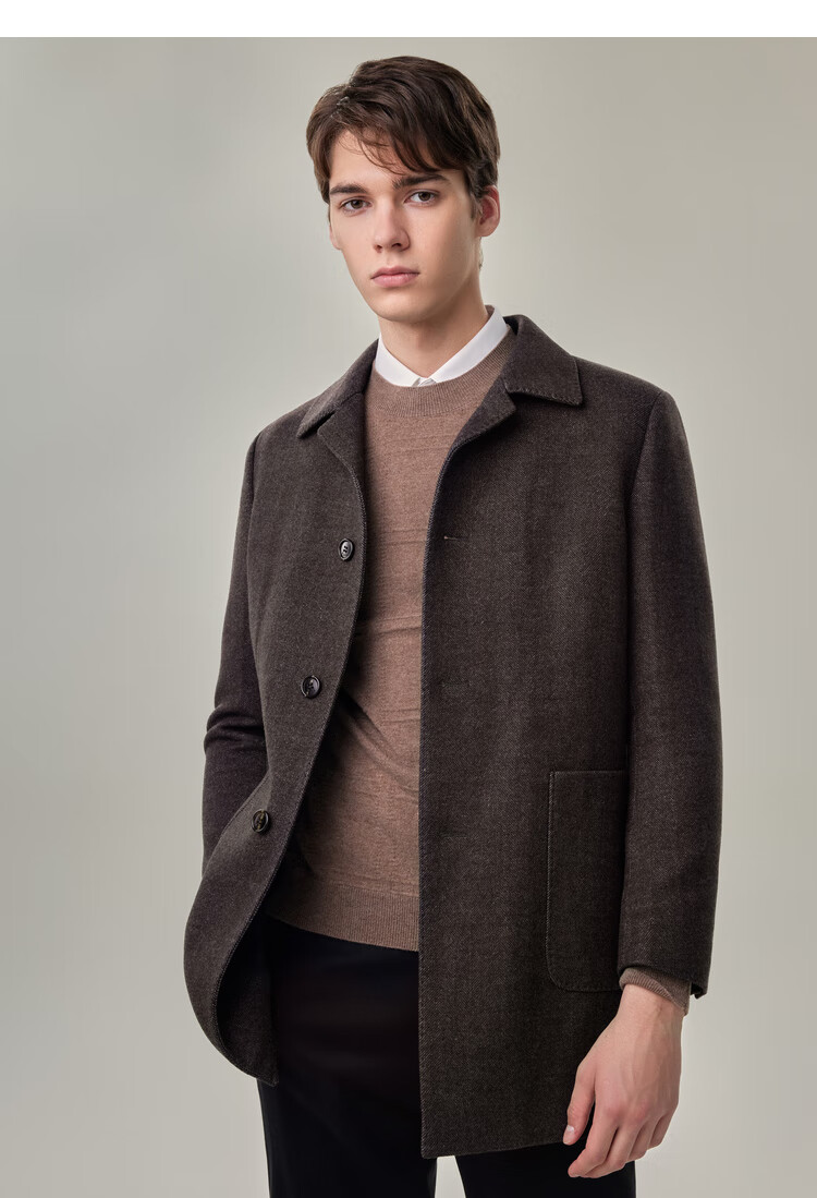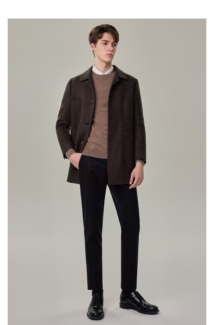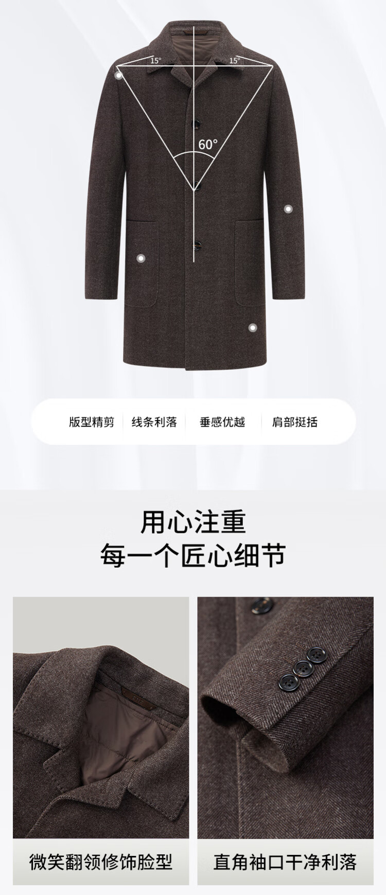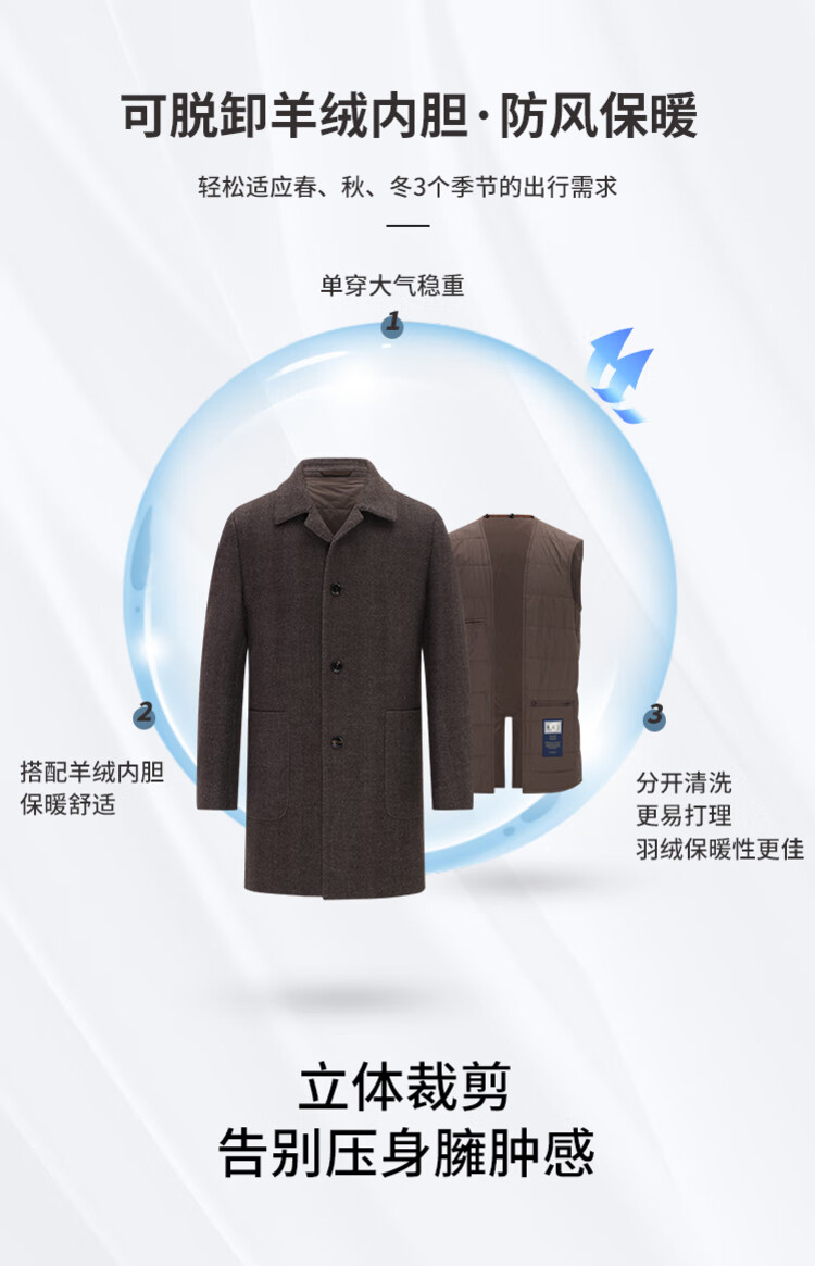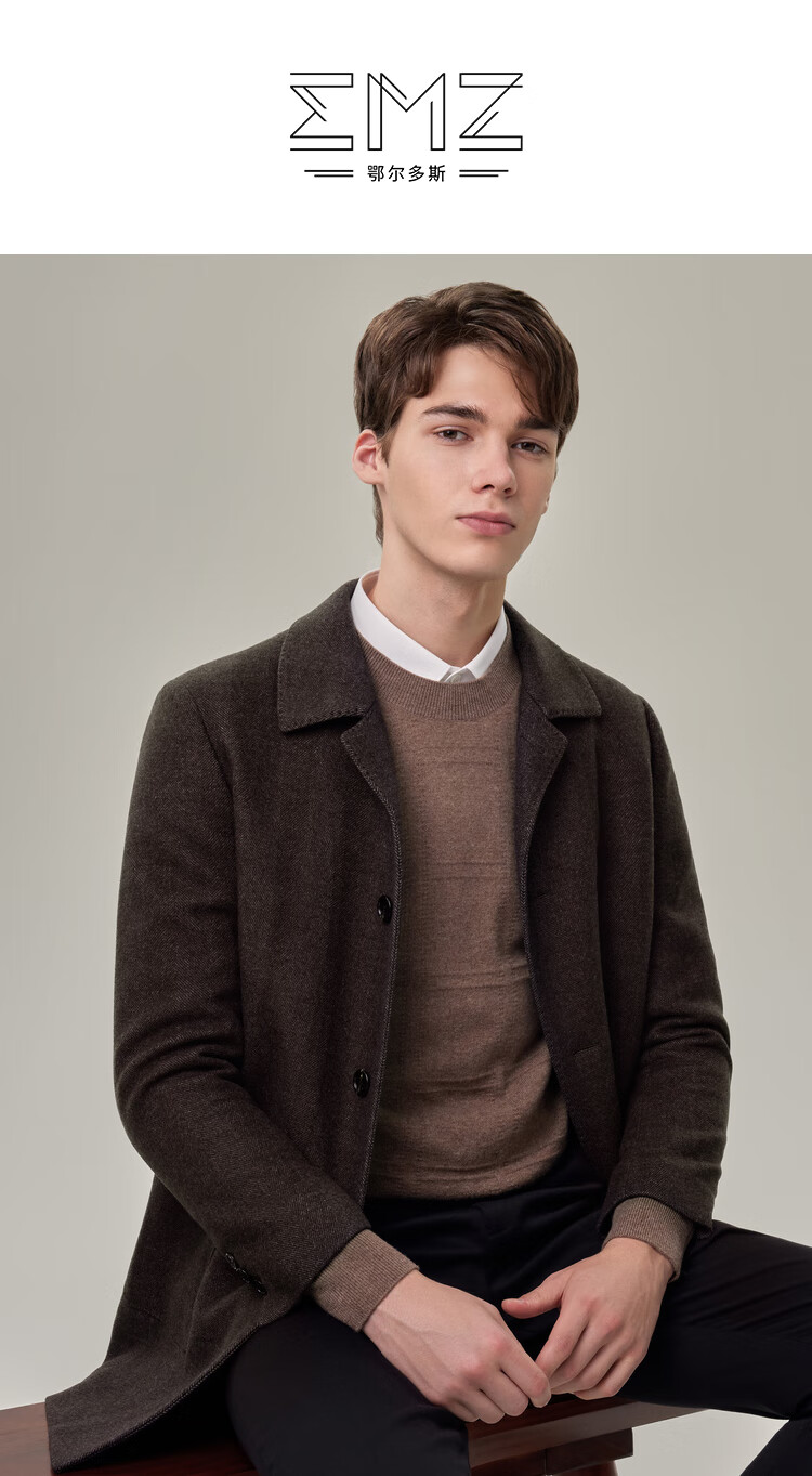 EMZ Ordos Removable Liner Autumn and Winter Warm Wool Coat Mid-Length Men's Woolen Jacket Dark Coffee L 175/96A
