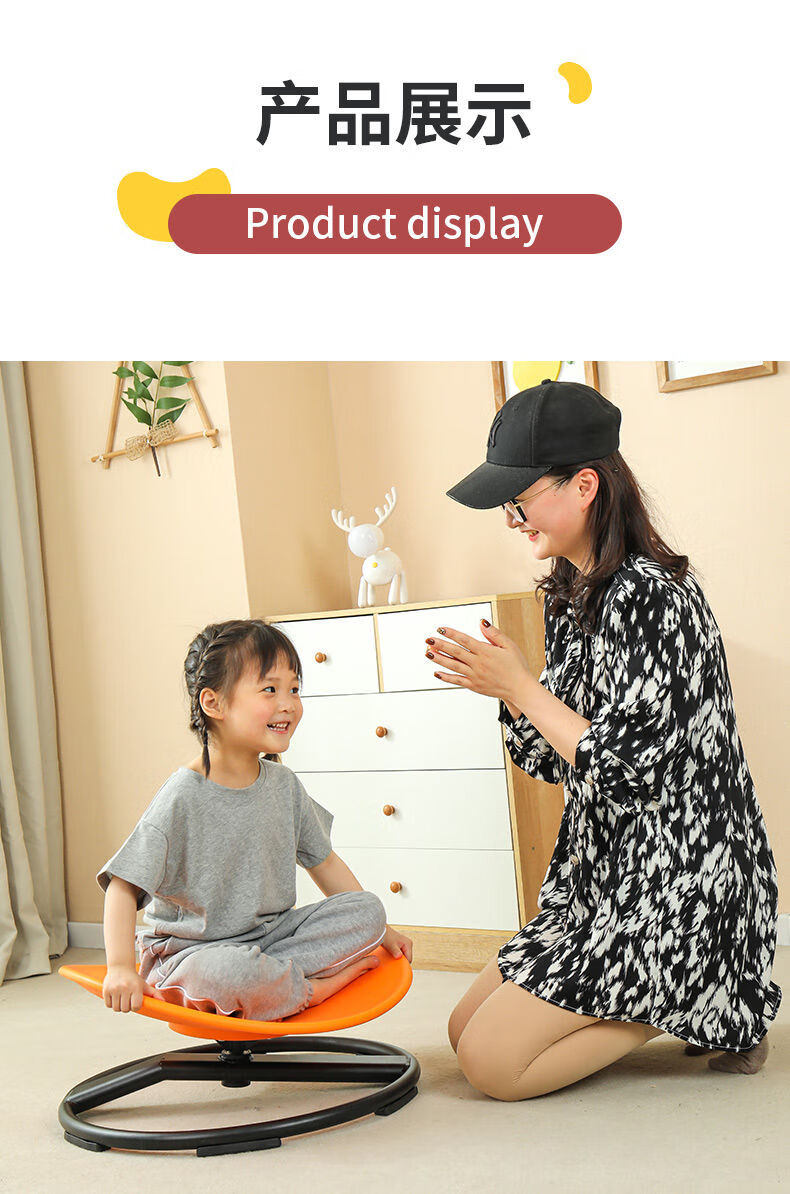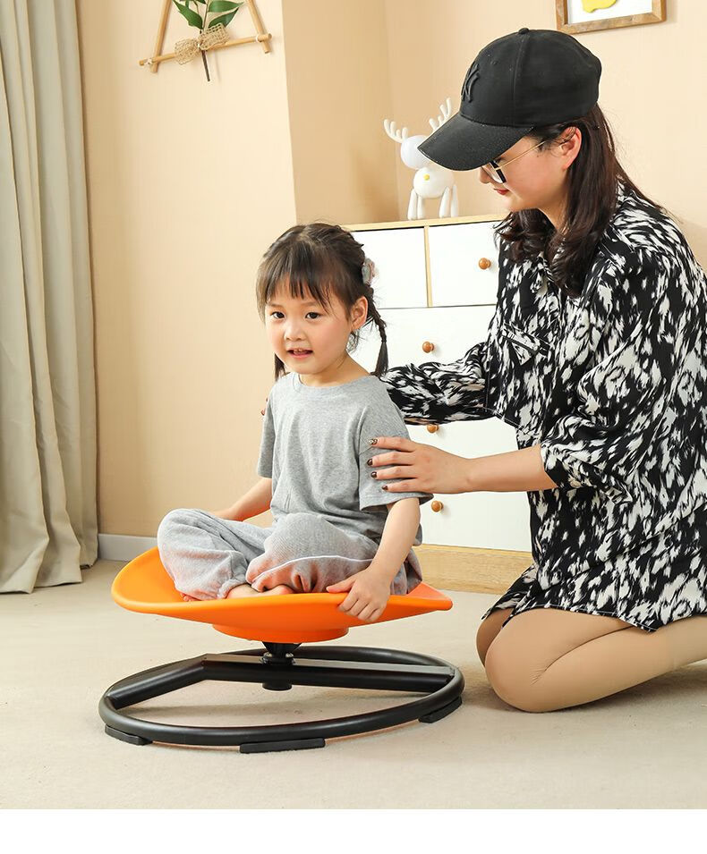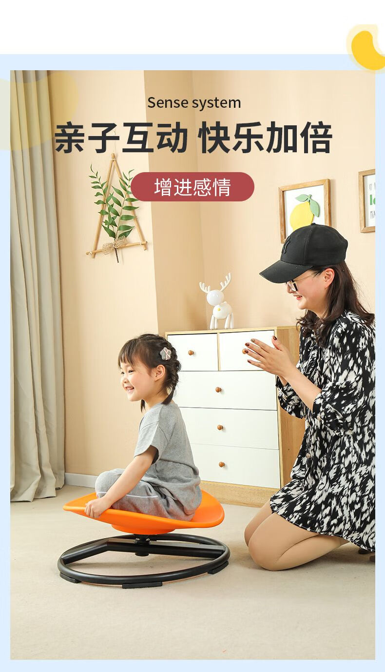 儿童圆形旋转盘转转乐感统训练器材家用大转椅玩具前庭觉平 加厚蛋型平衡旋转椅 桔色